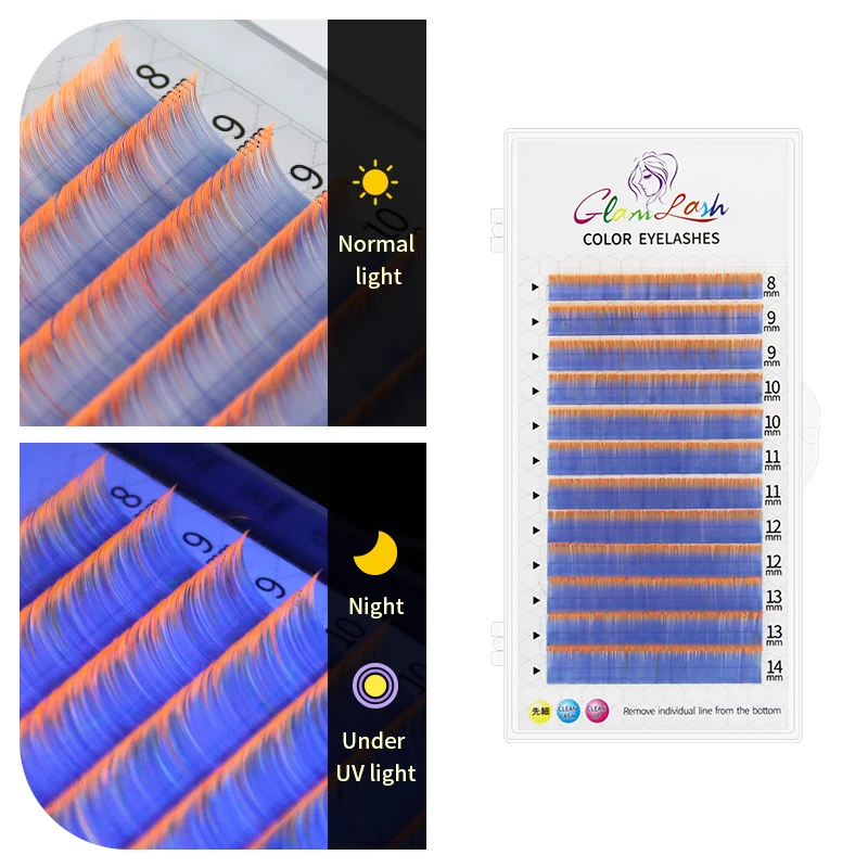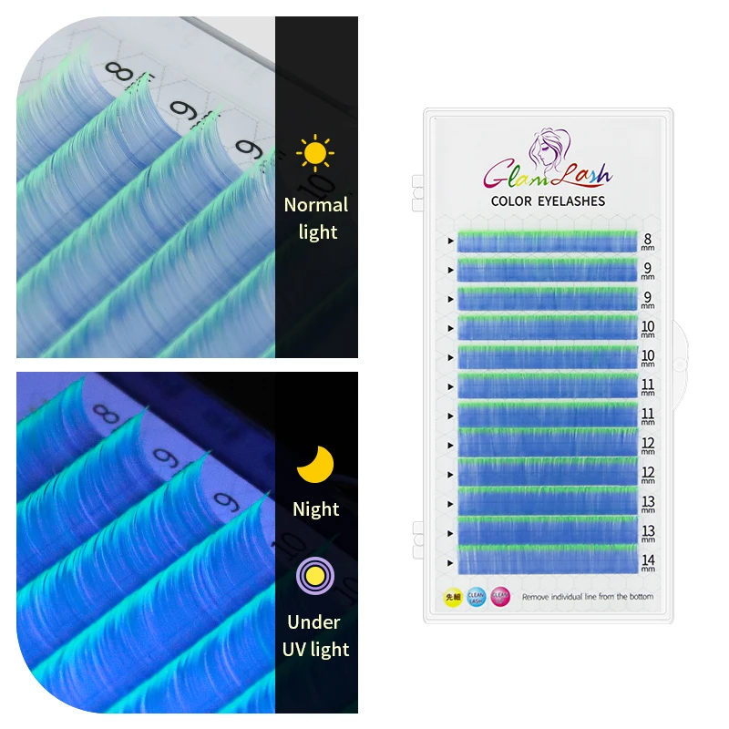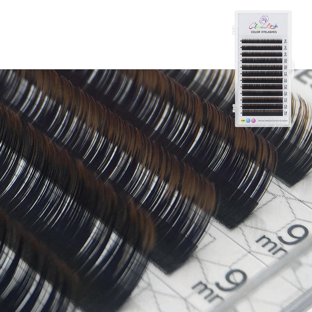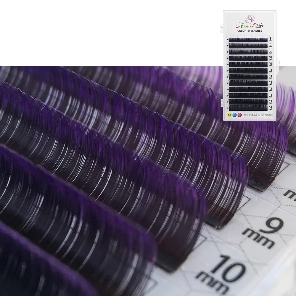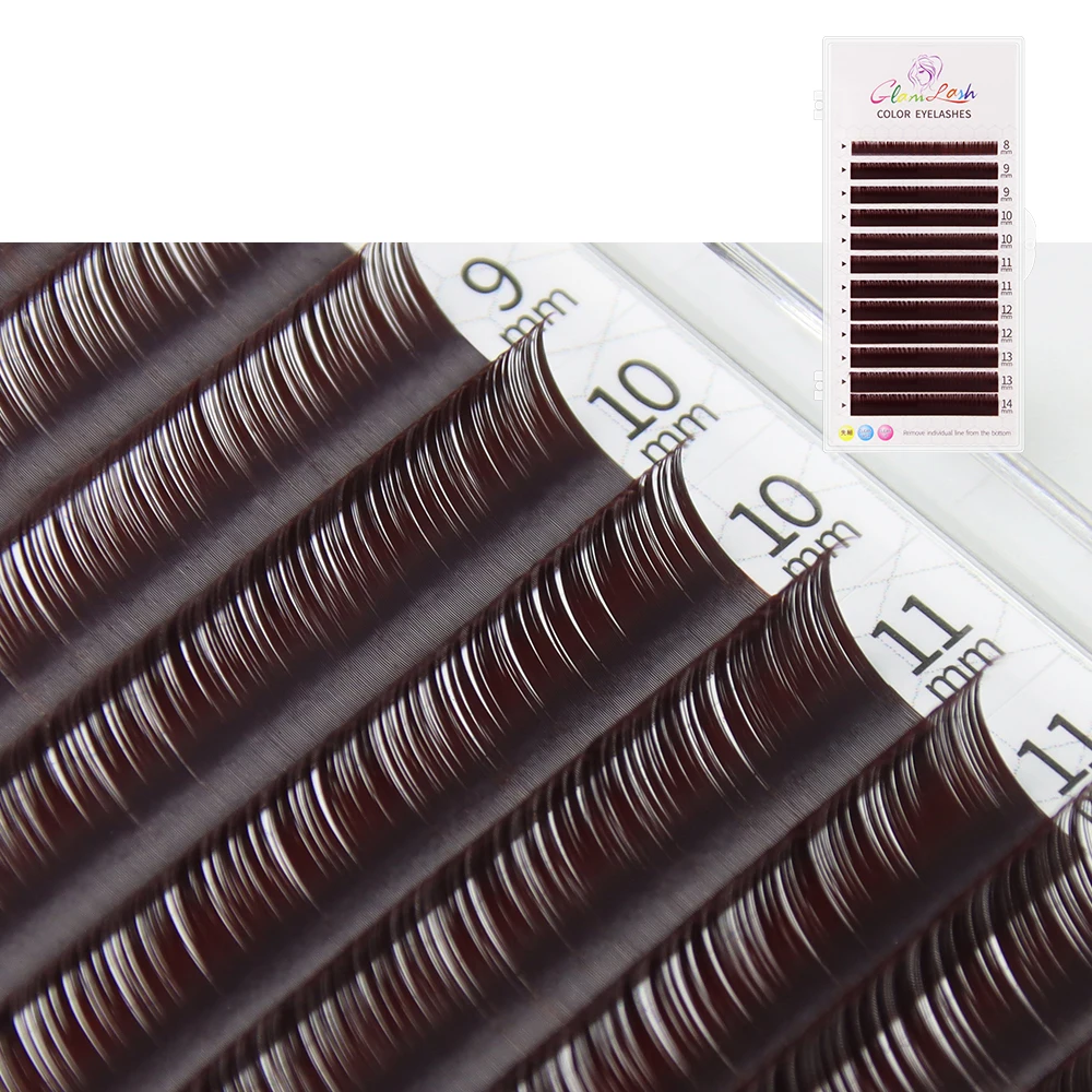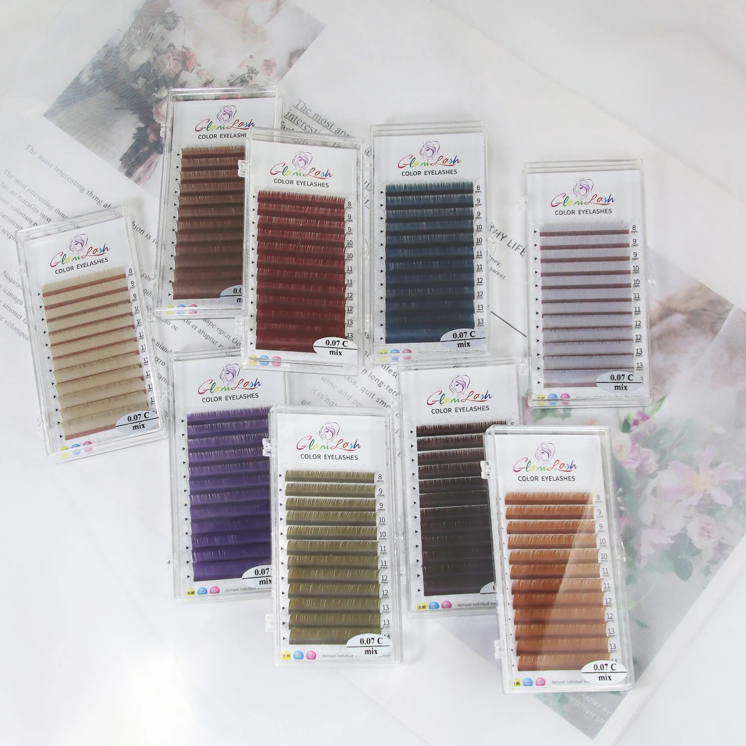 GLAMLASH Colored Lashes Lake Blue/Lavender/Cinnamon/Dark Green/Matcha Grey Individual Natural False Colorful Eyelash Extension