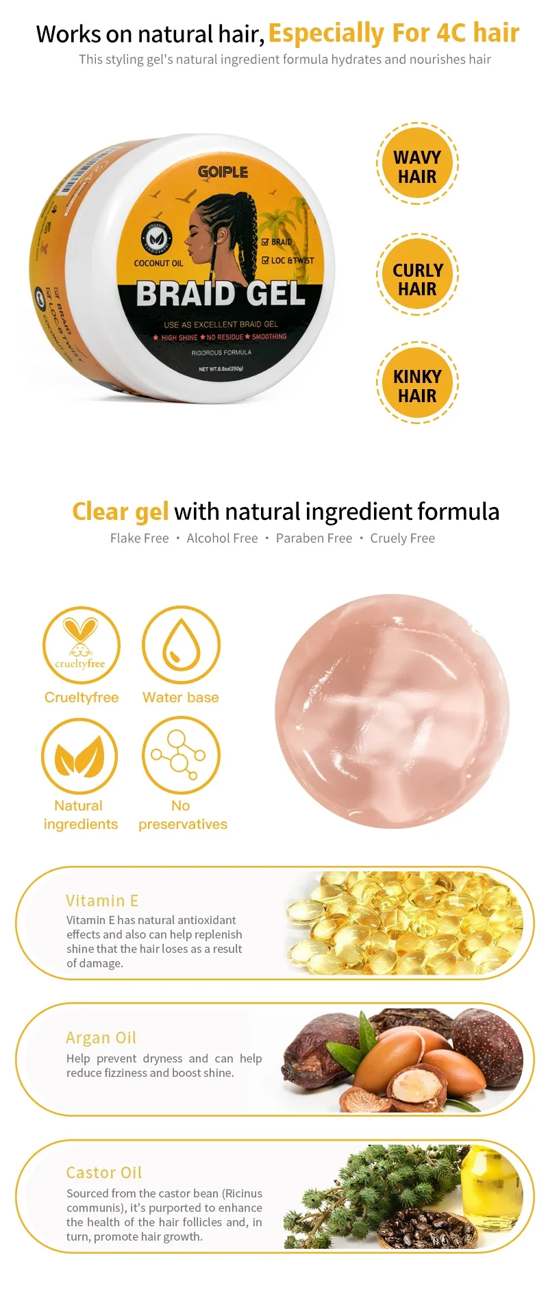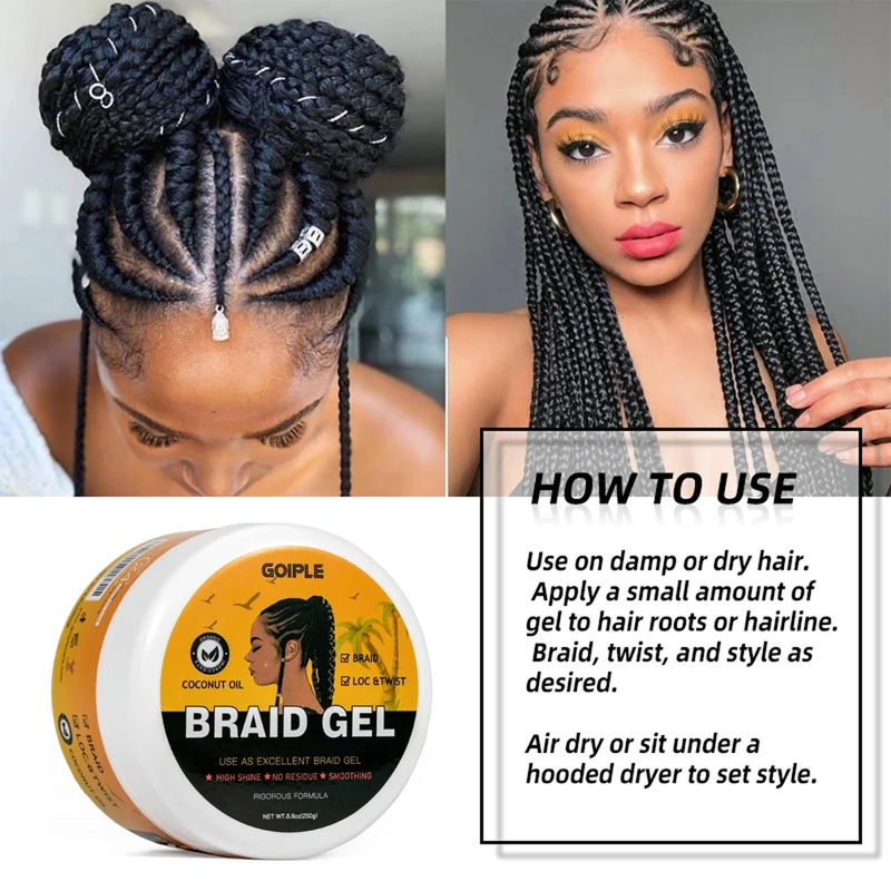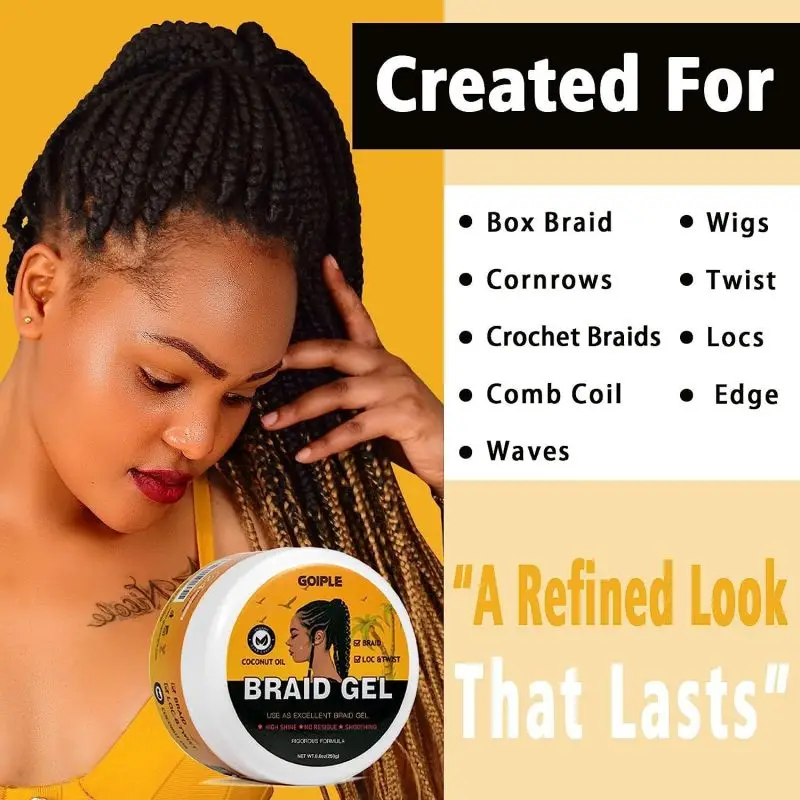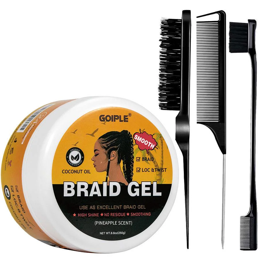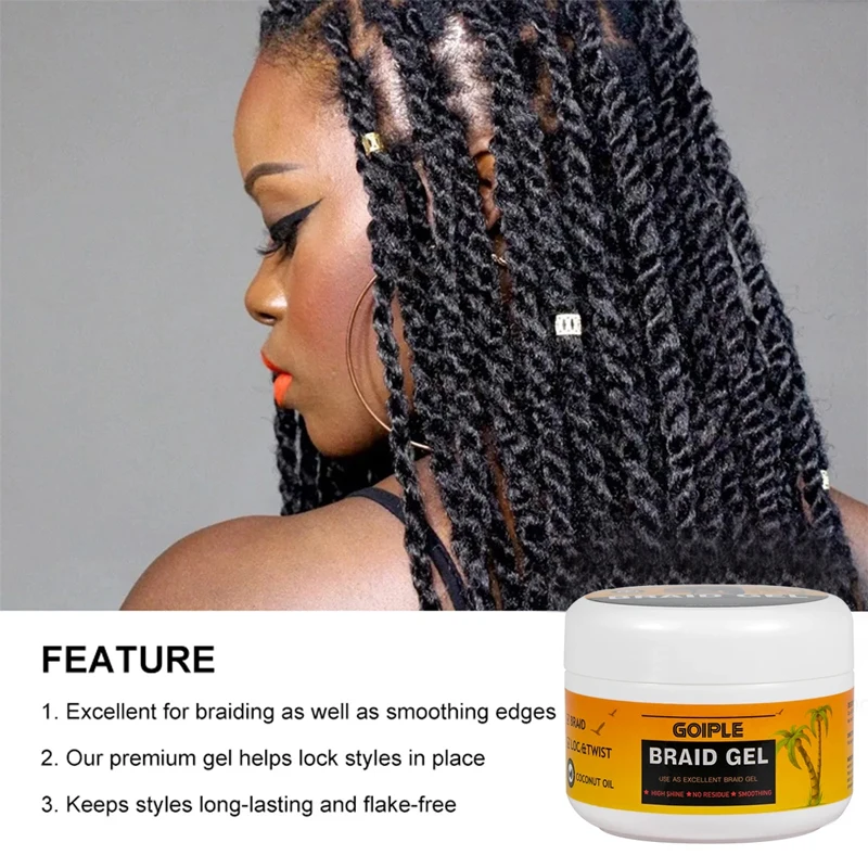 GOIPLE Strong Hold Braid Gel Edge Control Smoother Tames Frizz Retwist Wax Good for Loc n Twist Cornrows Hair Styling Products