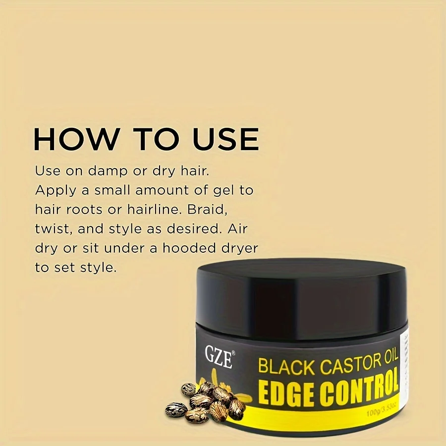GZE African Black Castor Extra Hold Braid, Loc, Twist Gel, Tames Frizz & Edges, Coconut Oil Edge Control