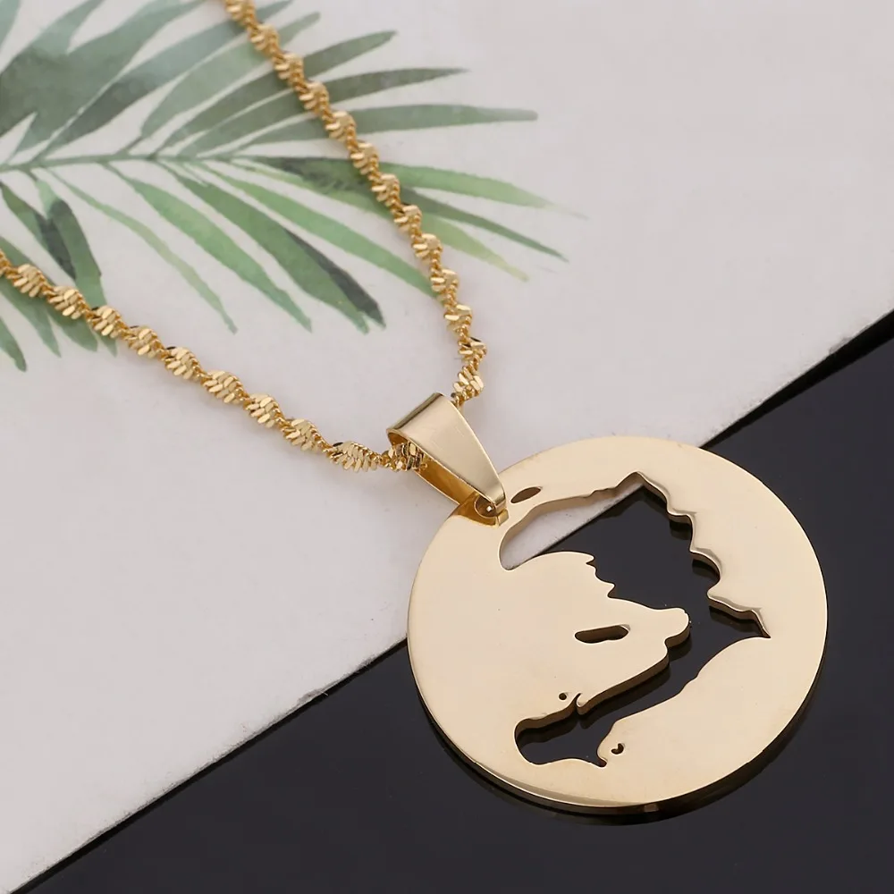 Haiti Map Pendant Necklaces for Women Girls Ayiti Gold Color Jewelry Gifts Map of Haitian Jewelry