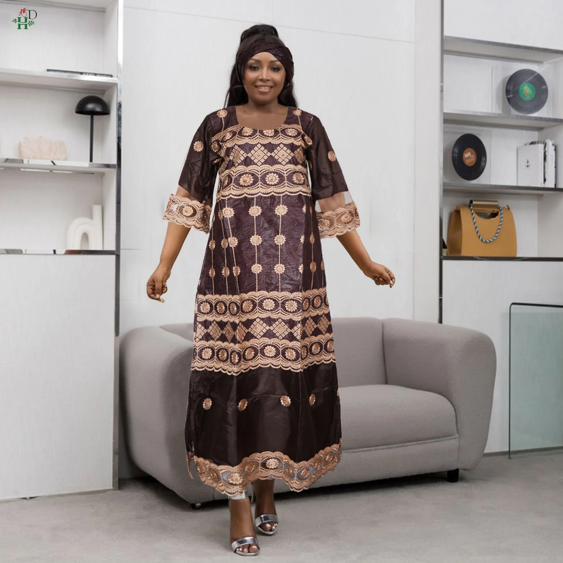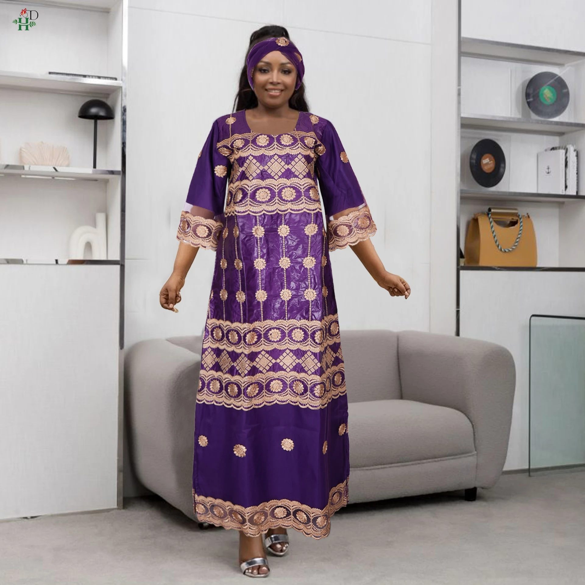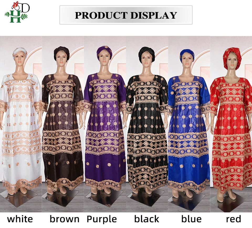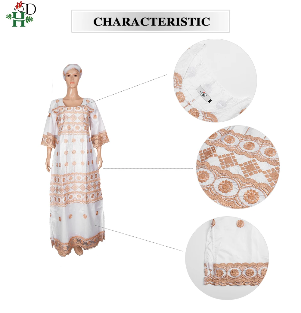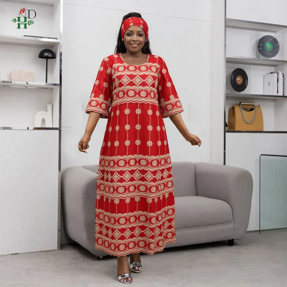H&D New African Women's Dress Embroidery Bazin Riche Dress Plus Size Wedding Bubu Gowns Elegant Kaftan Boubou Djellaba Clothes
