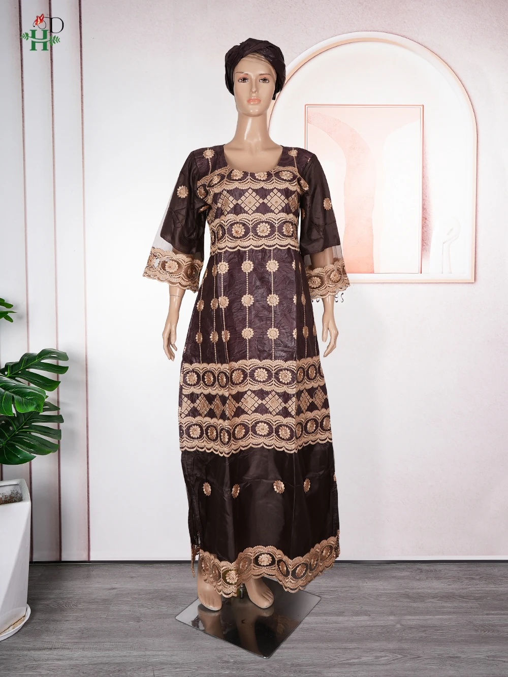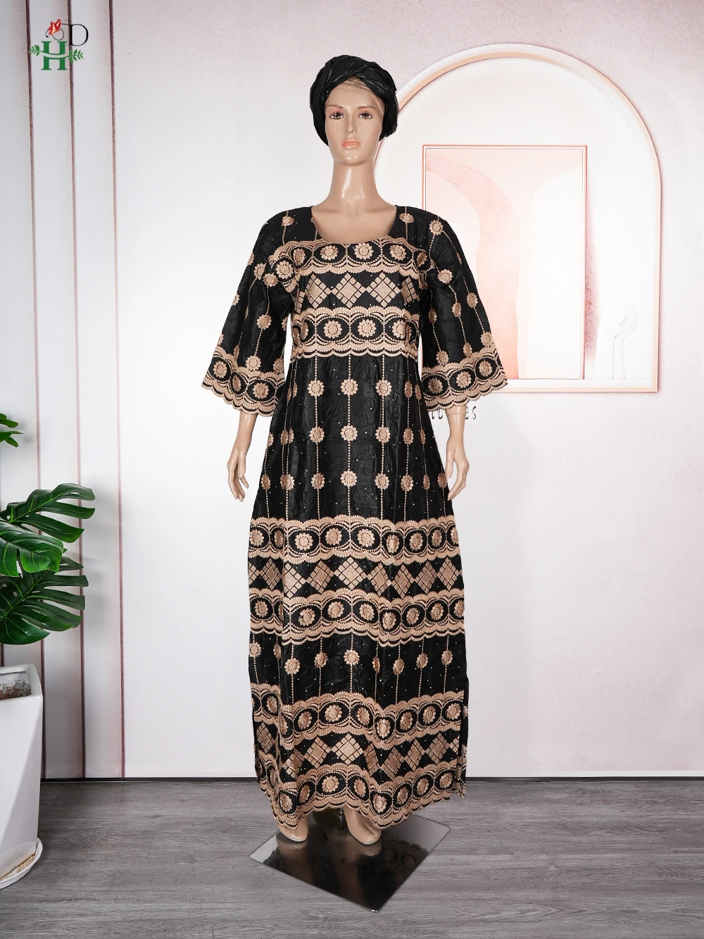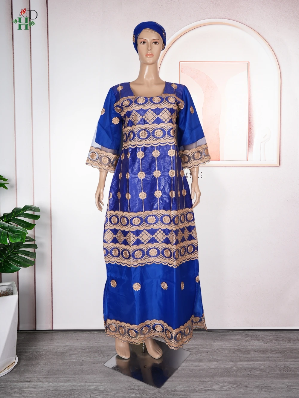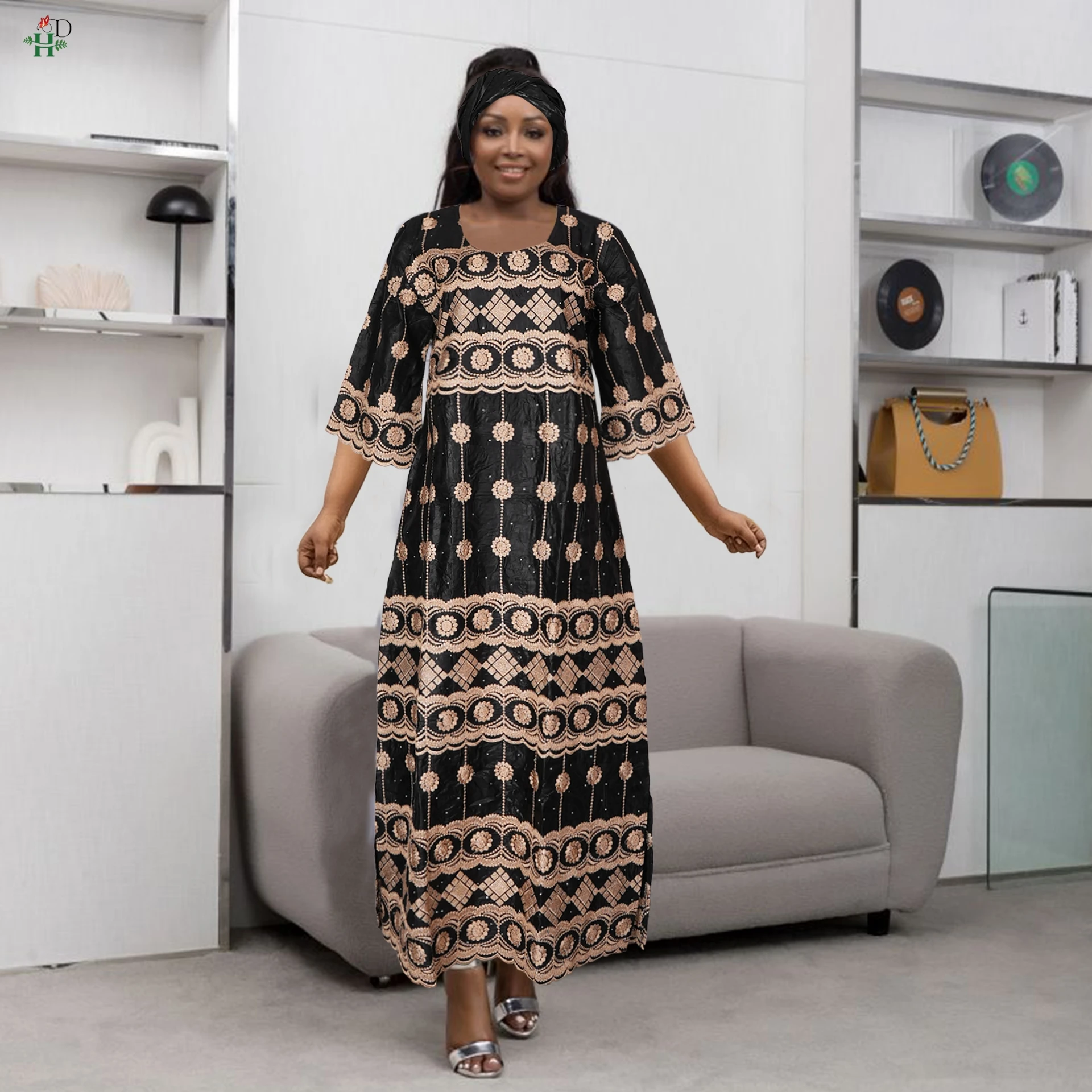 H&D New African Women's Dress Embroidery Bazin Riche Dress Plus Size Wedding Bubu Gowns Elegant Kaftan Boubou Djellaba Clothes