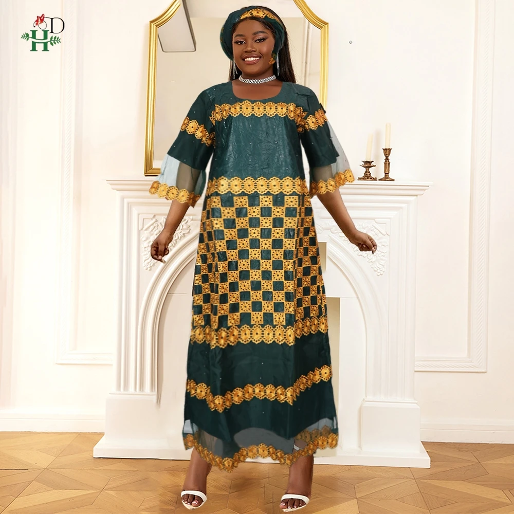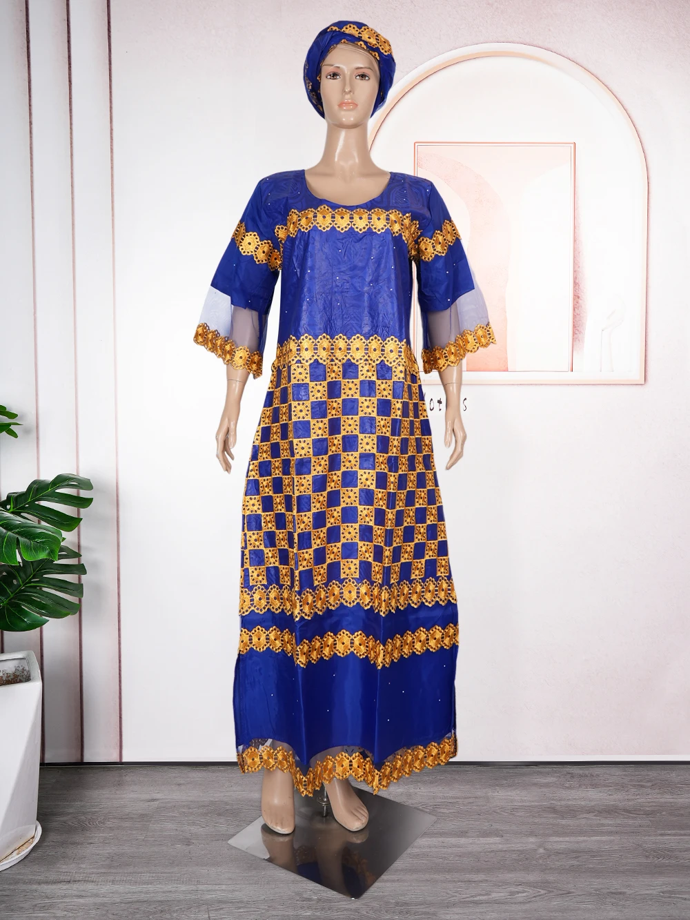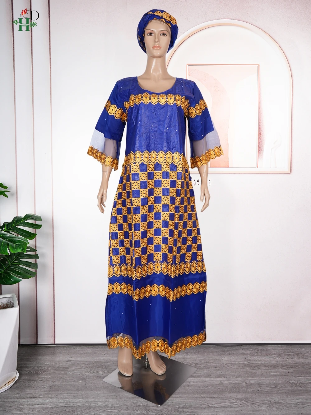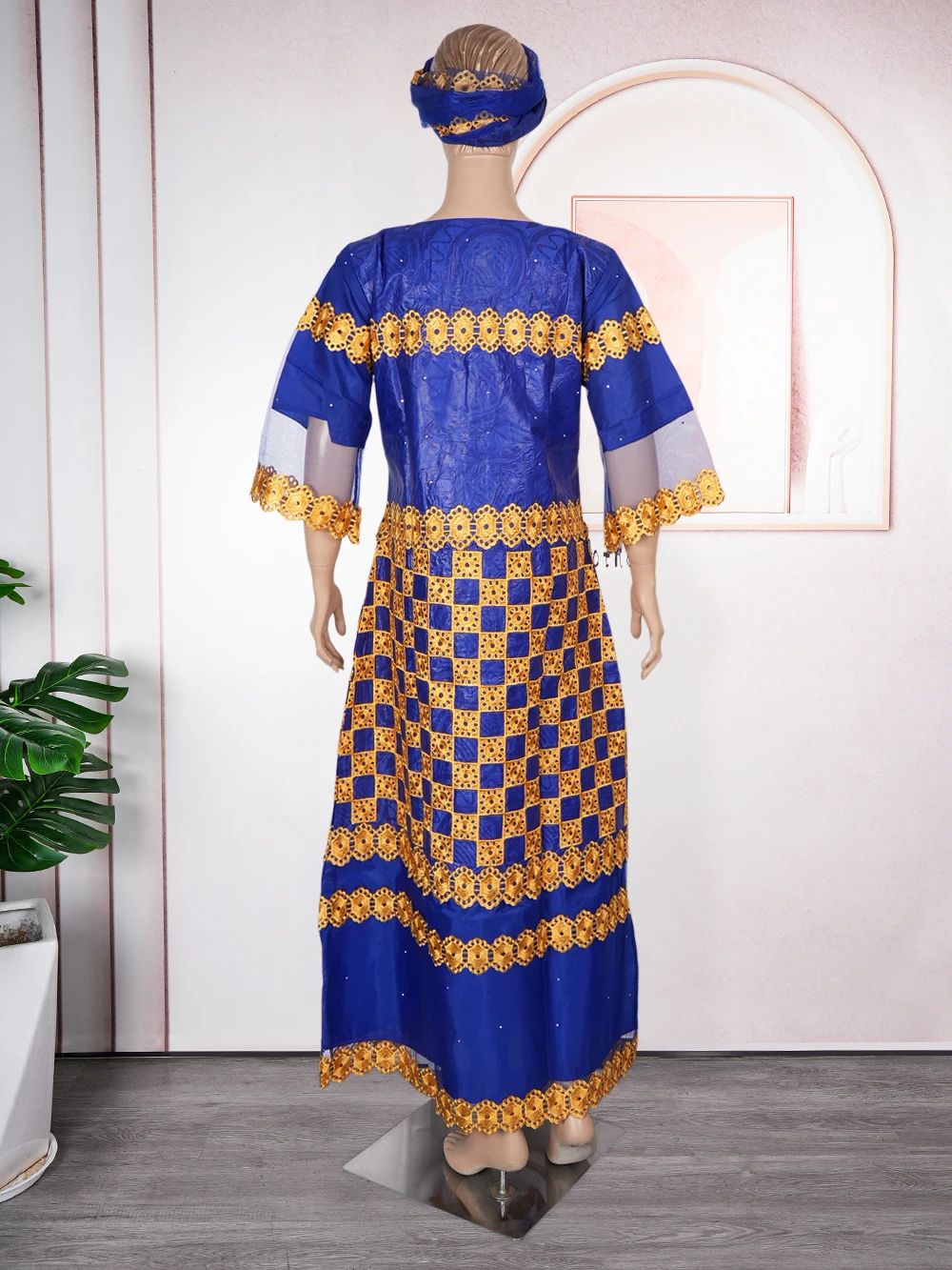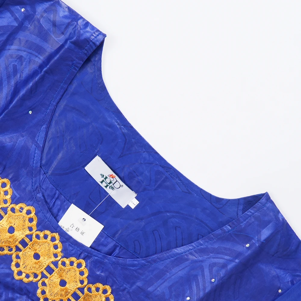 H&D Women Traditional African Dresses Bazin High Quality Embroidery Dresses Blue Traditional Dress for Wedding Party Occasions