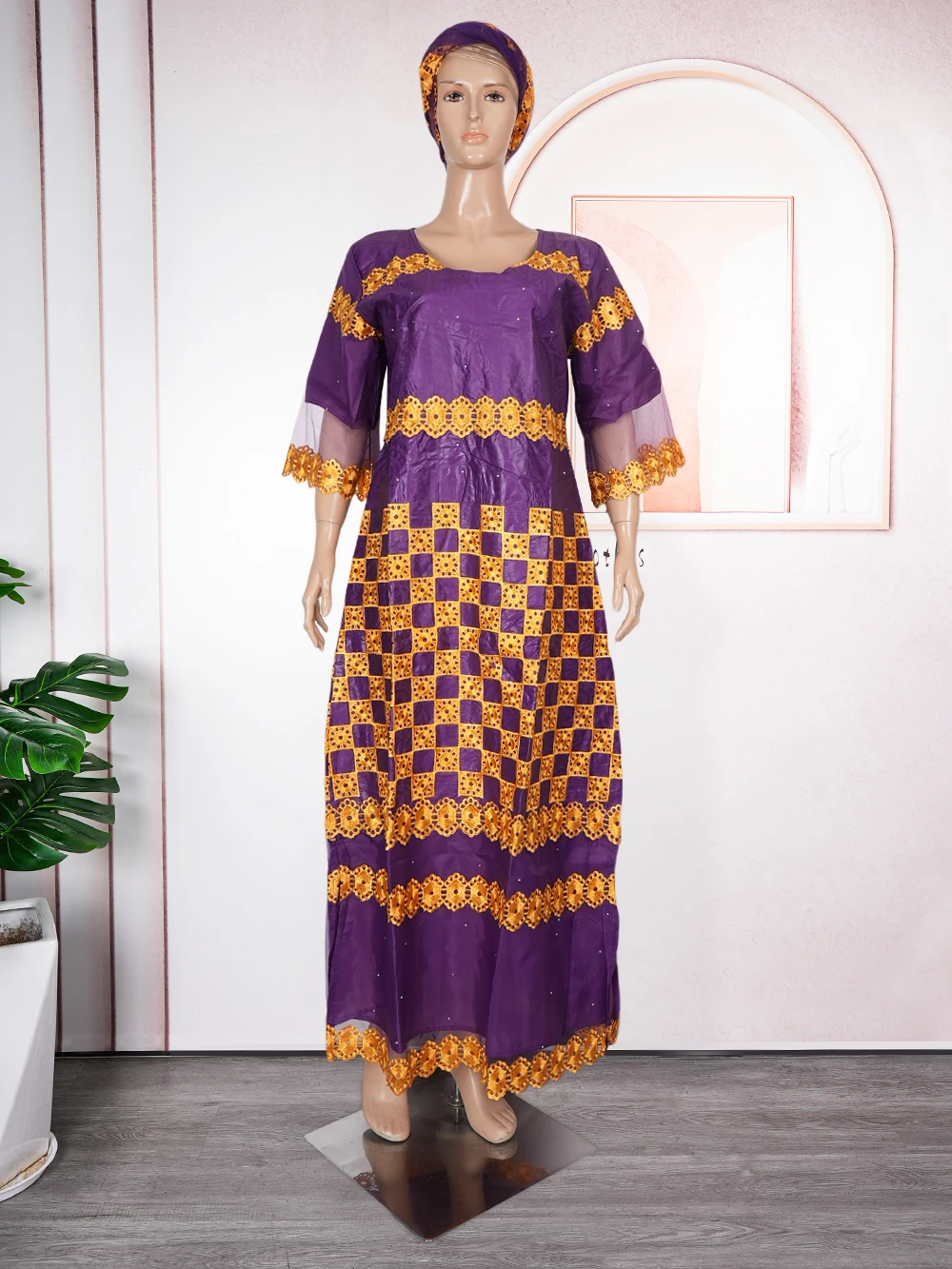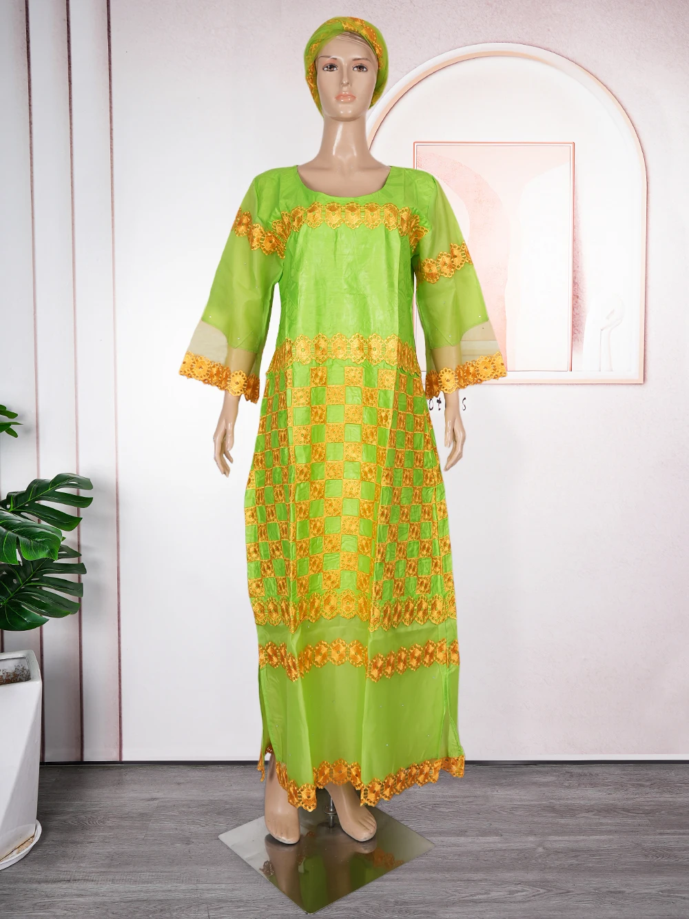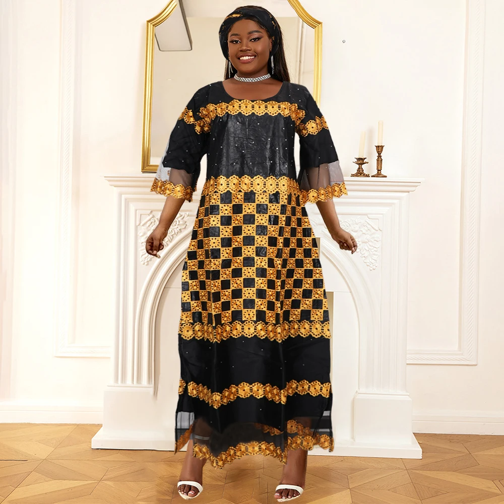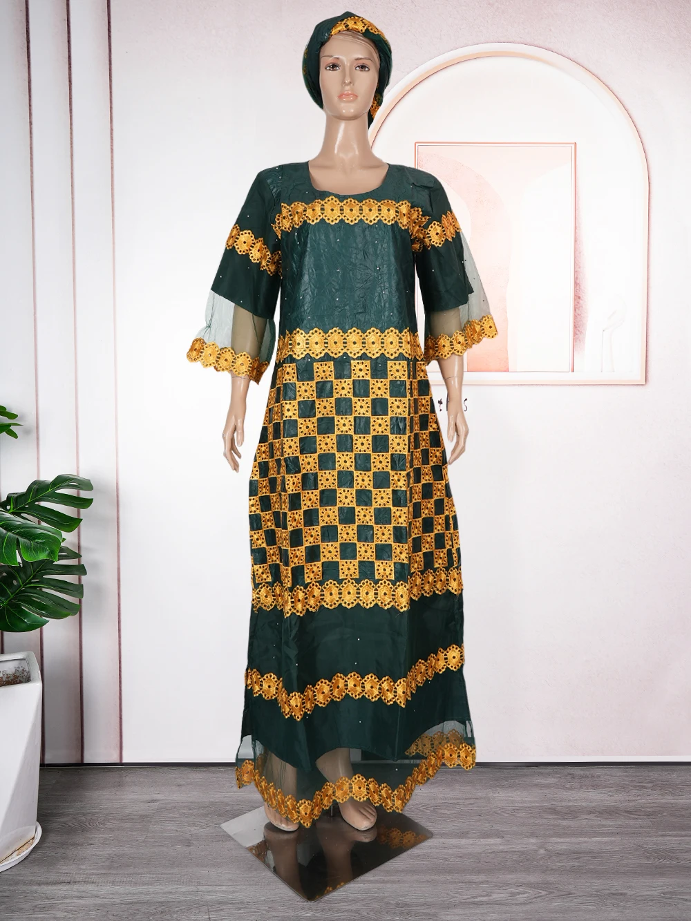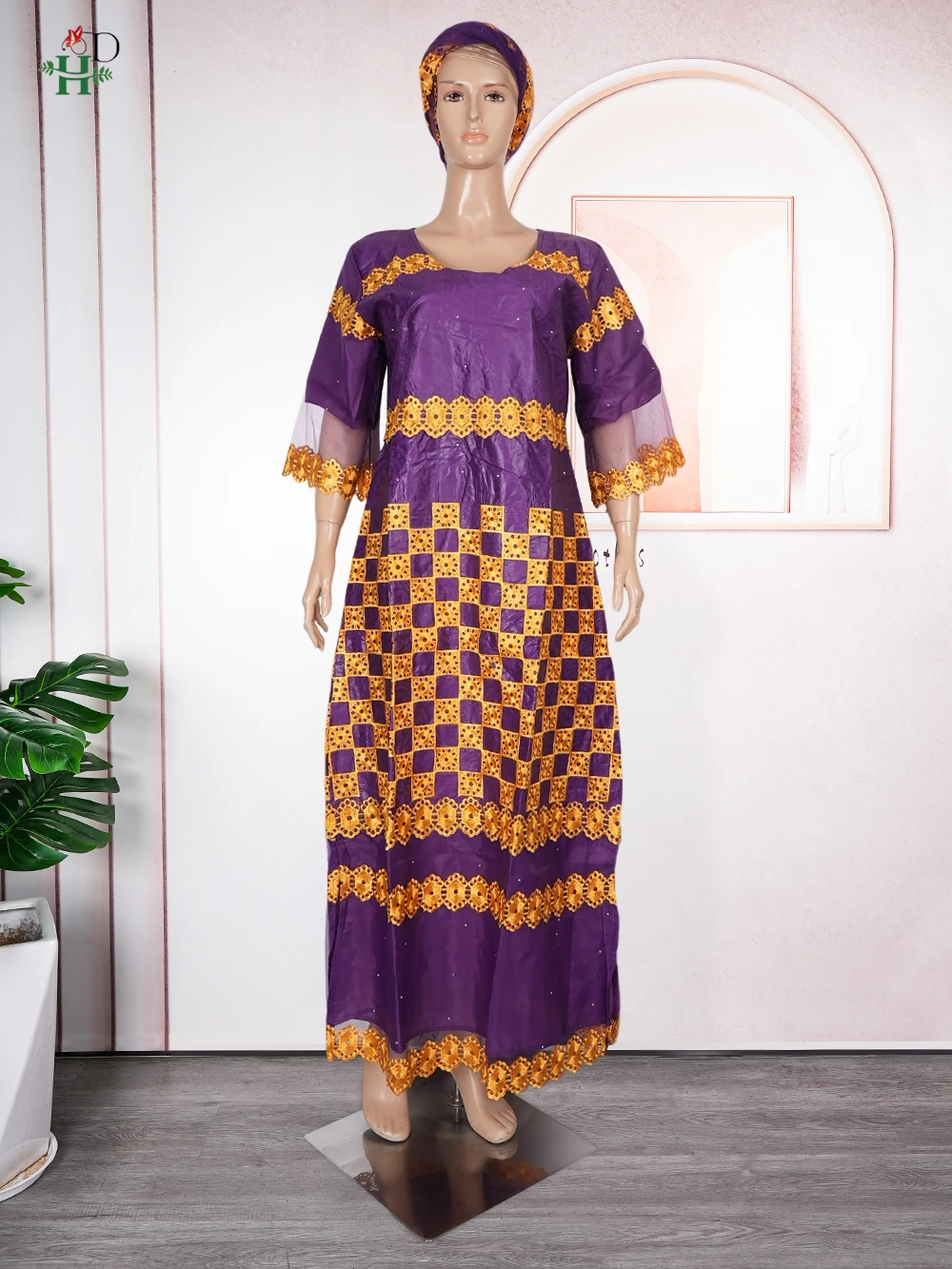 H&D Women Traditional African Dresses Bazin High Quality Embroidery Dresses Blue Traditional Dress for Wedding Party Occasions