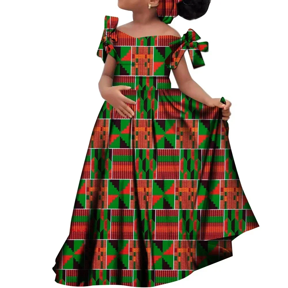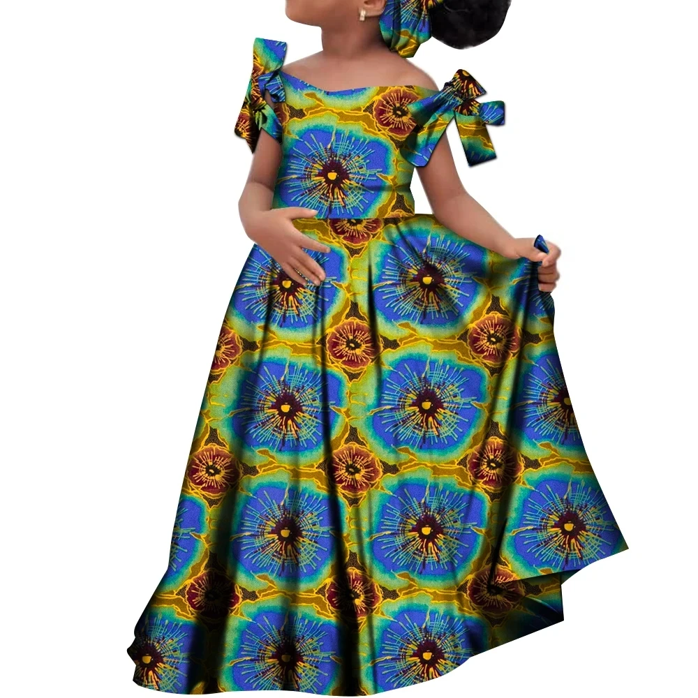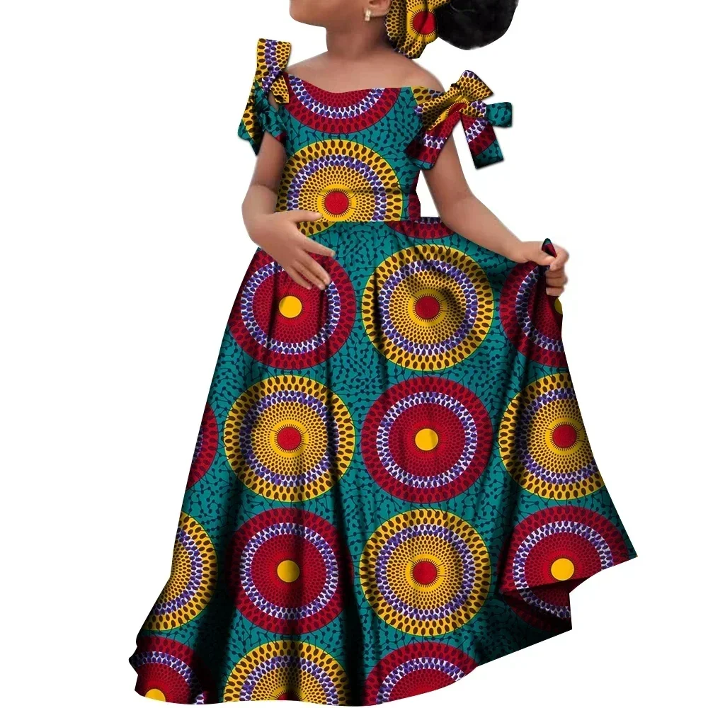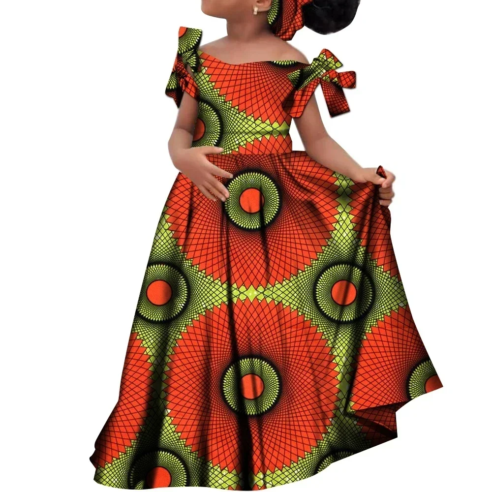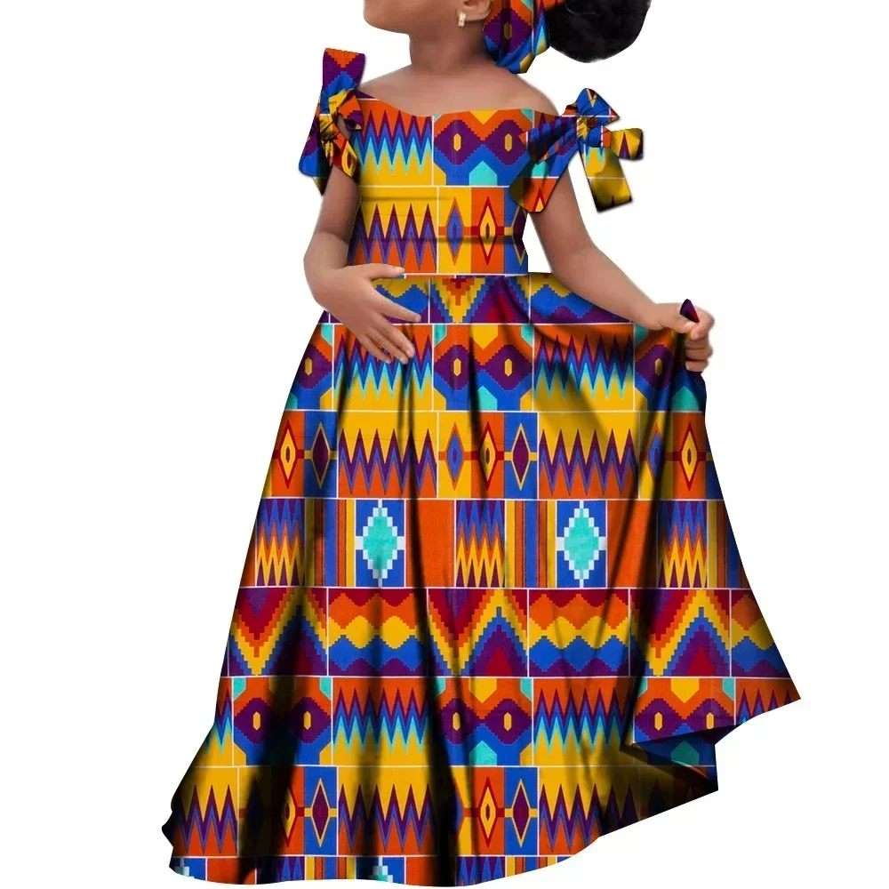 Kids Girls African Dashiki Dress Printted Vestidos Kids Cute Party Dresses African Clothing Long Dresses with Headscarf Wyt659