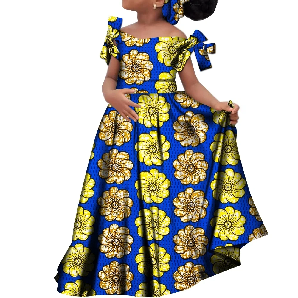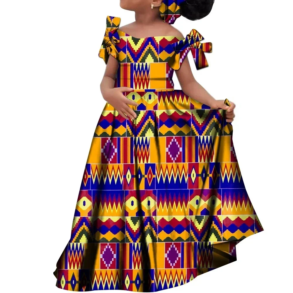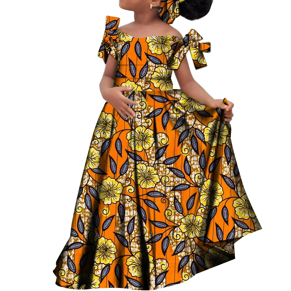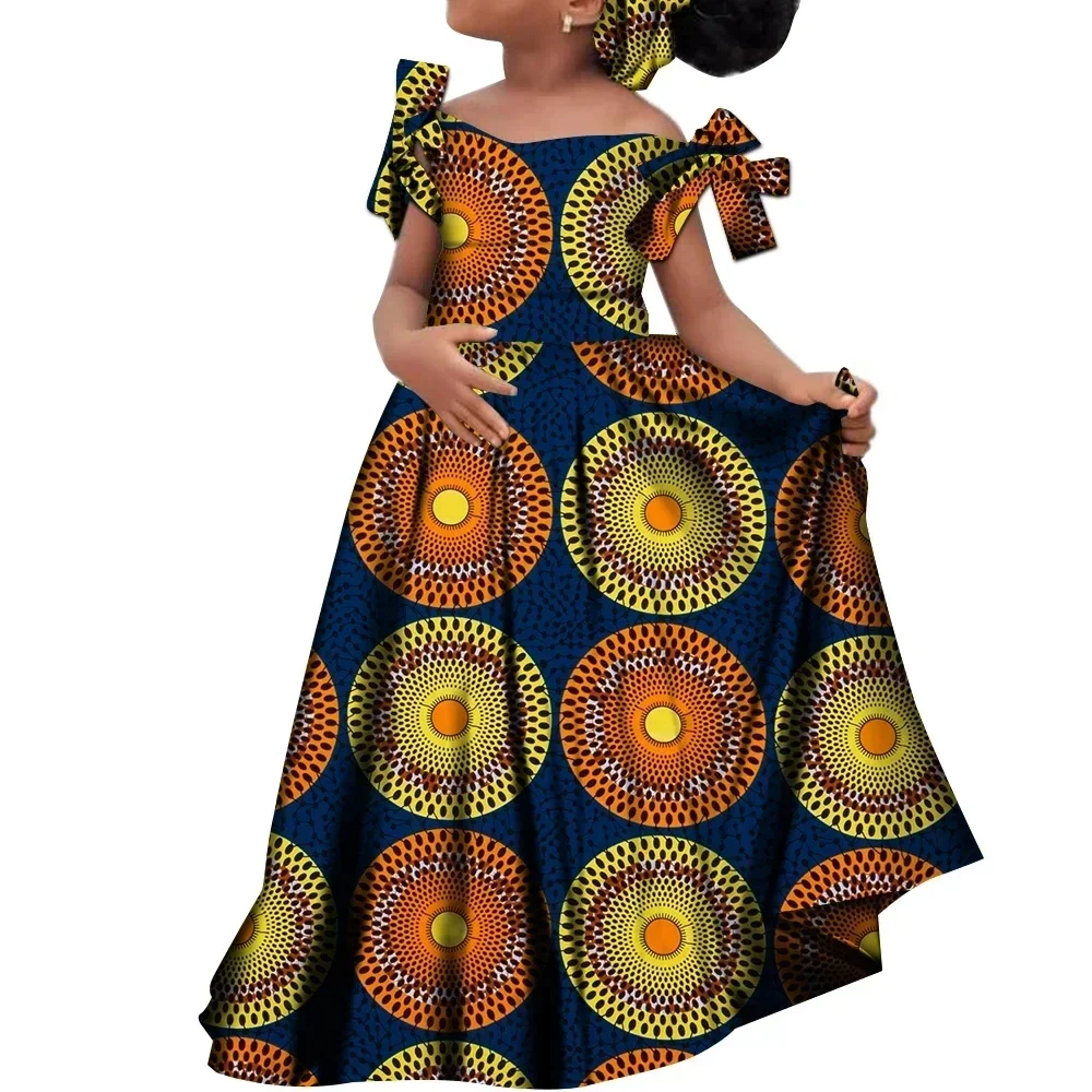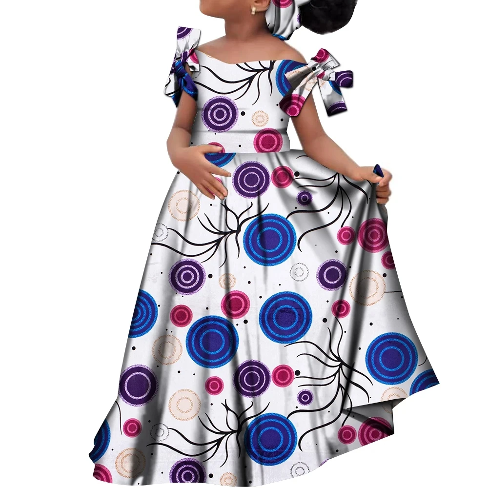 Kids Girls African Dashiki Dress Printted Vestidos Kids Cute Party Dresses African Clothing Long Dresses with Headscarf Wyt659