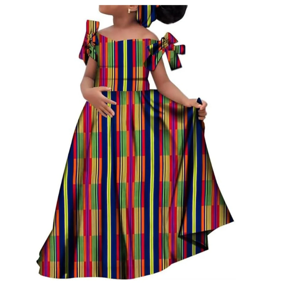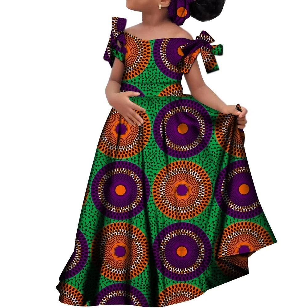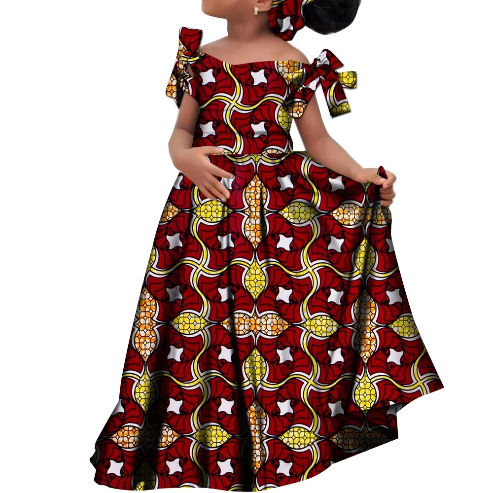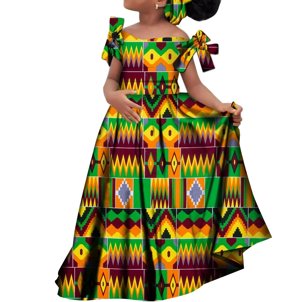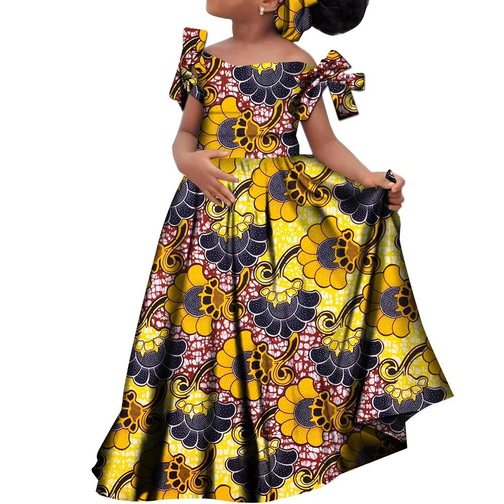 Kids Girls African Dashiki Dress Printted Vestidos Kids Cute Party Dresses African Clothing Long Dresses with Headscarf Wyt659