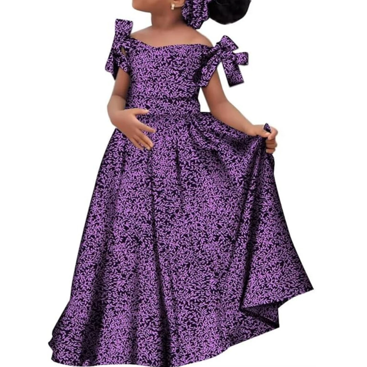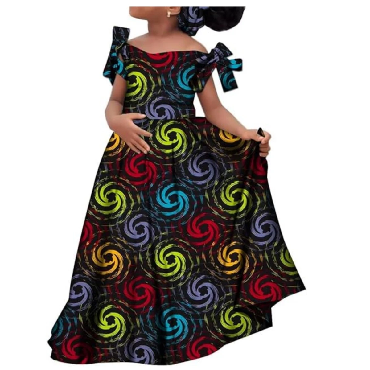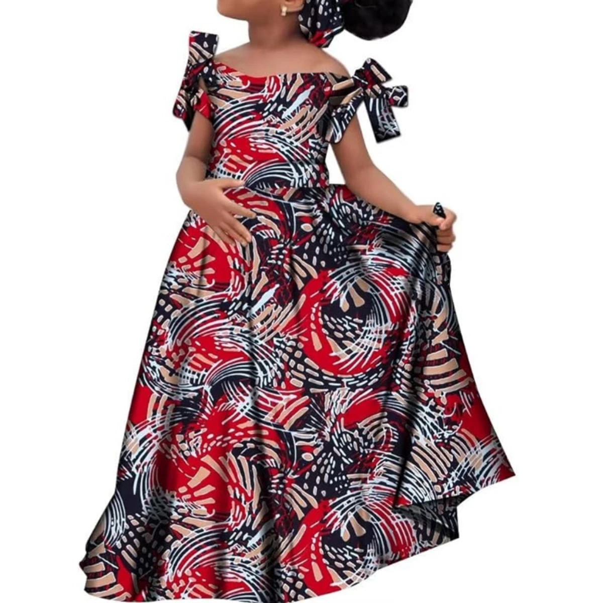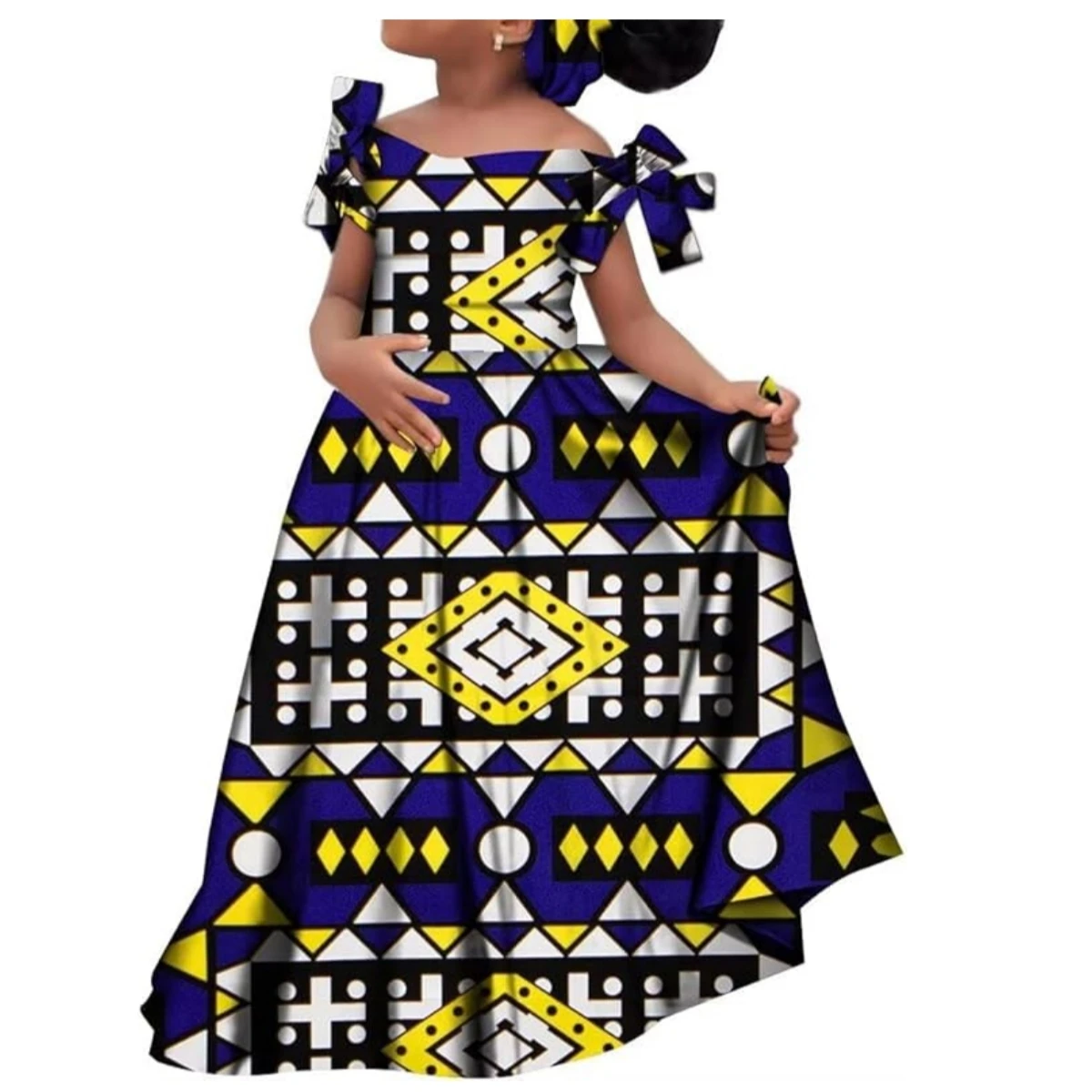 Kids Girls African Dashiki Dress Printted Vestidos Kids Cute Party Dresses African Clothing Long Dresses with Headscarf Wyt659