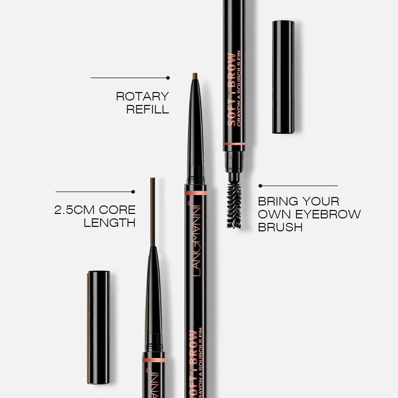 Langmanni Double headed Rotable Eyebrow Pen with a 1.5mm diameter Fine refill Waterproof Wild Eyebrow Pen and Eyebrow Brush