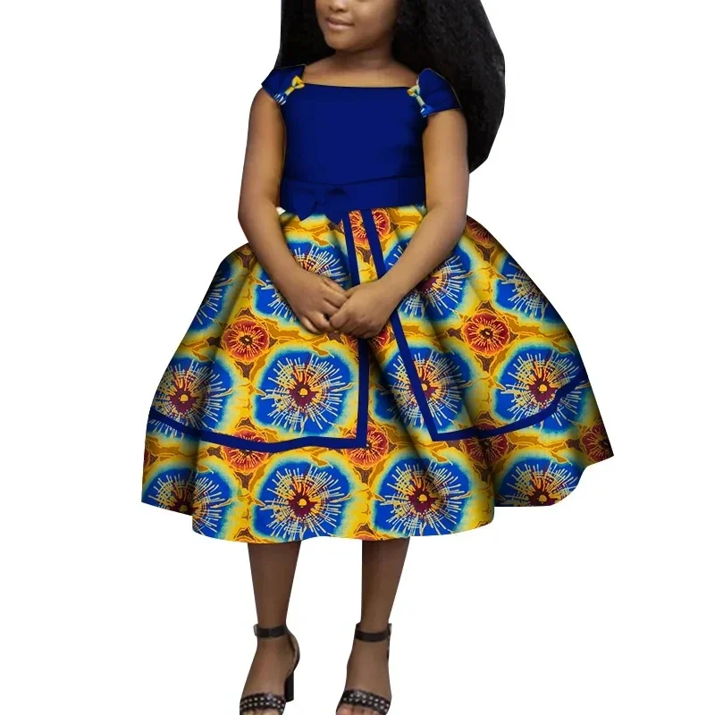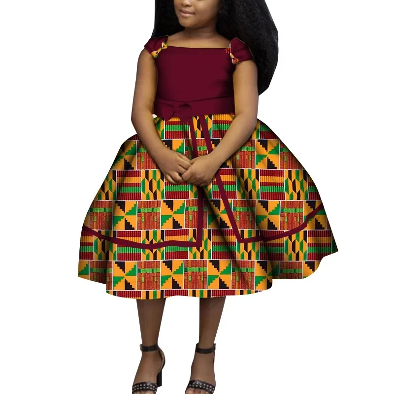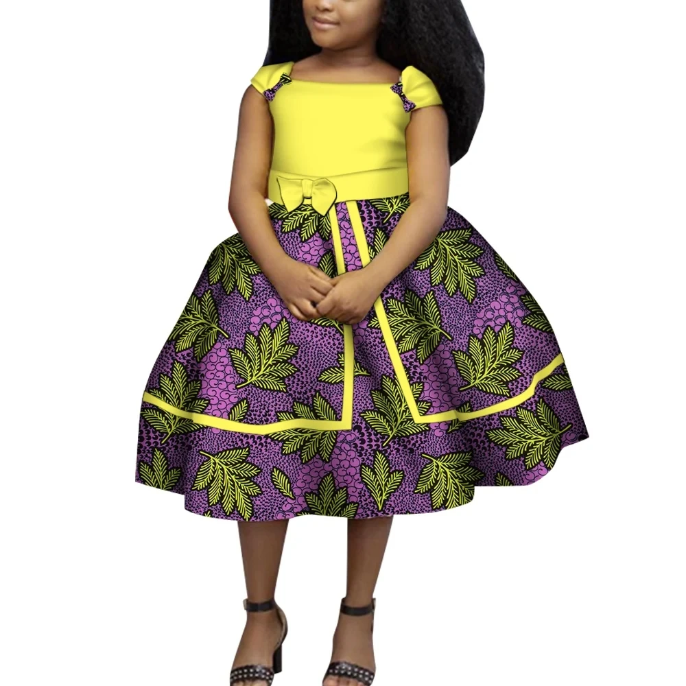 Lovely Girls Dresses Bazin Riche African Print Bow Tie Cute Ankara Dresses for Kids Children African Clothing Party Dress WYT525