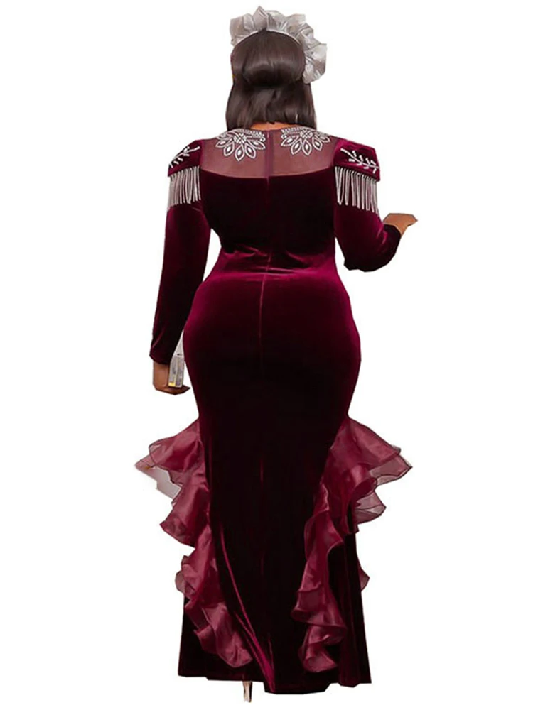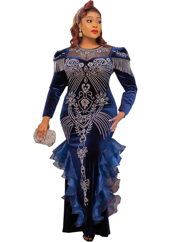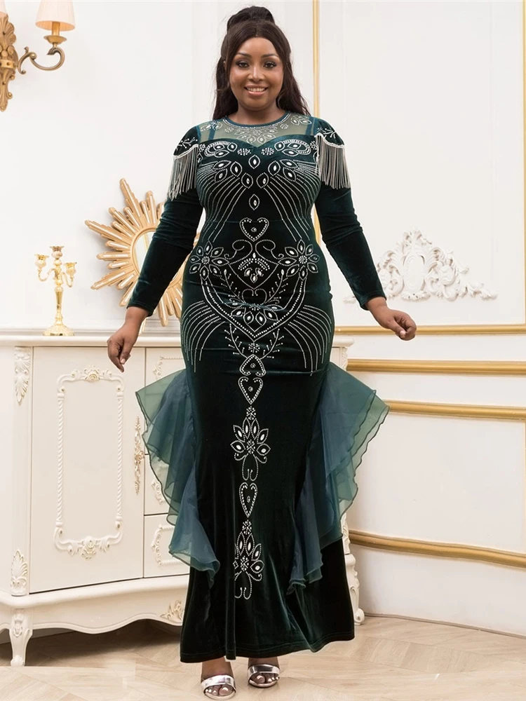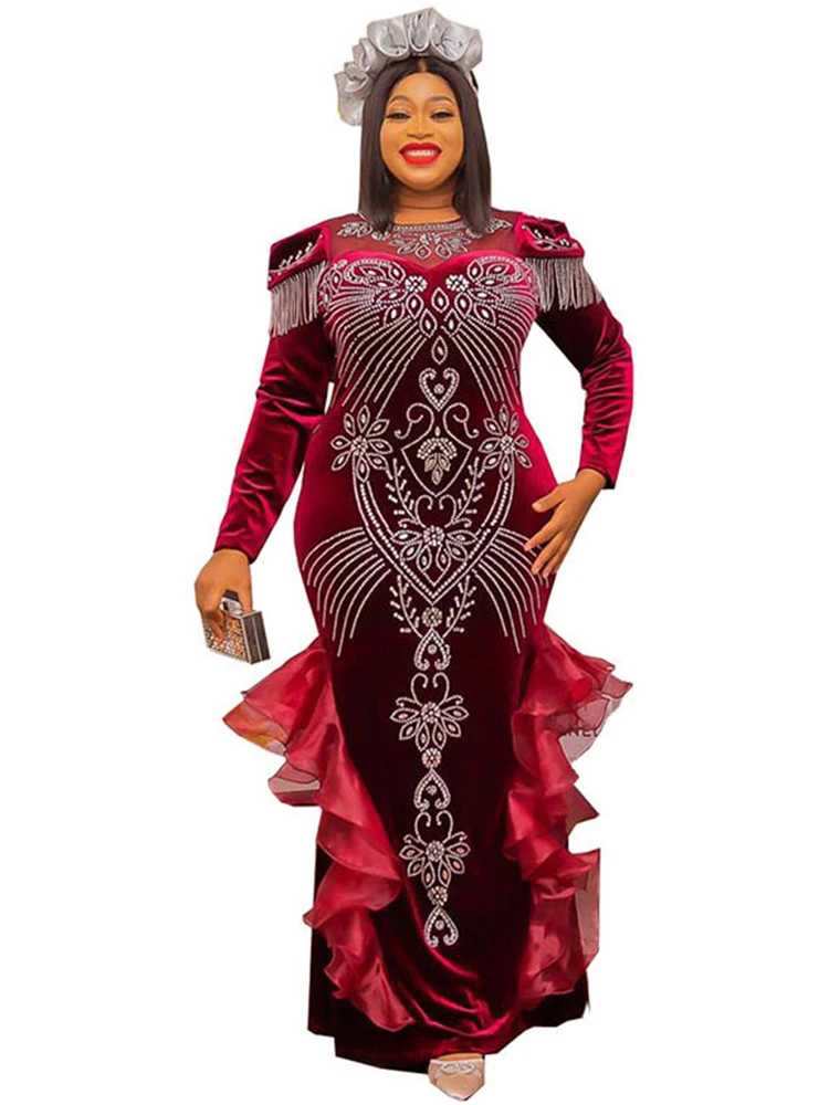 Luxury Velvet Dresses For Women Dubai Long Sleeve Abayas African Dashiki Crystal Robe 2025 Festival Outfit Wedding Party Gowns