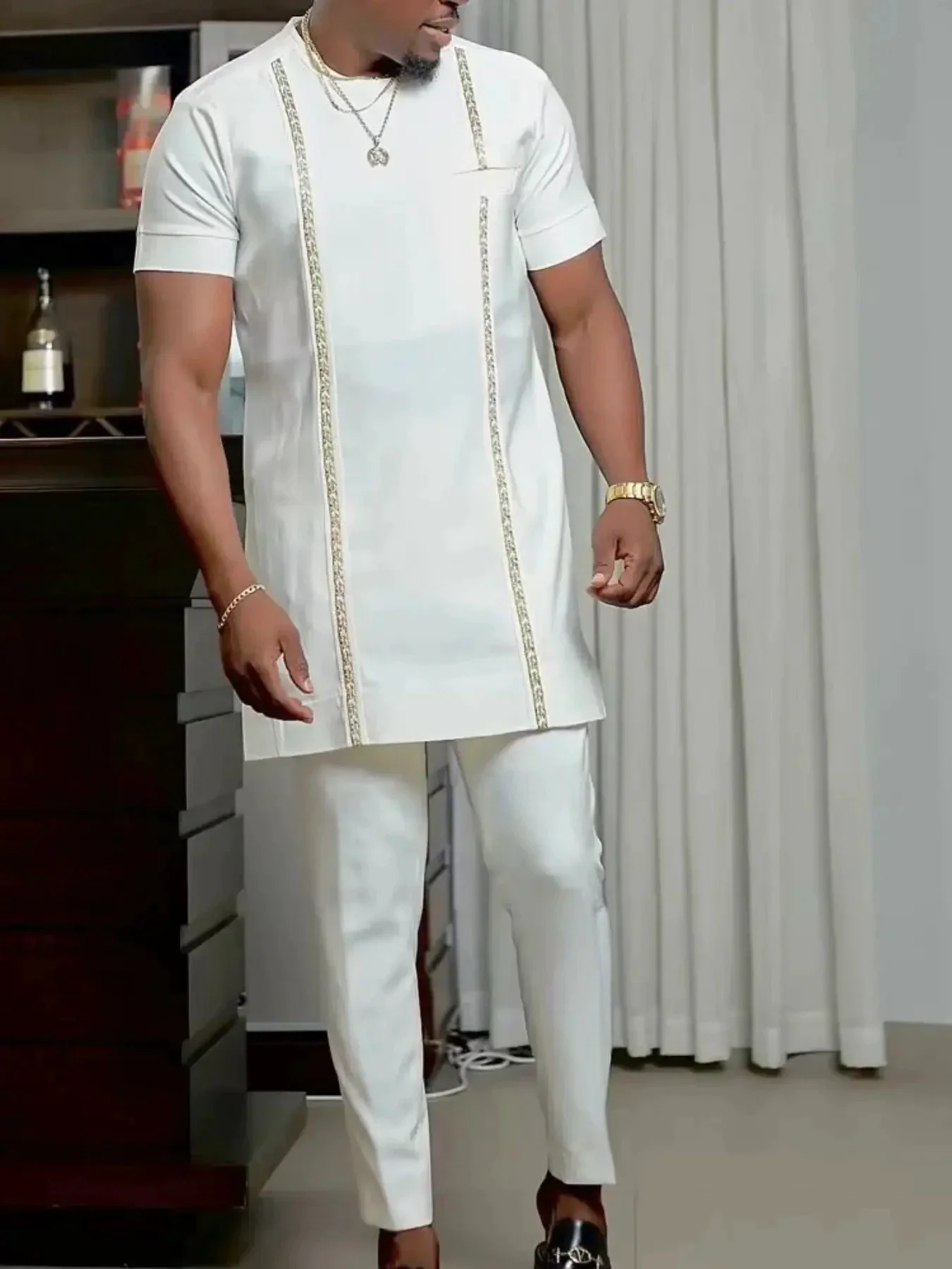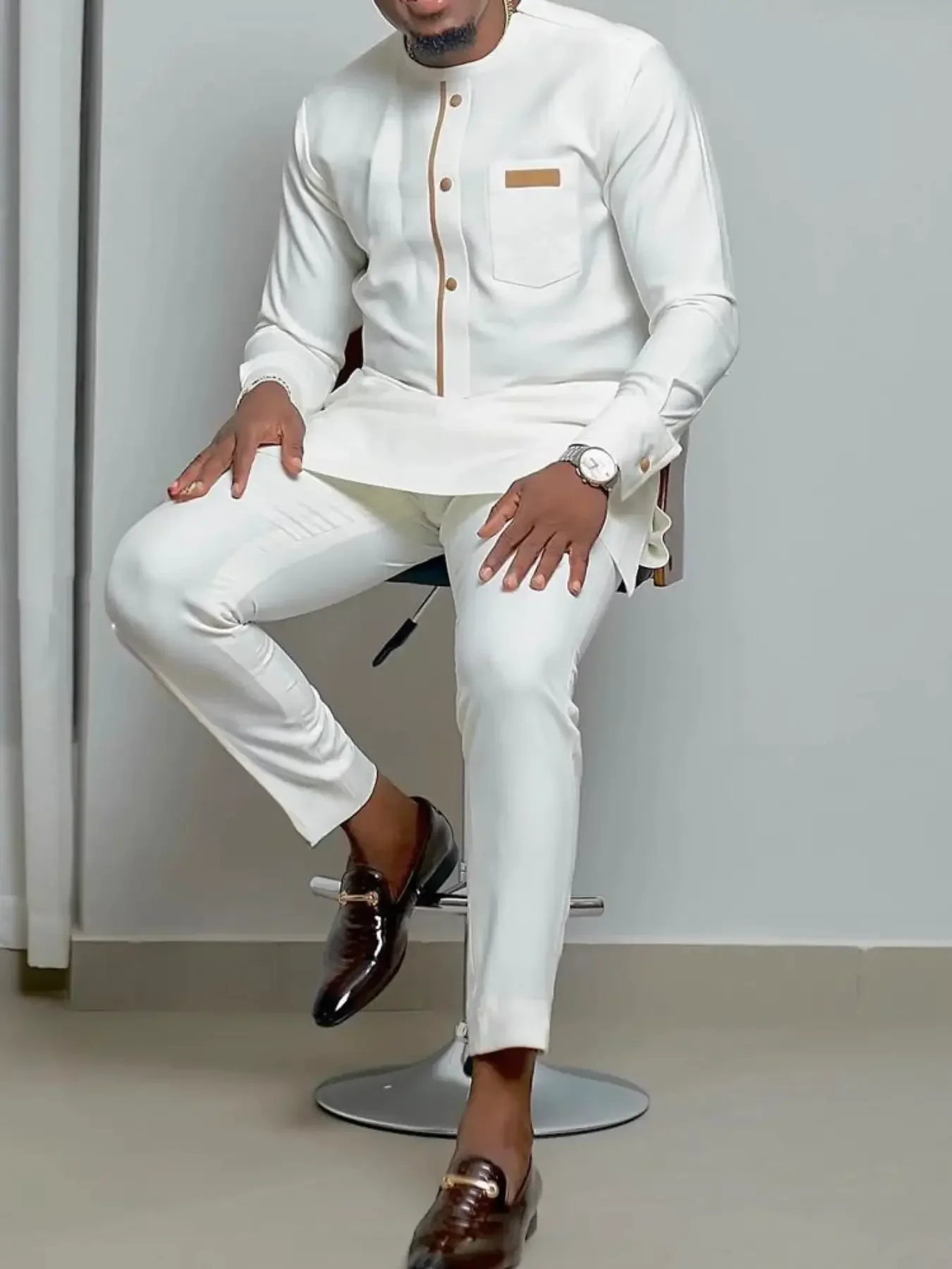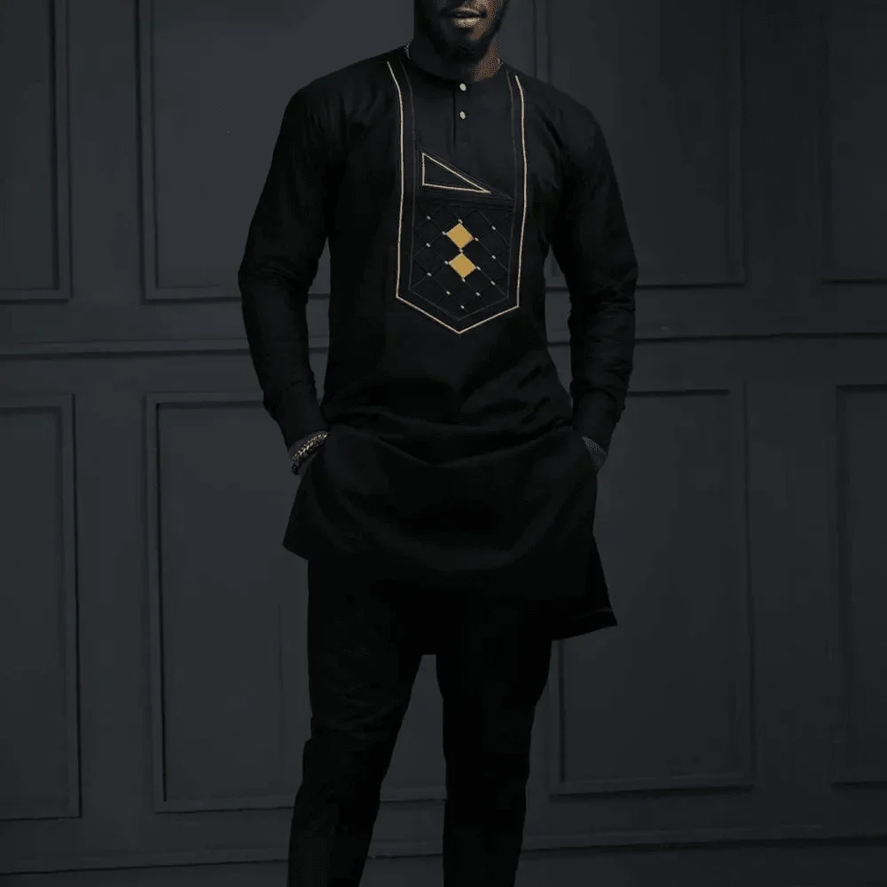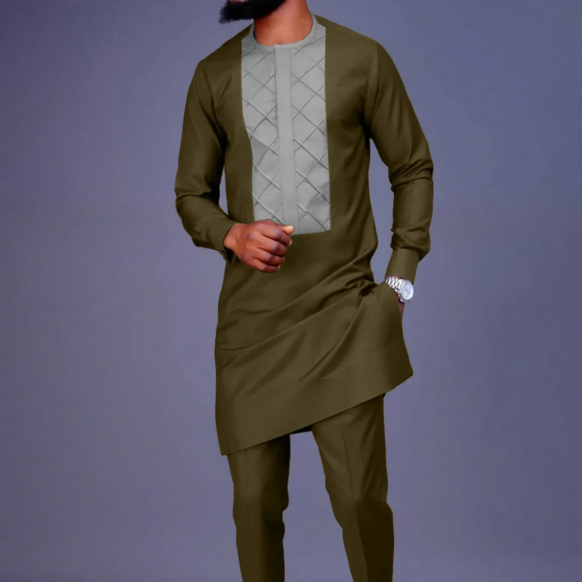 Mans Tracksuits Suits Set Kaftan Embroidered Long Sleeve Tops Pants 2Pcs Set Outfits Wedding Wear African Ethnic Casual Clothing