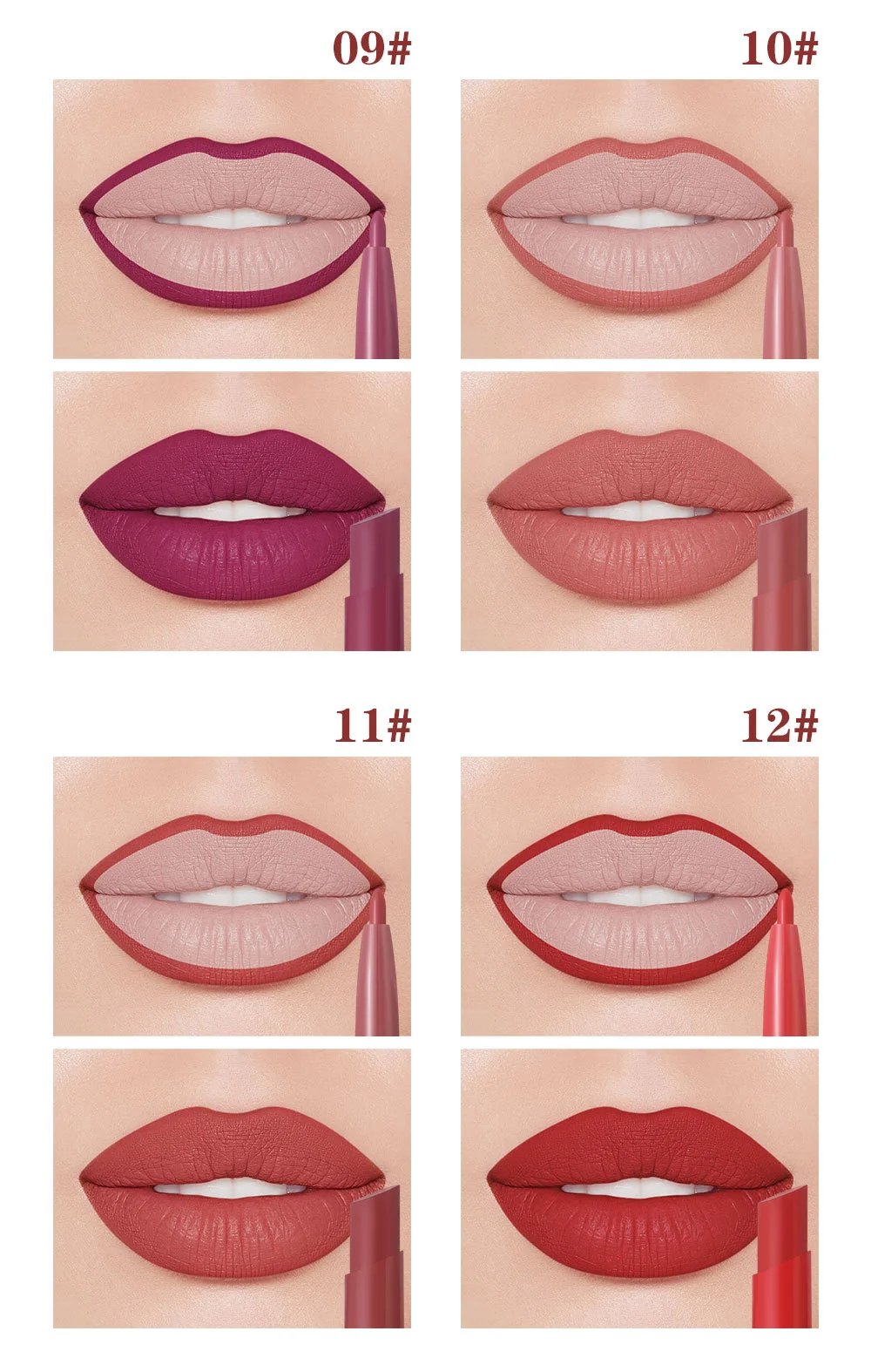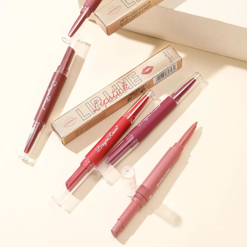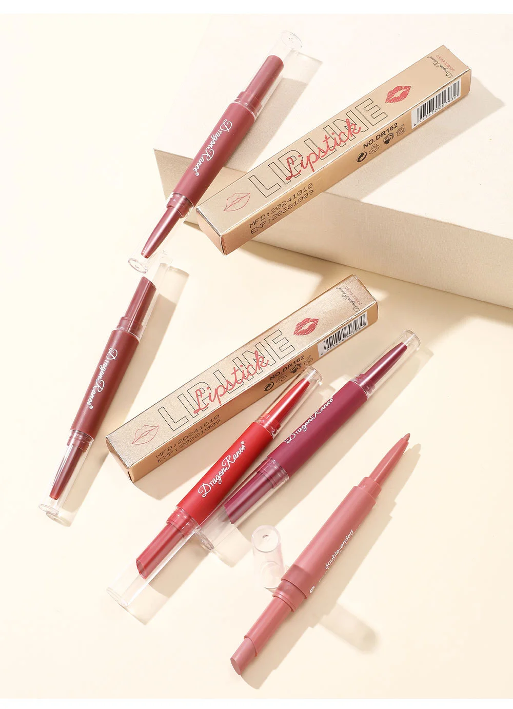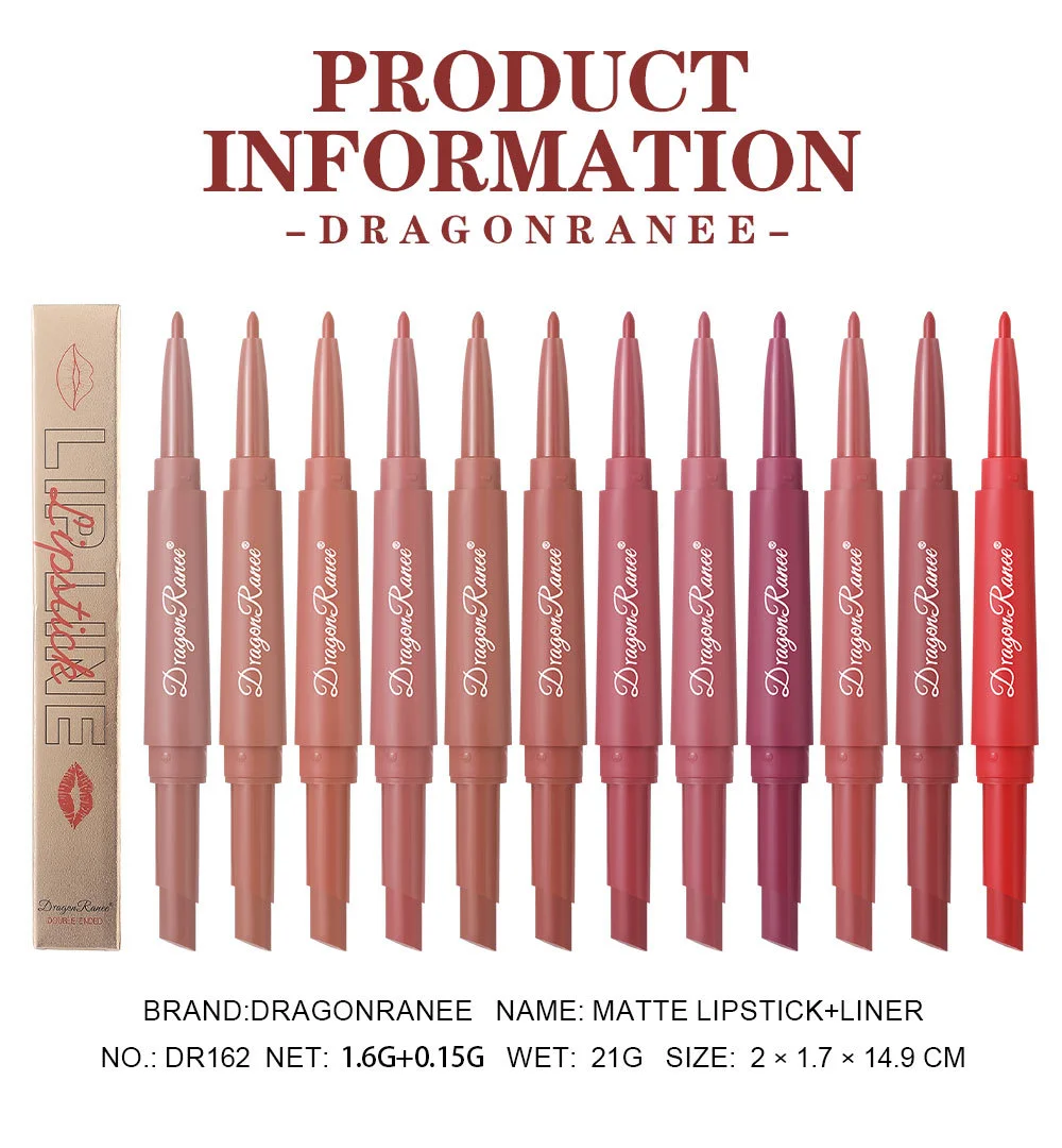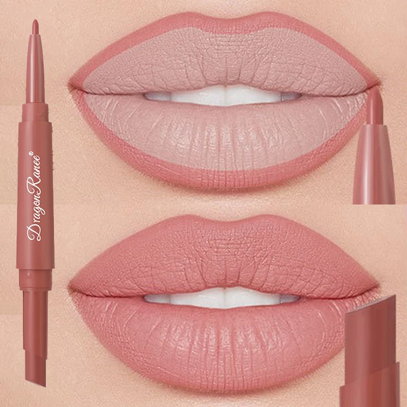 Matte Nude Pink Lipstick Pen Long Lasting Lipliner Lip Pencil 2 in 1 Waterproof Lip Liner Contour Sexy Red Lip Makeup for Women