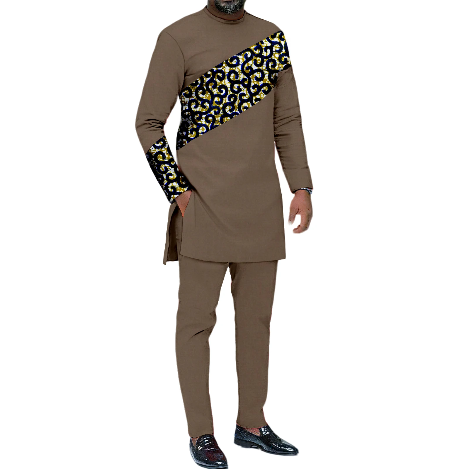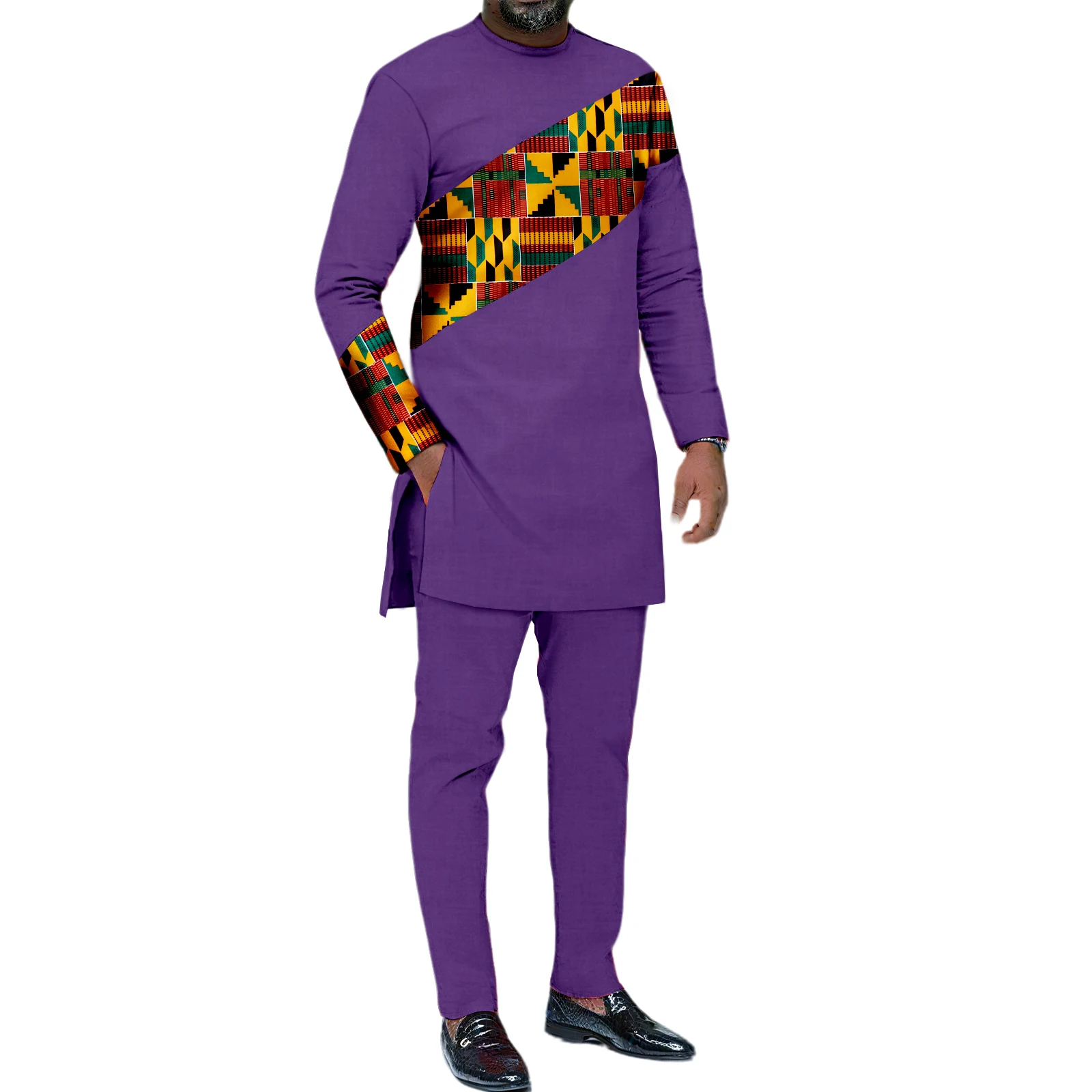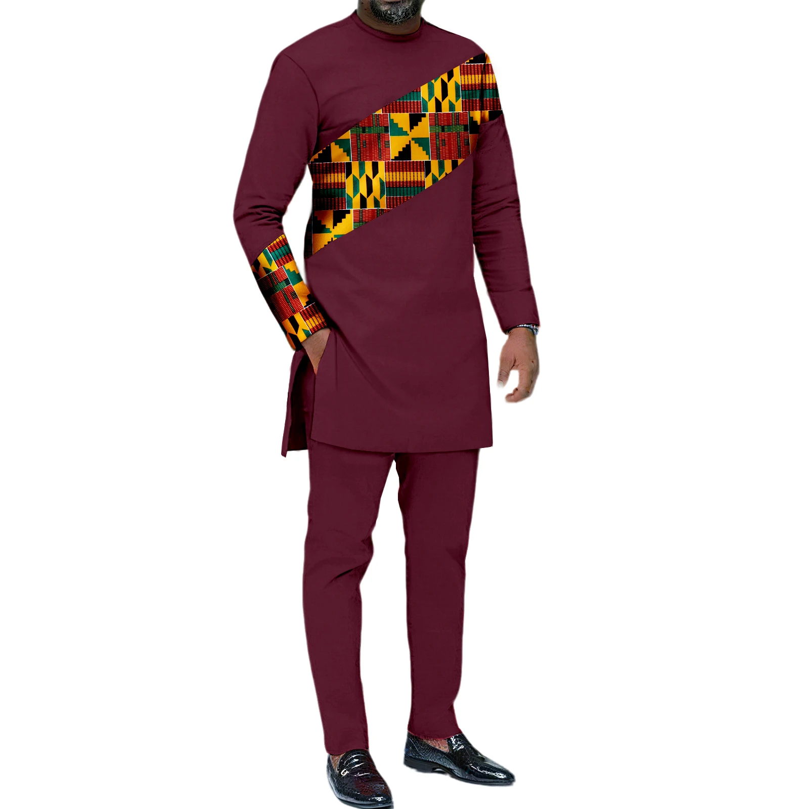 Men's African Clothing Dashiki Suit Kente Print Patchwork Top Shirt Pants Outfits 2 Piece Set Nigerian Attrie