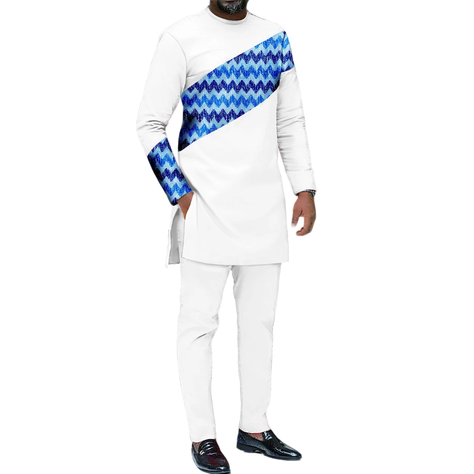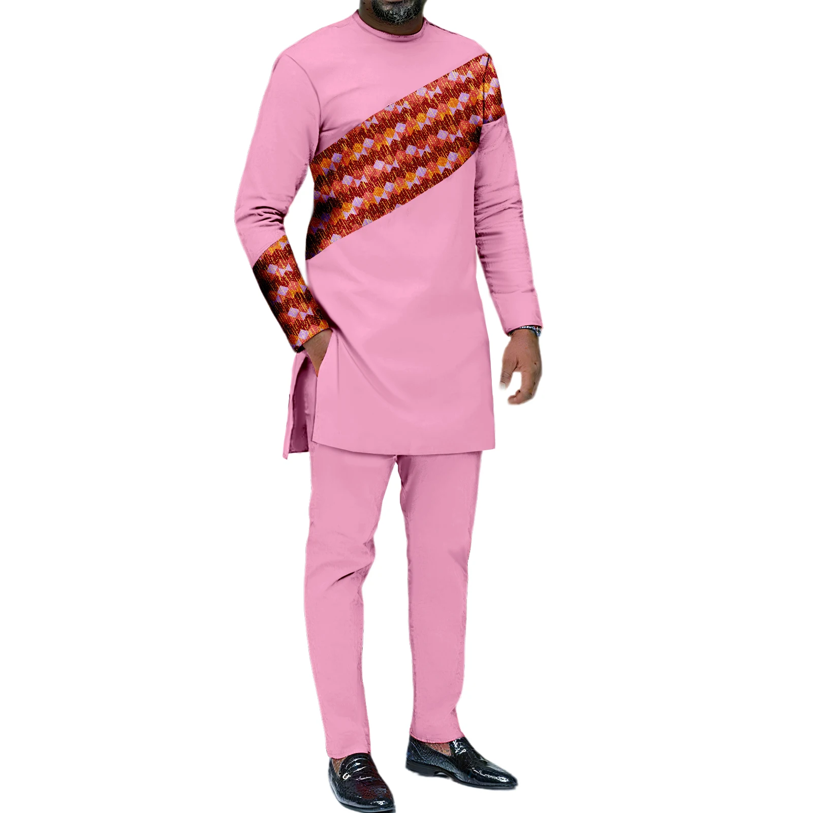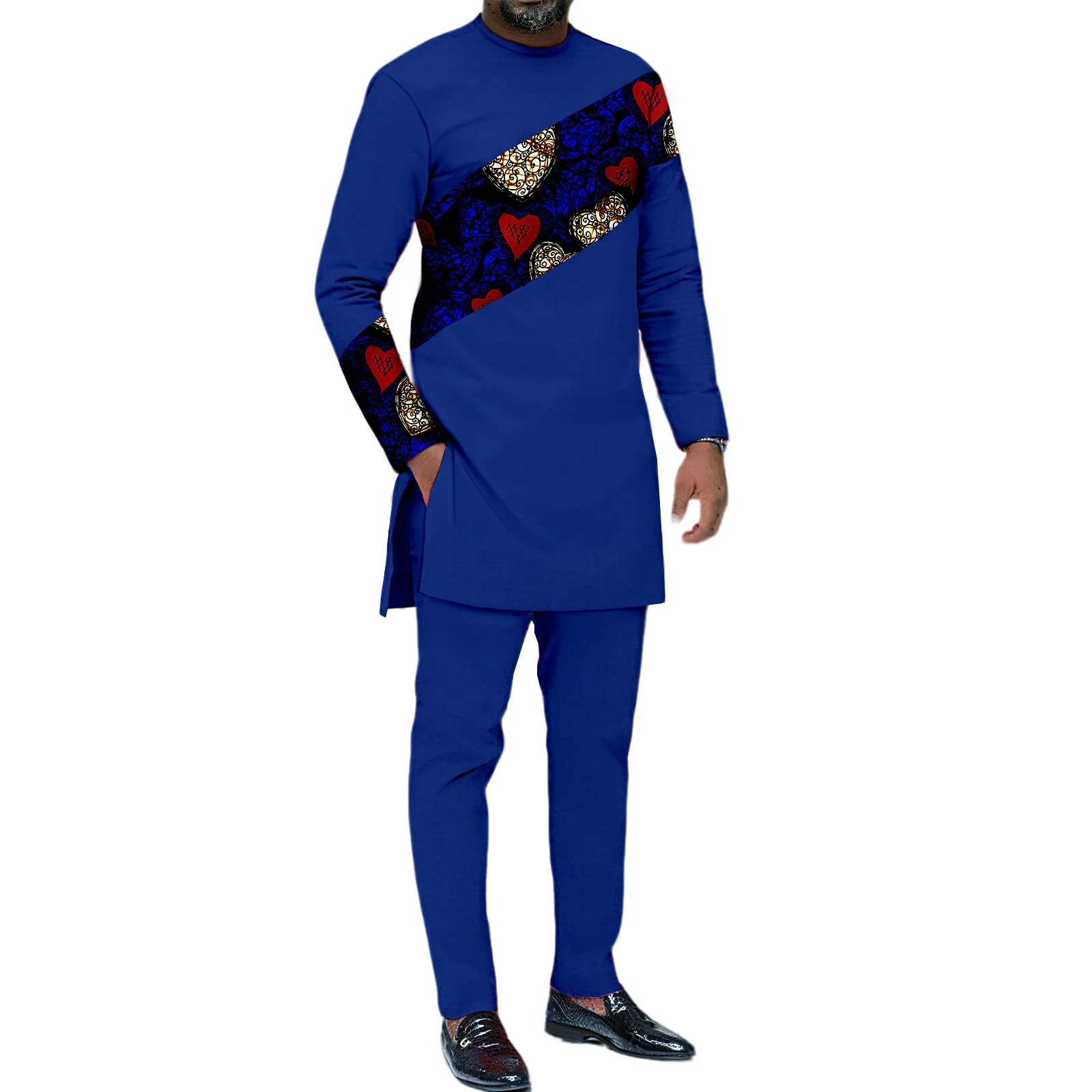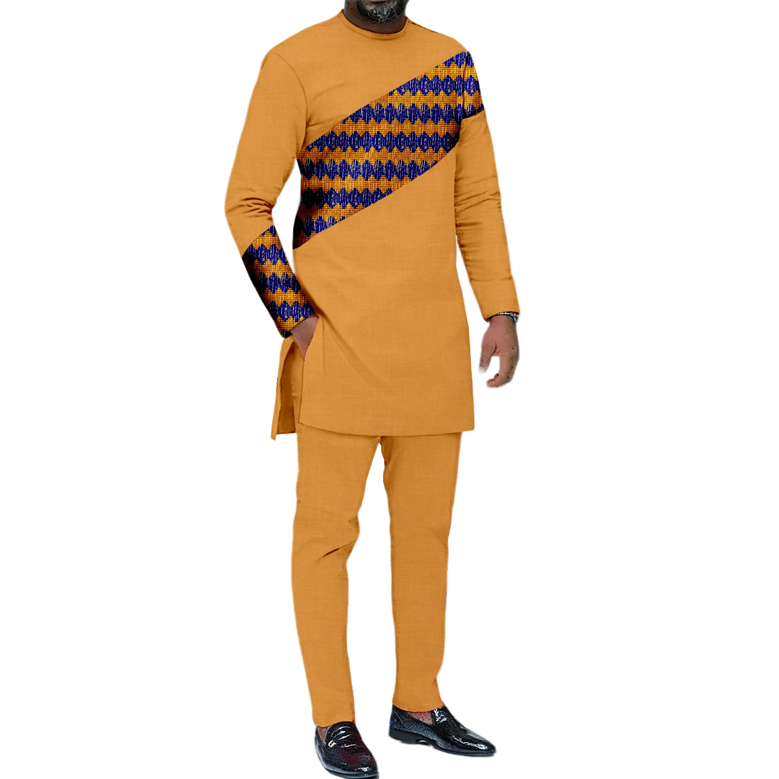 Men's African Clothing Dashiki Suit Kente Print Patchwork Top Shirt Pants Outfits 2 Piece Set Nigerian Attrie