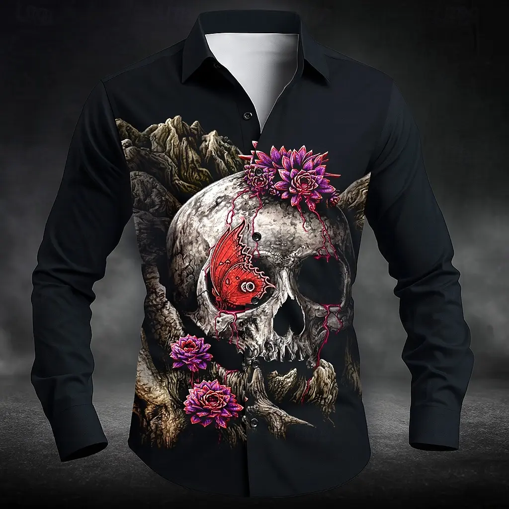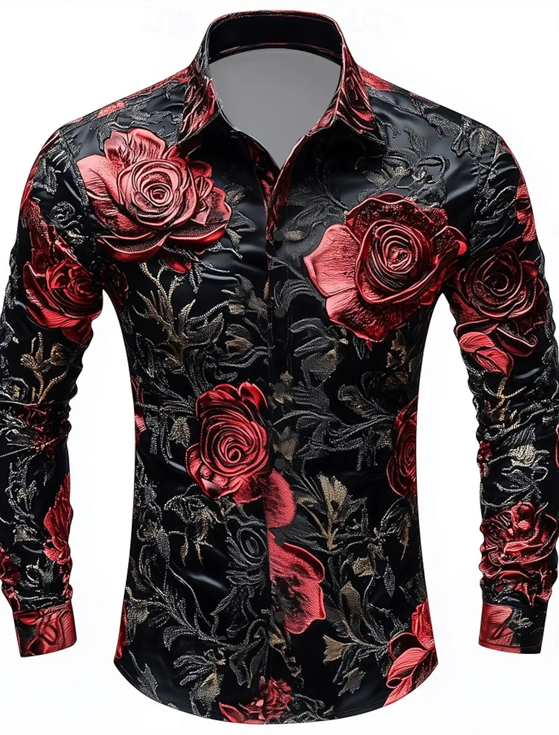 Men's Floral Print Rose Flowers Shirt Button Up Shirt Long Sleeve Dark Gothic Style Streetwear Summer 3D Print Collared Shirts