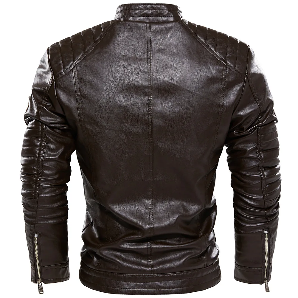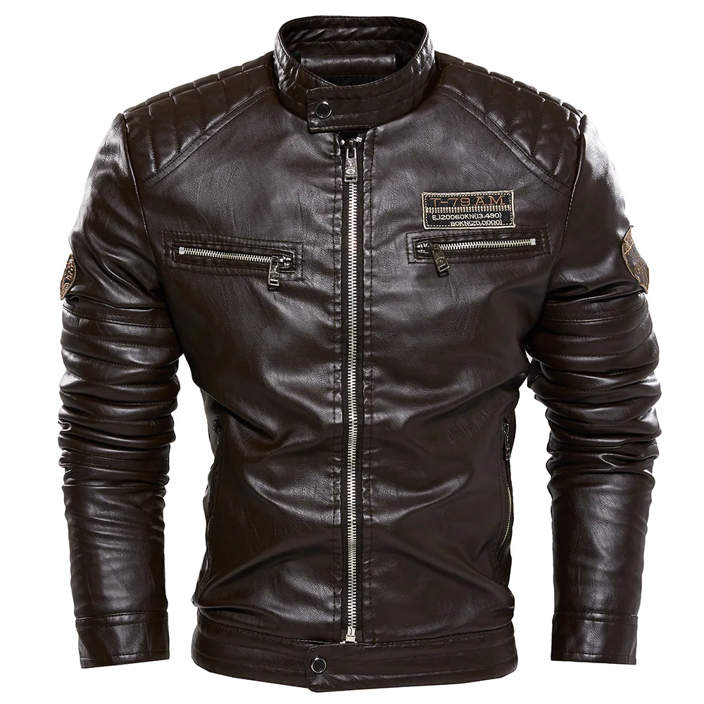 Mens PU Leather Jacket High-quality Wool Thick Winter Slim Fit Stand Collar Warm Coats Emblem Embroidery Jacket for Men Luxury