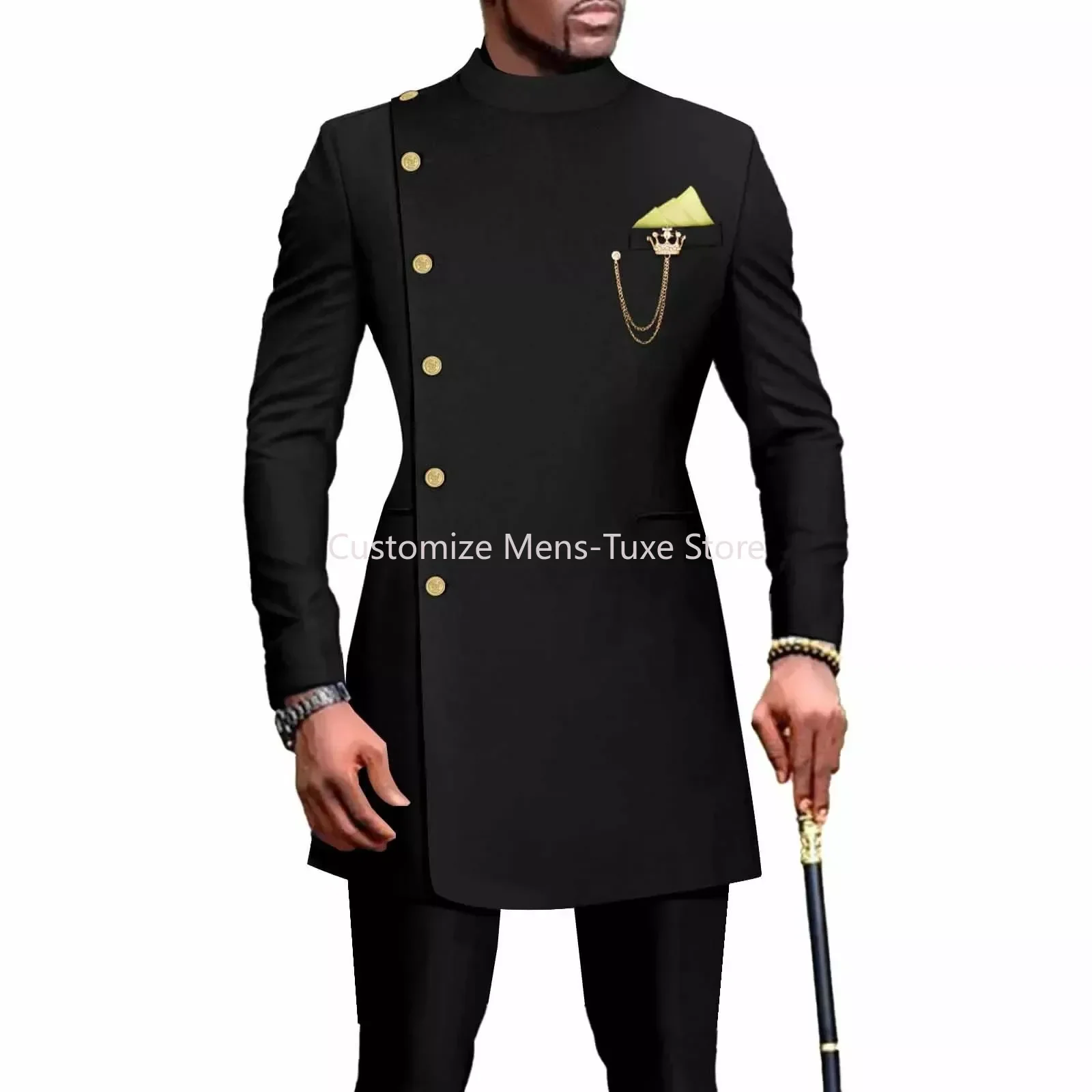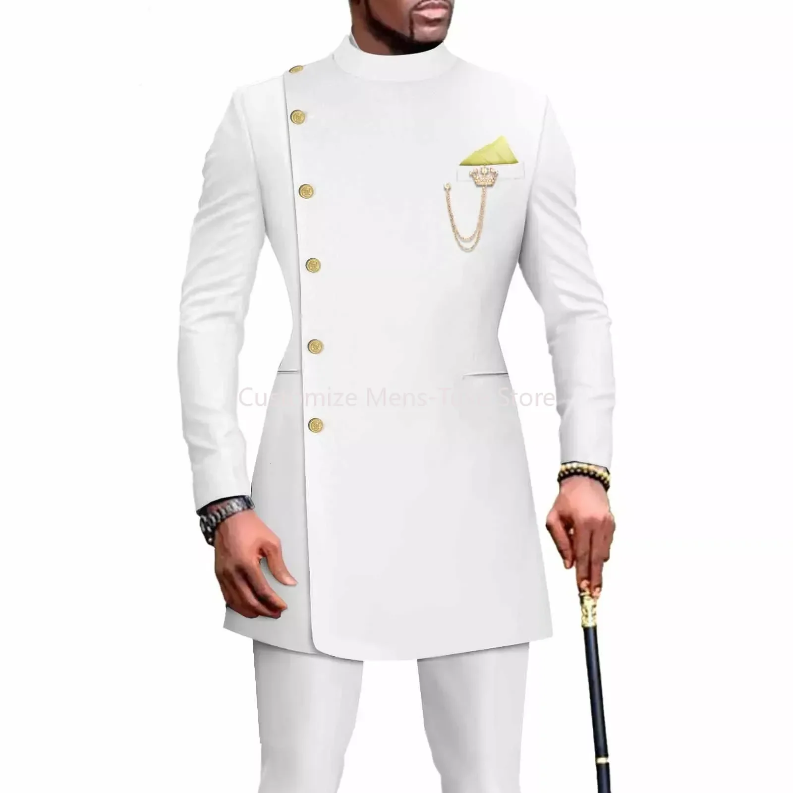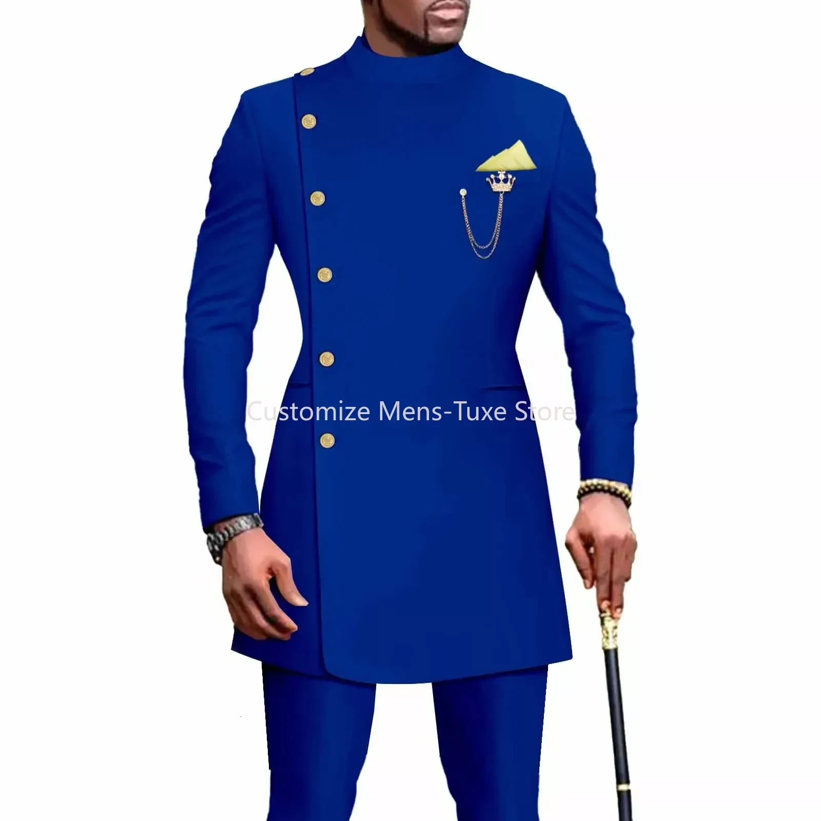 Mens Suits Blazers African Clothes for Men Suit 2 Piece Jacket Pants Traditional Wedding Slim Fit Solid Color Festival Party