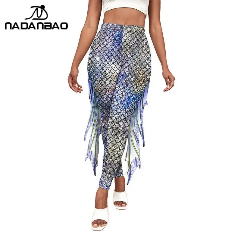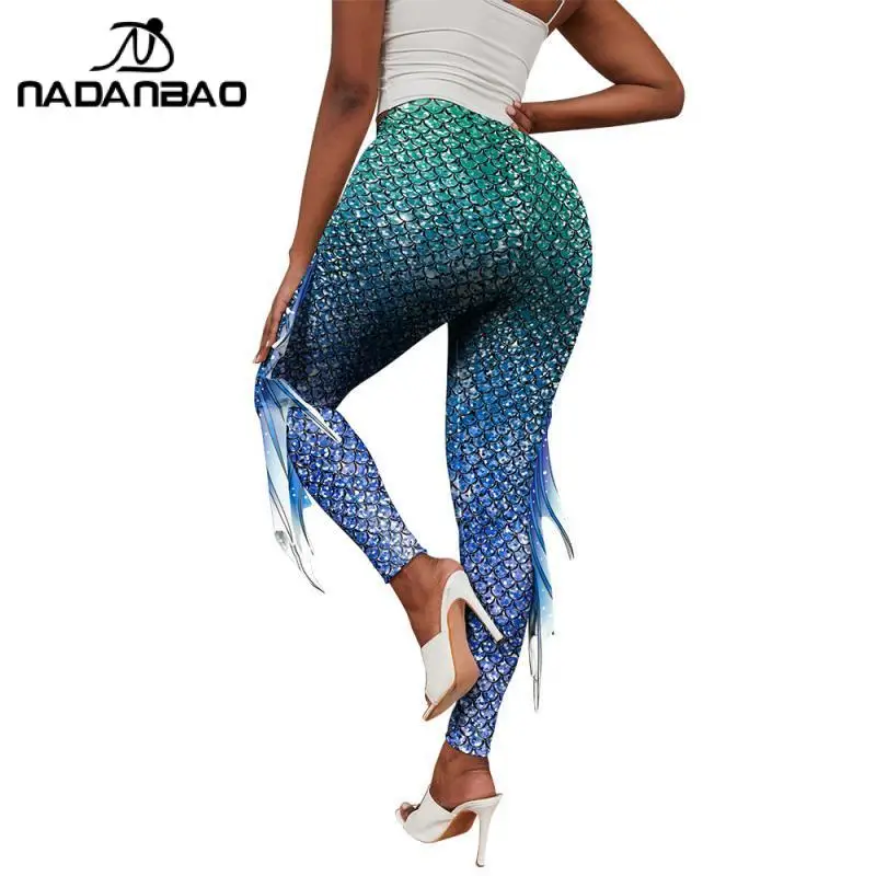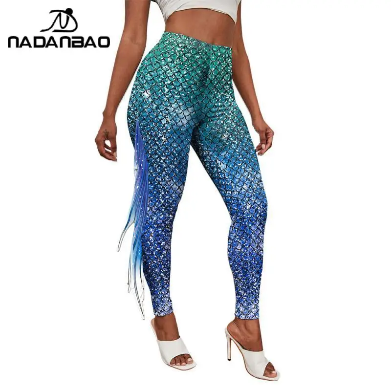 NADANBAO Mermaid Printed Pants Fish Scales Cosplay 3D Printed Women Bottoms Fashion Women's Leggings Tight Yoga Pants