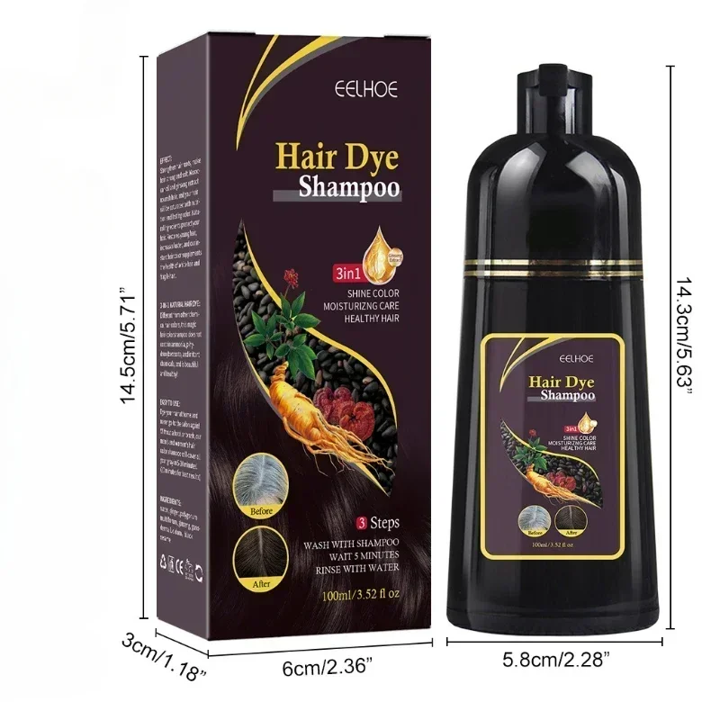 Natural Herbal Hair Dye Shampoo 3 in 1 Hair Color Shampoo for Hair Dark Brown Black for Women & Men Grey Coverage
