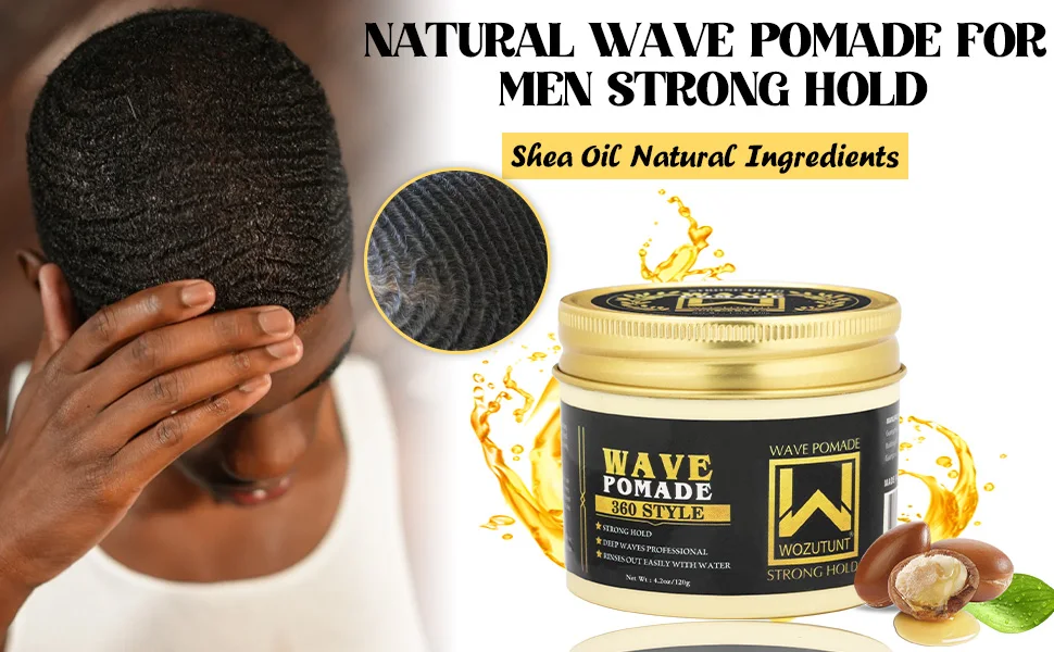 Natural Shea Butter Wave Control Pomade Strong Hold Layered Hair Clay High Shine Nourish Scalp 360 Style Wave Styling Hair Cream