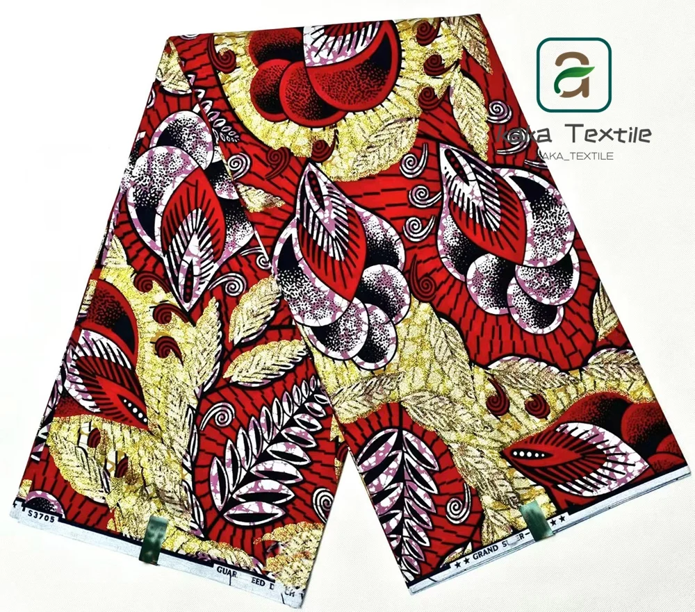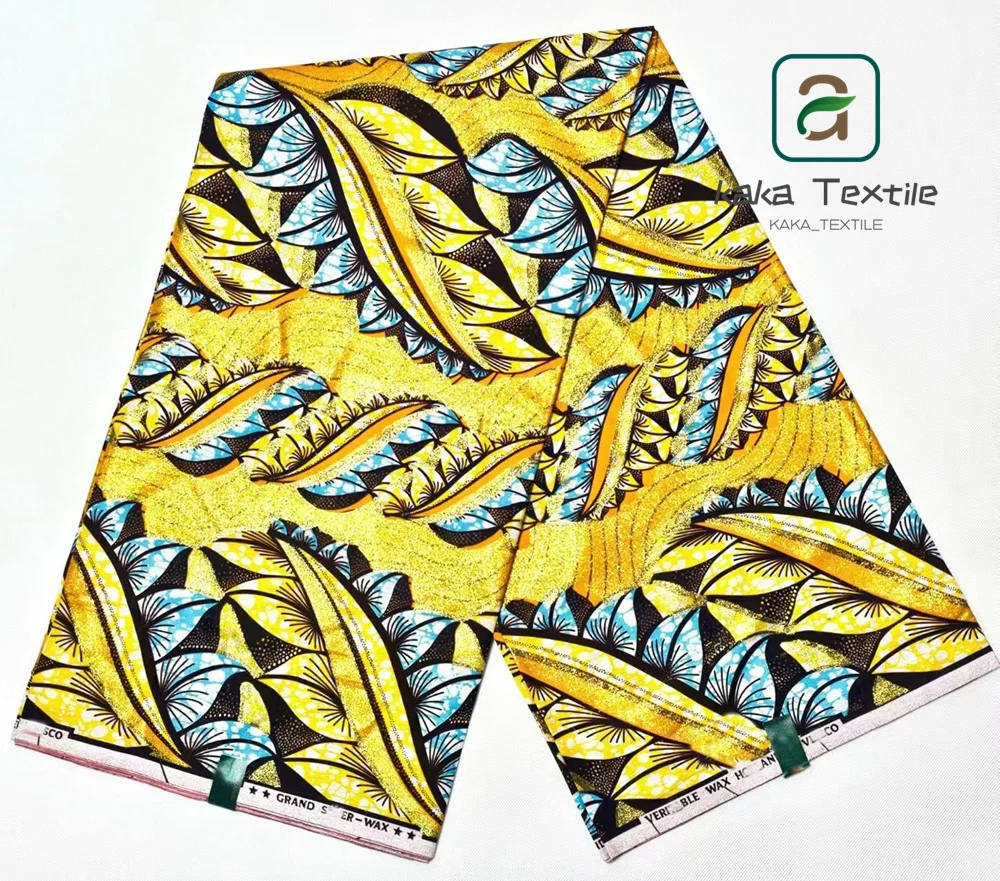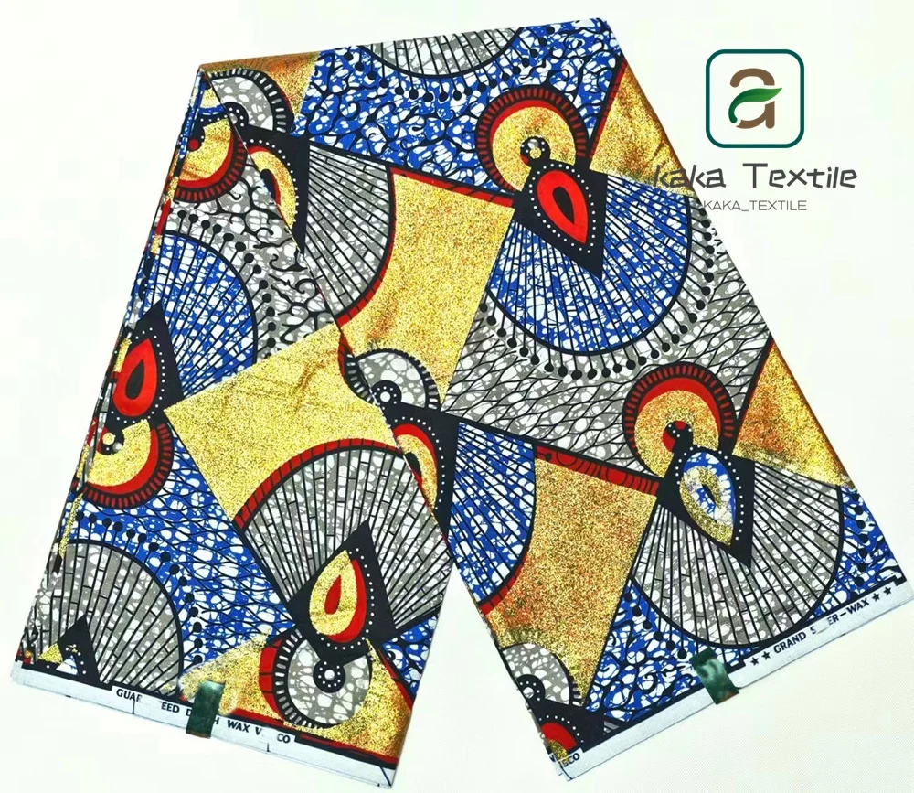 New African Grand Wax Fabric Glitter Grand Golden Wax Fabric Cotton Ankara Golden Wax Flash Gold Pagne Print Batik Good Quality