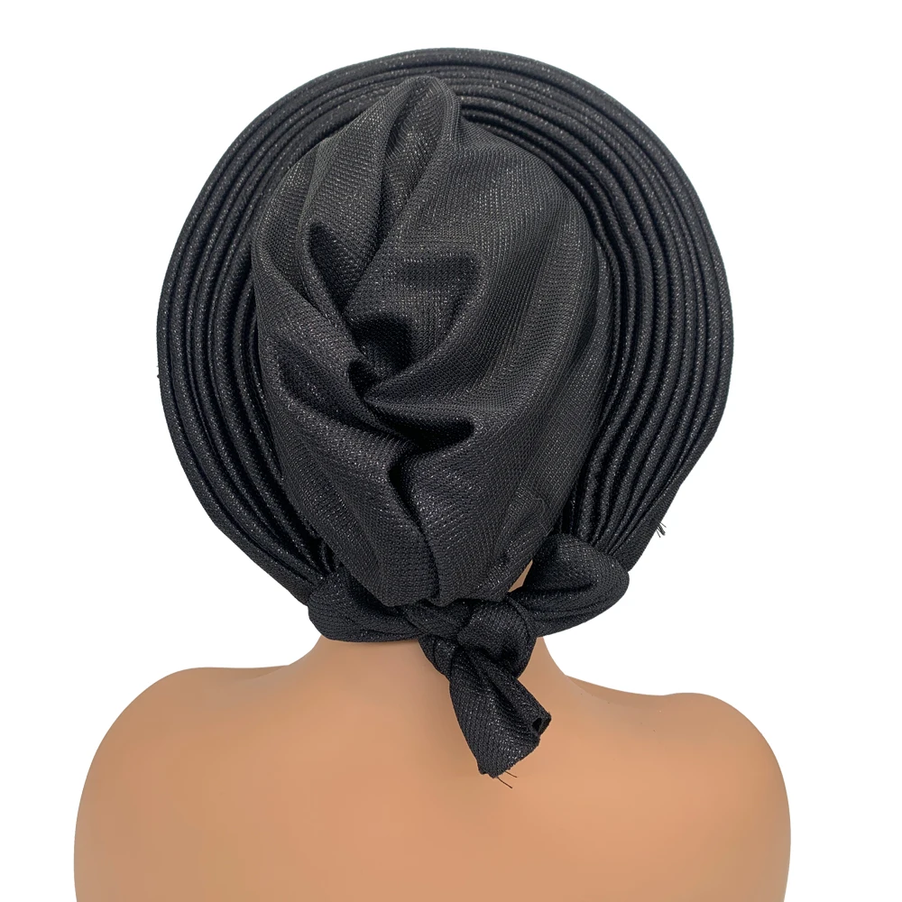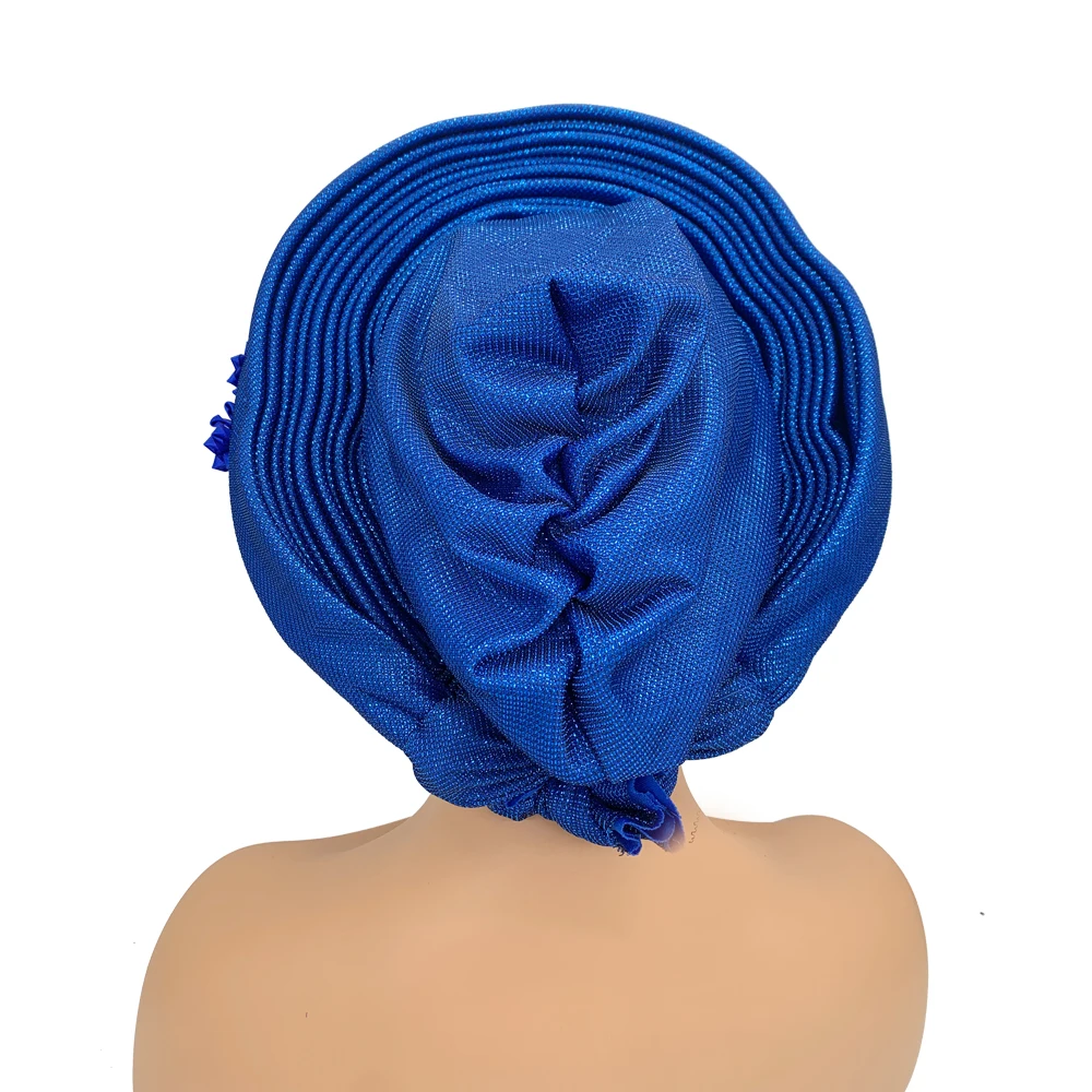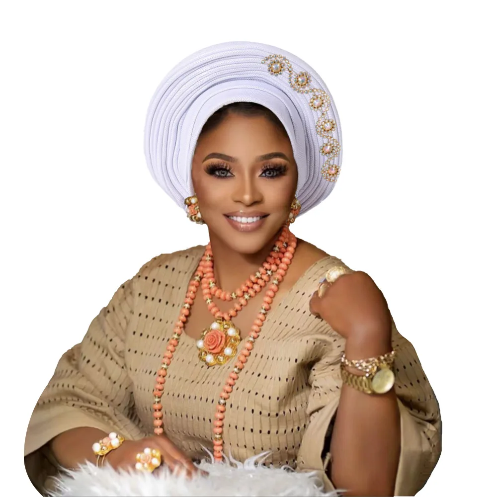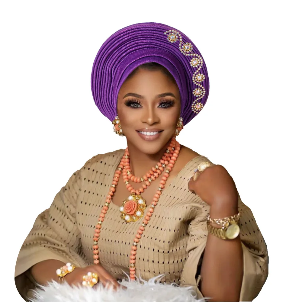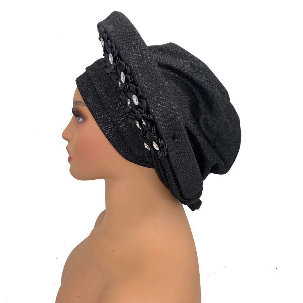 New African Headtie Turban Nigeria Head Ties with Flowers Already Made Auto Gele Women Head Wraps for Wedding Party