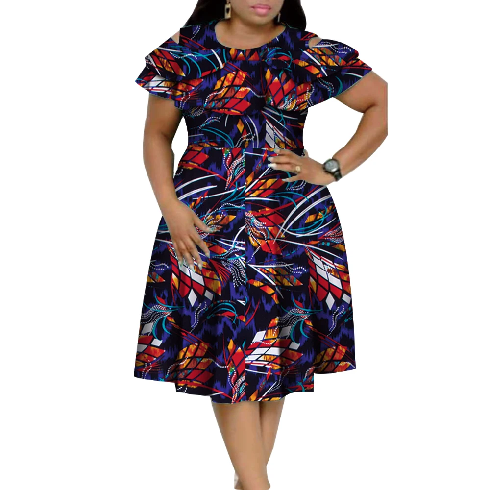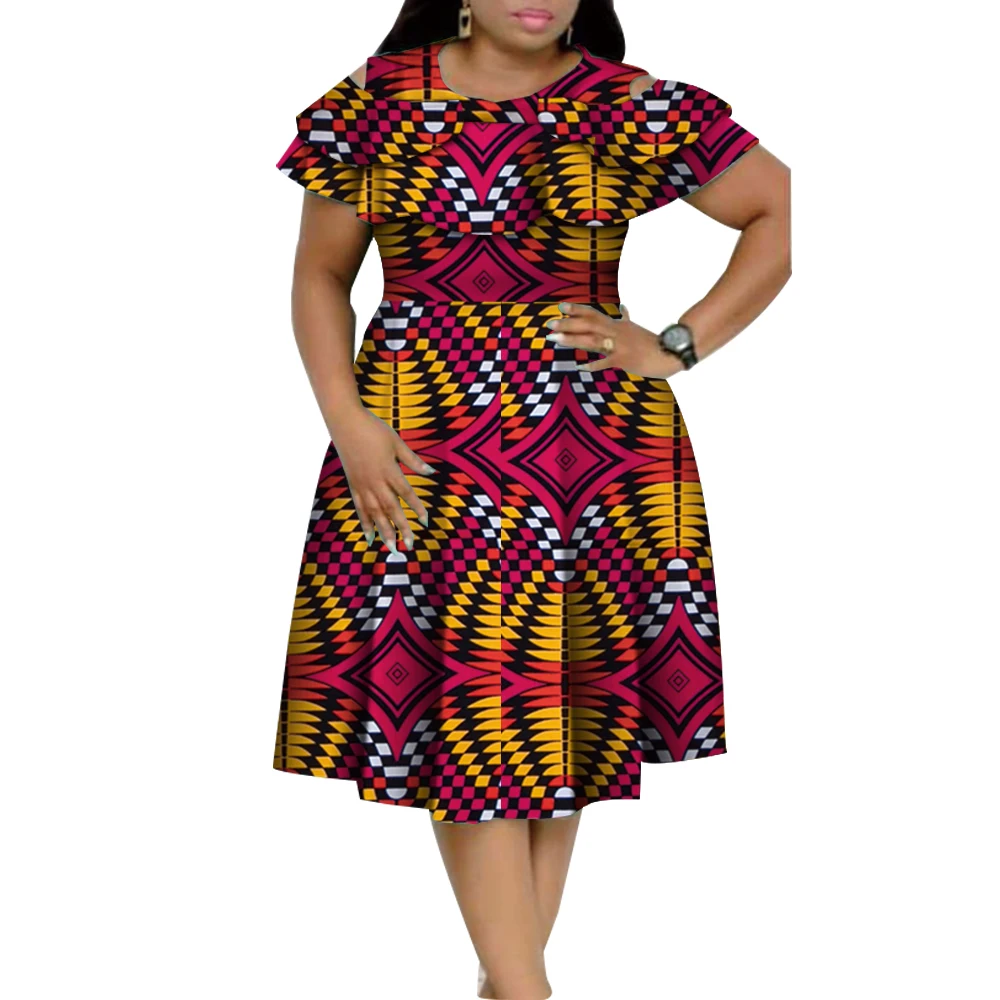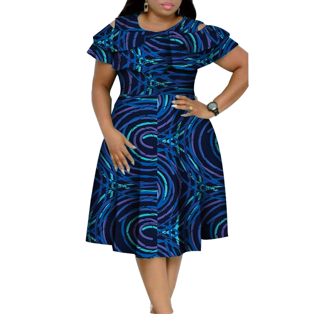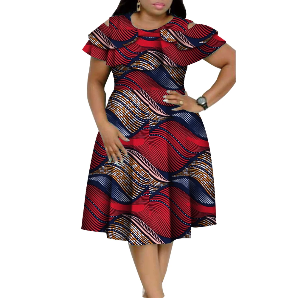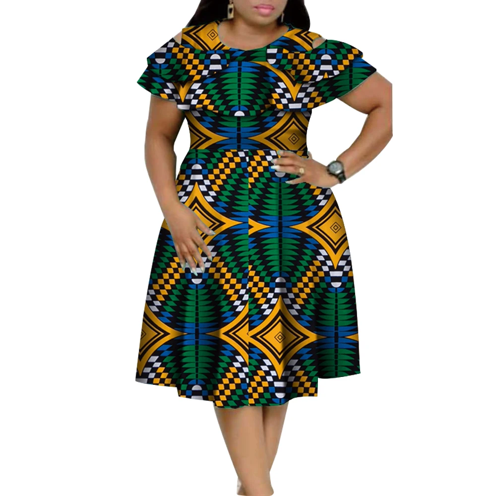 New Bazin Riche African Ruffles Collar Dresses for Women Dashiki Print Pearls Dresses Vestidos Women African Clothing WY4401