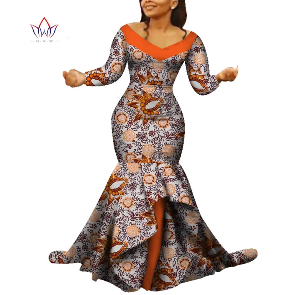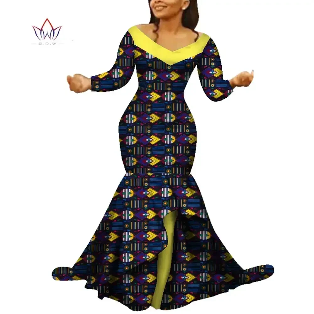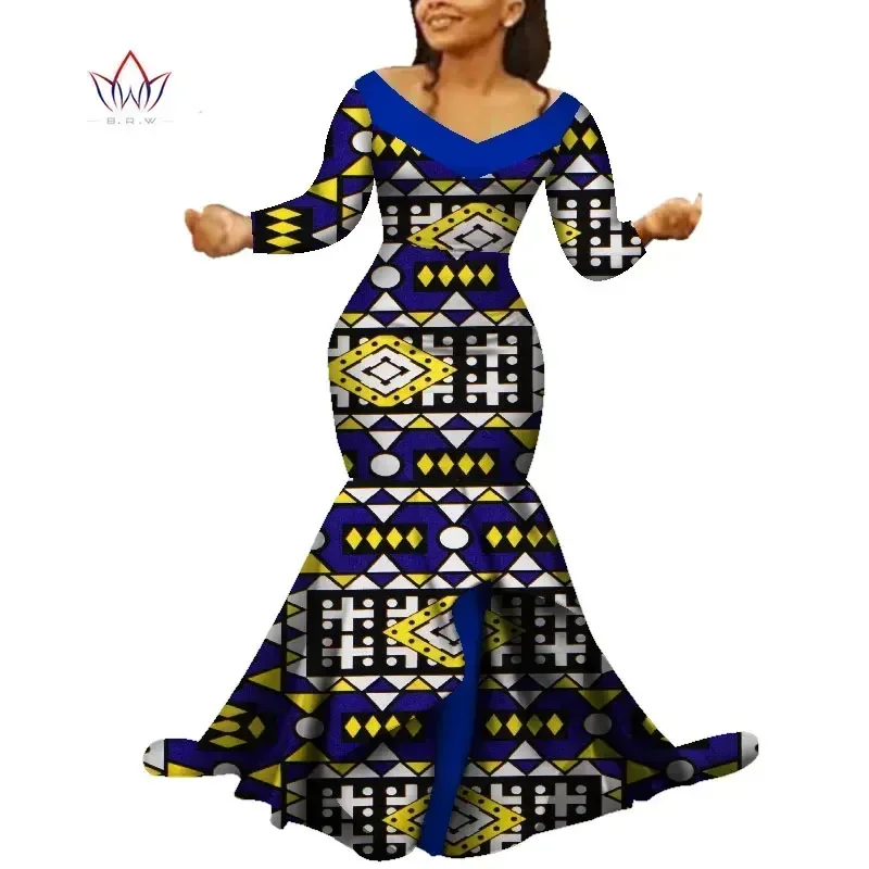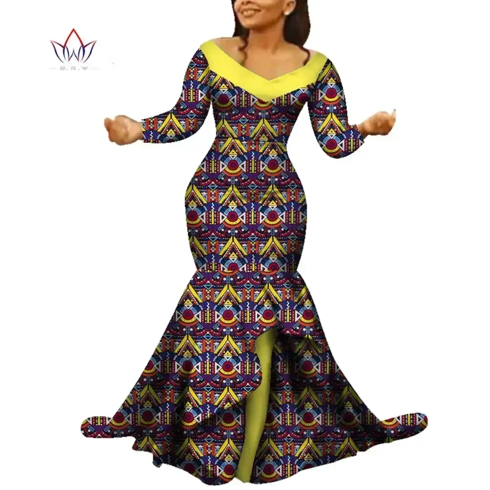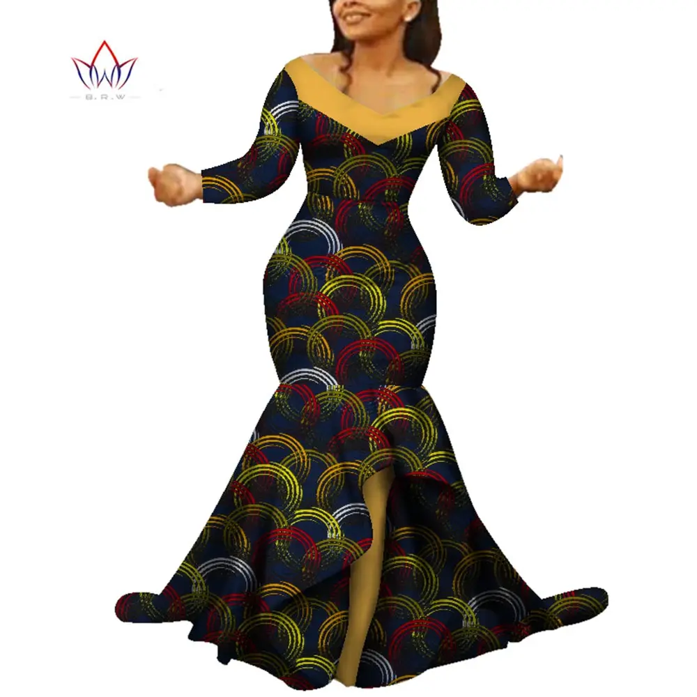 New Dashiki African Print Dresses Bazin Long Fishtail Dress for Wedding Party Vestidos African Dresses for Women WY5759