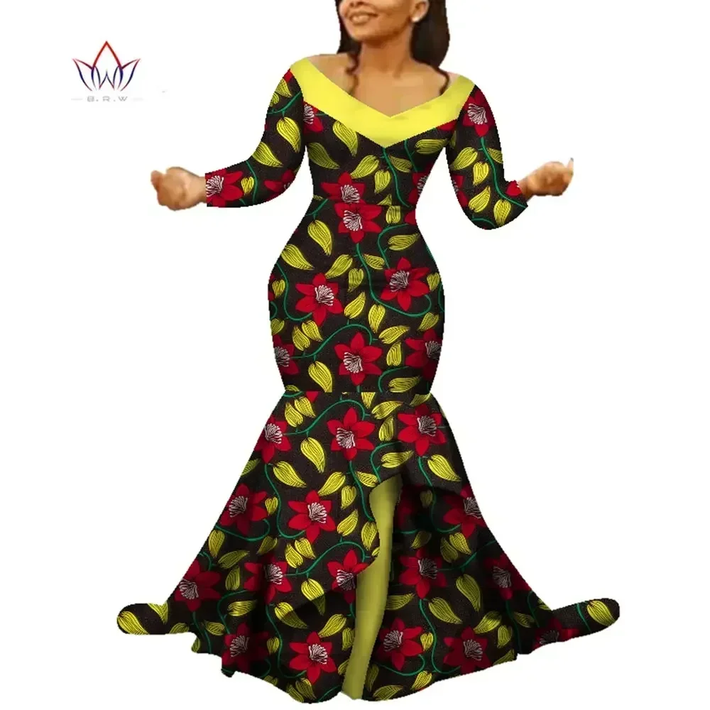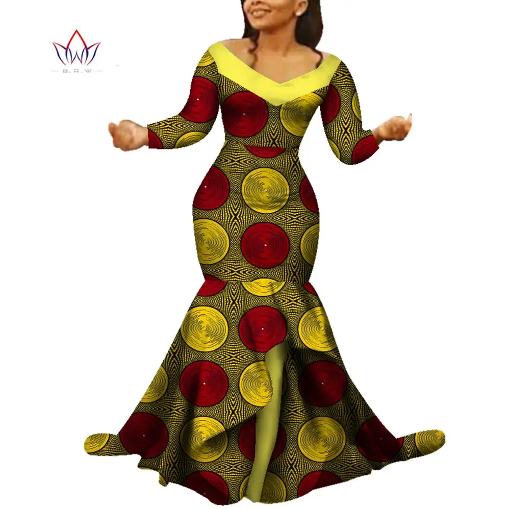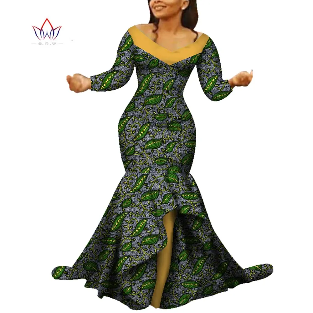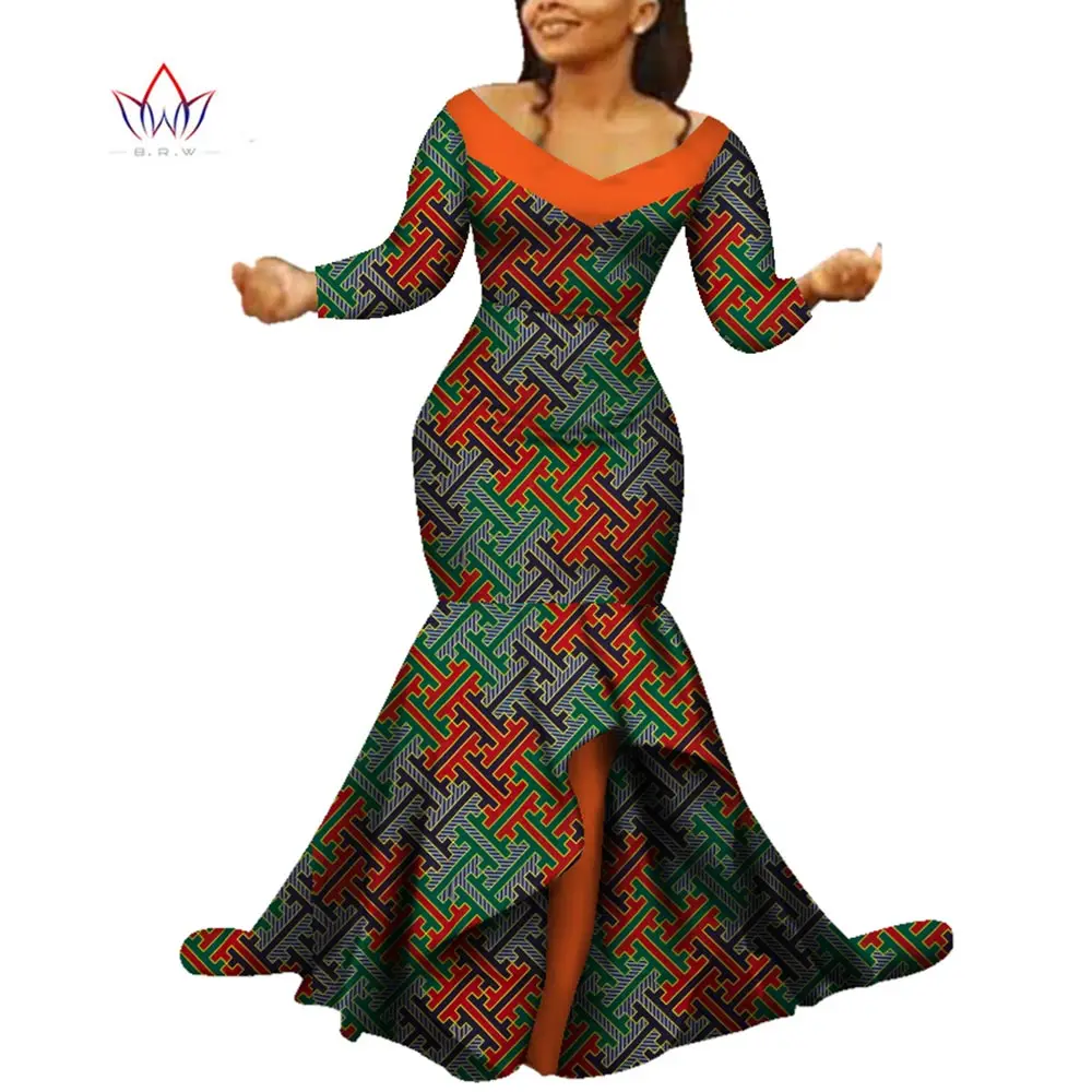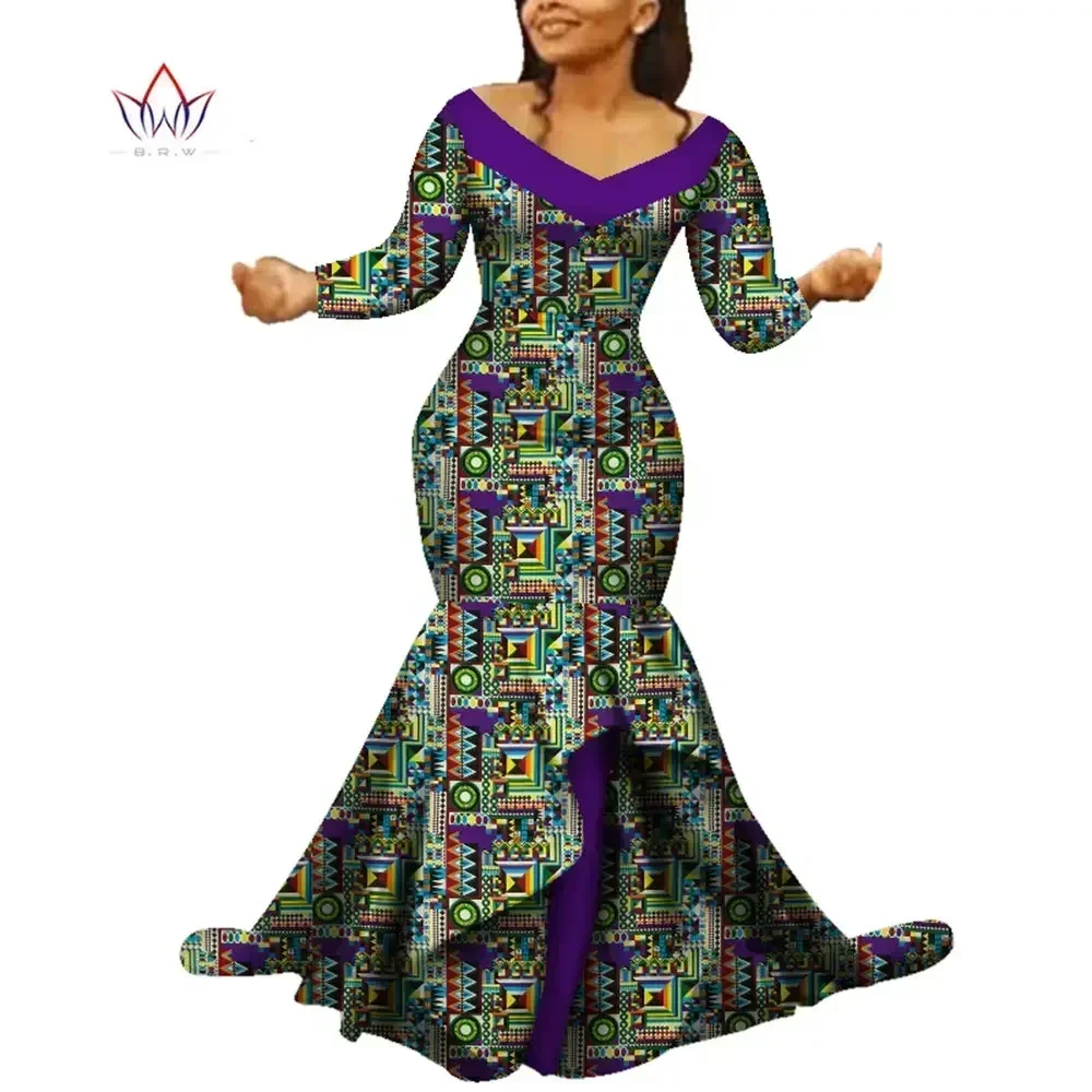 New Dashiki African Print Dresses Bazin Long Fishtail Dress for Wedding Party Vestidos African Dresses for Women WY5759