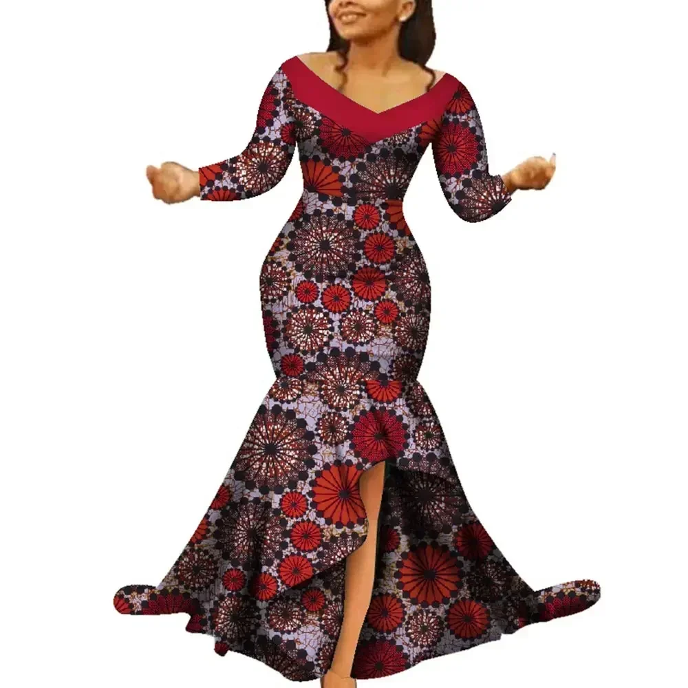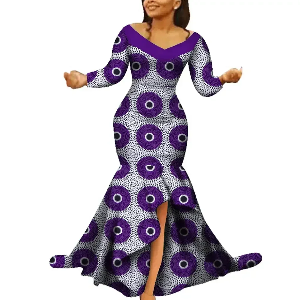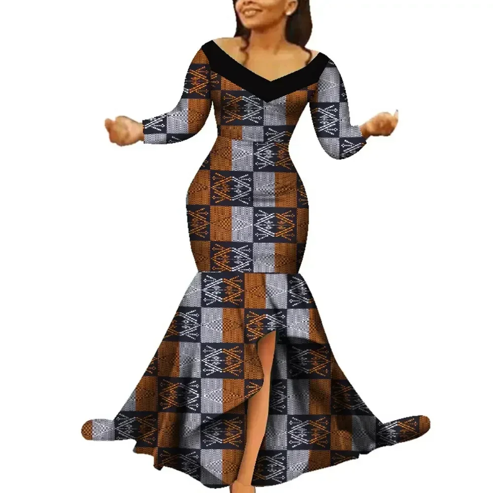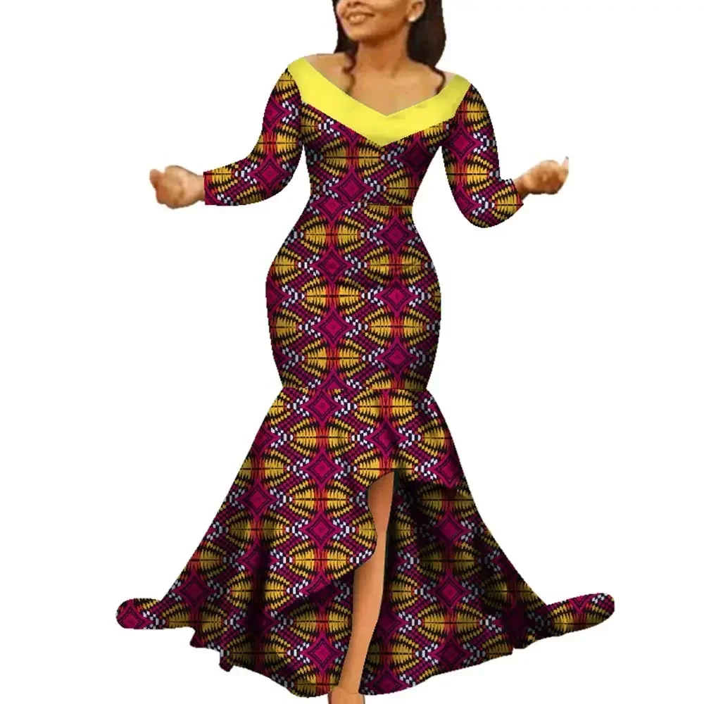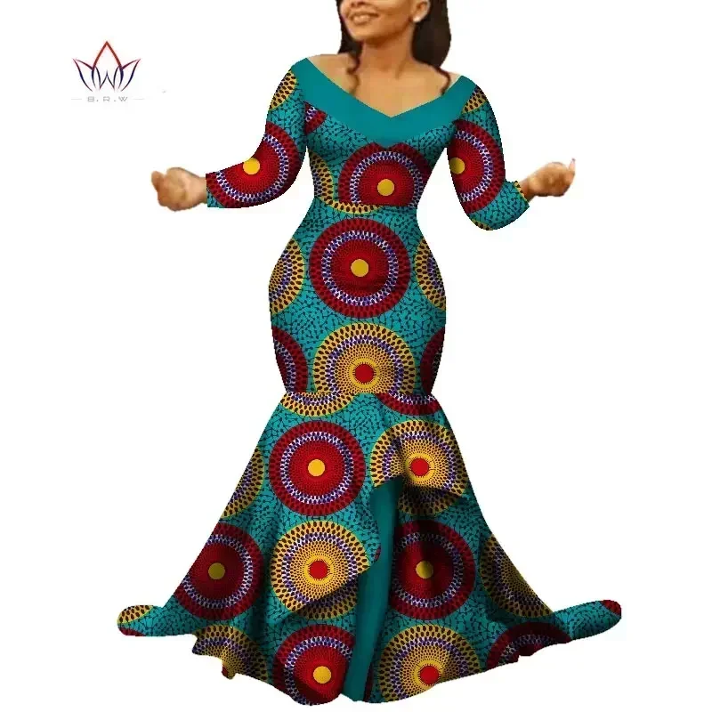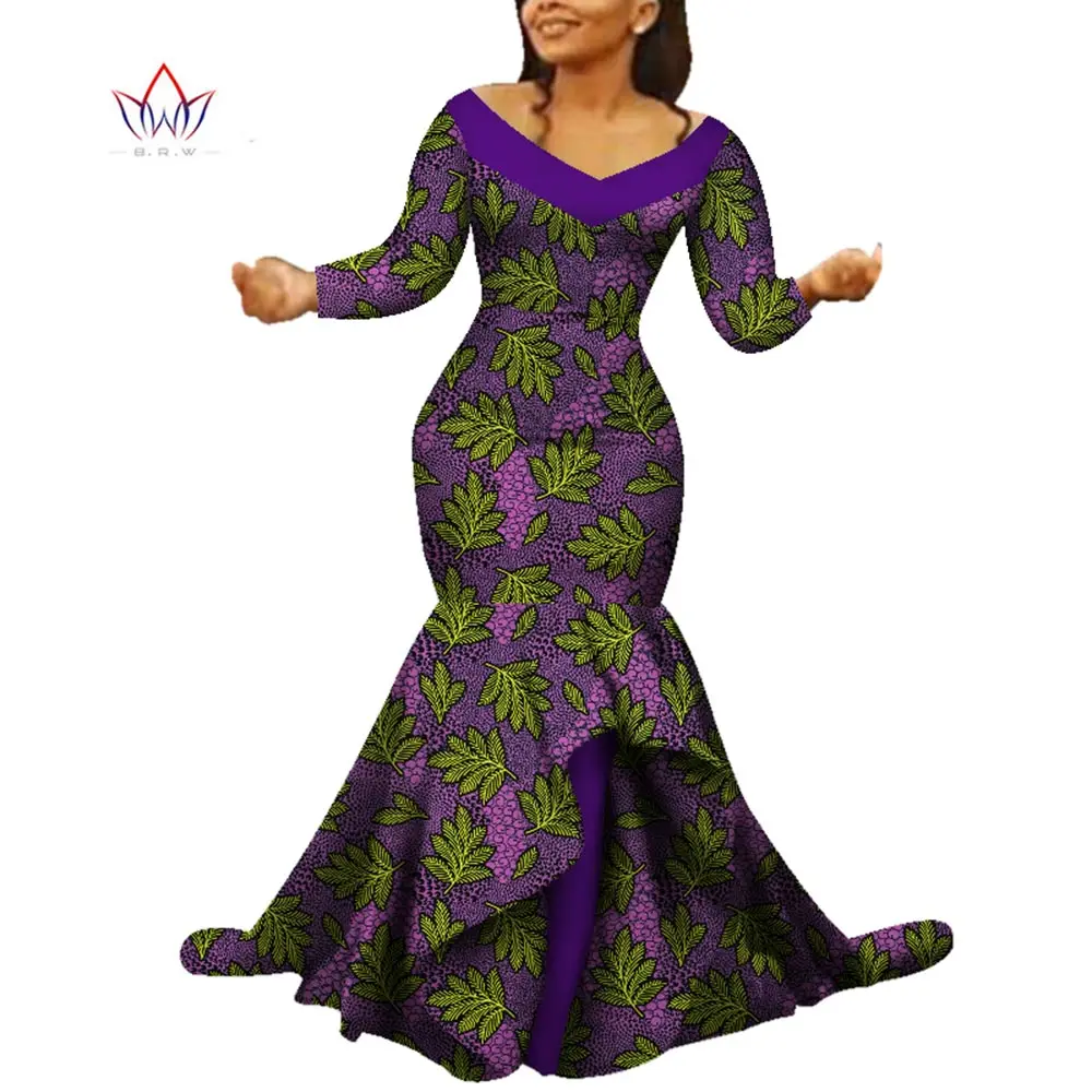New Dashiki African Print Dresses Bazin Long Fishtail Dress for Wedding Party Vestidos African Dresses for Women WY5759
