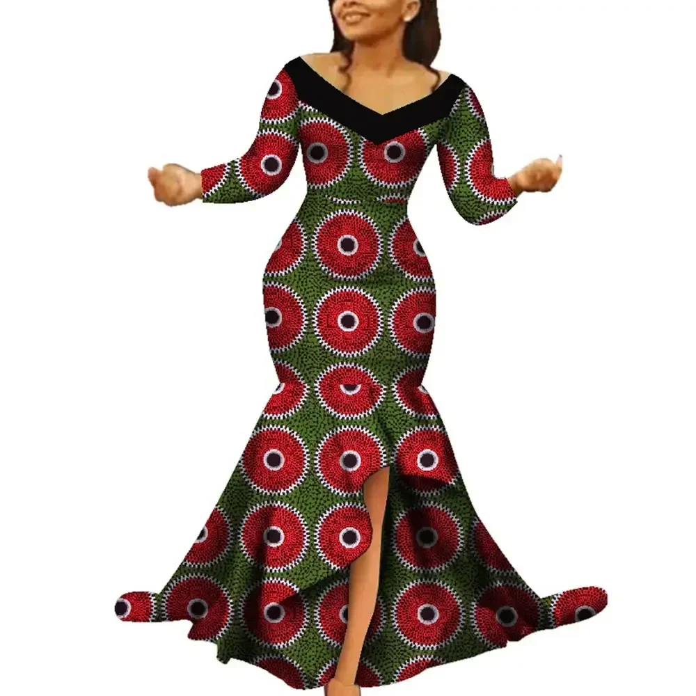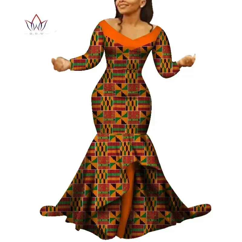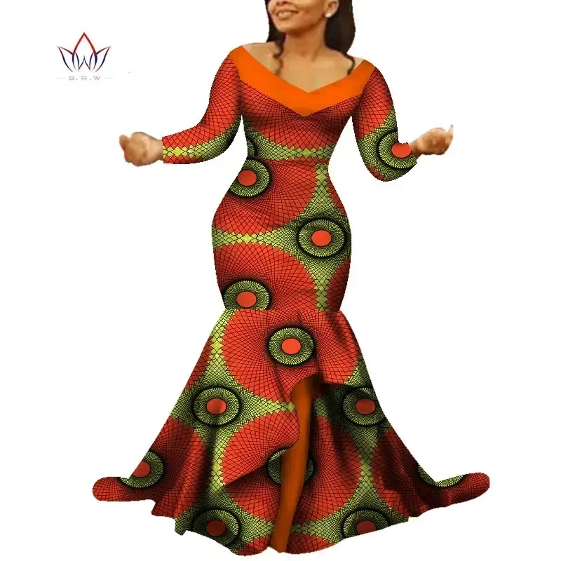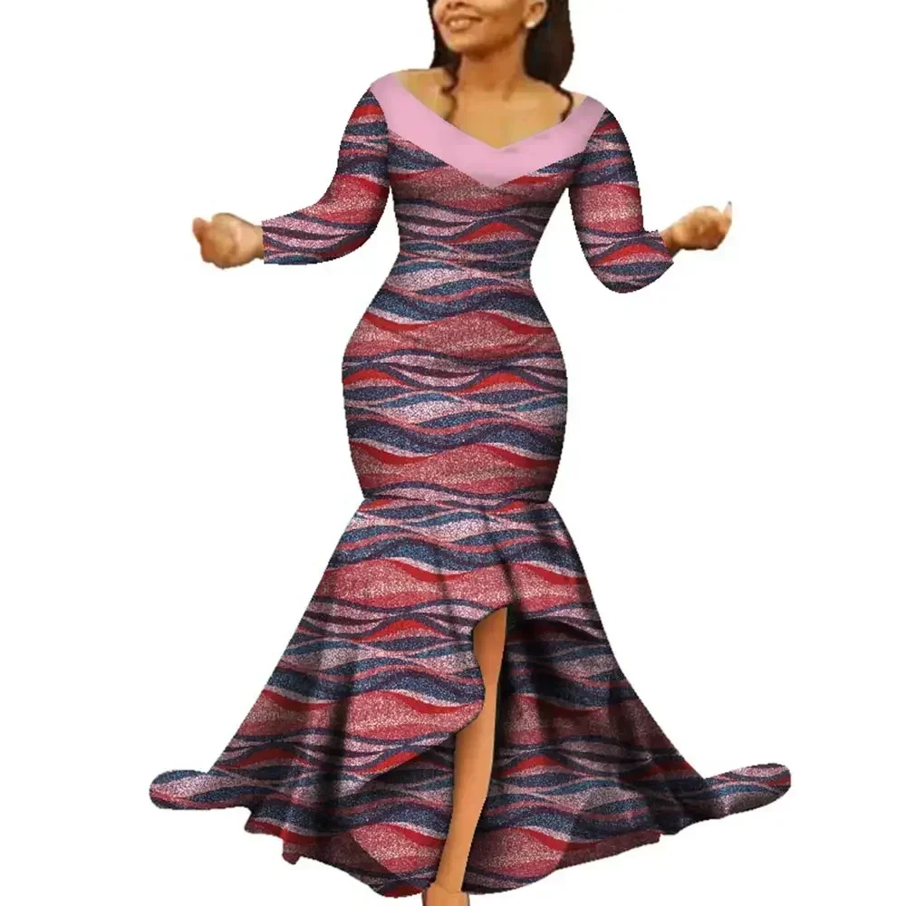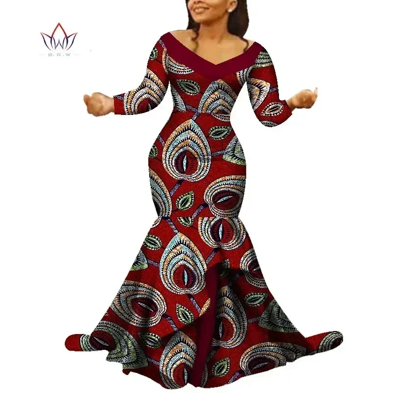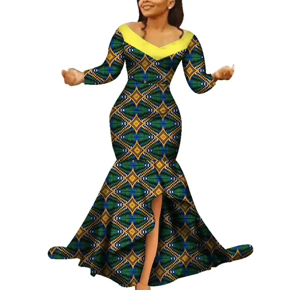 New Dashiki African Print Dresses Bazin Long Fishtail Dress for Wedding Party Vestidos African Dresses for Women WY5759