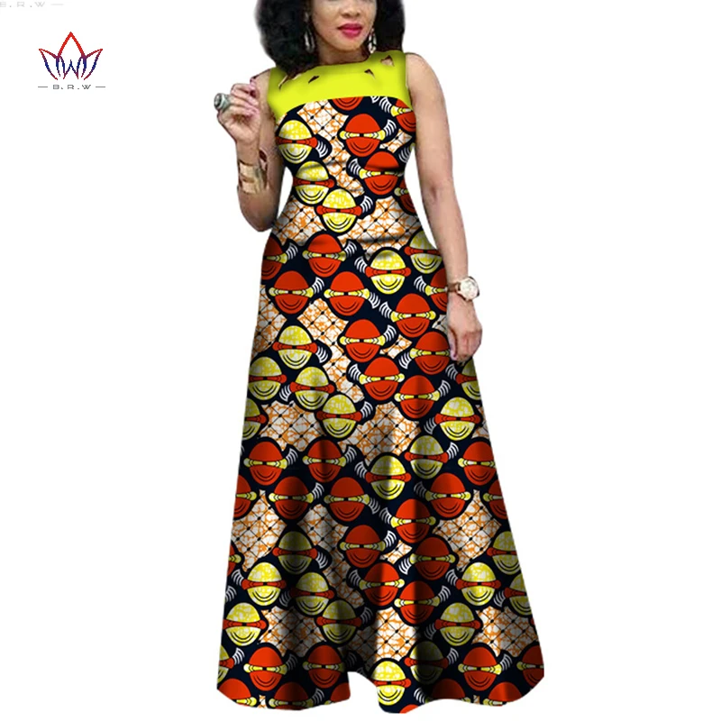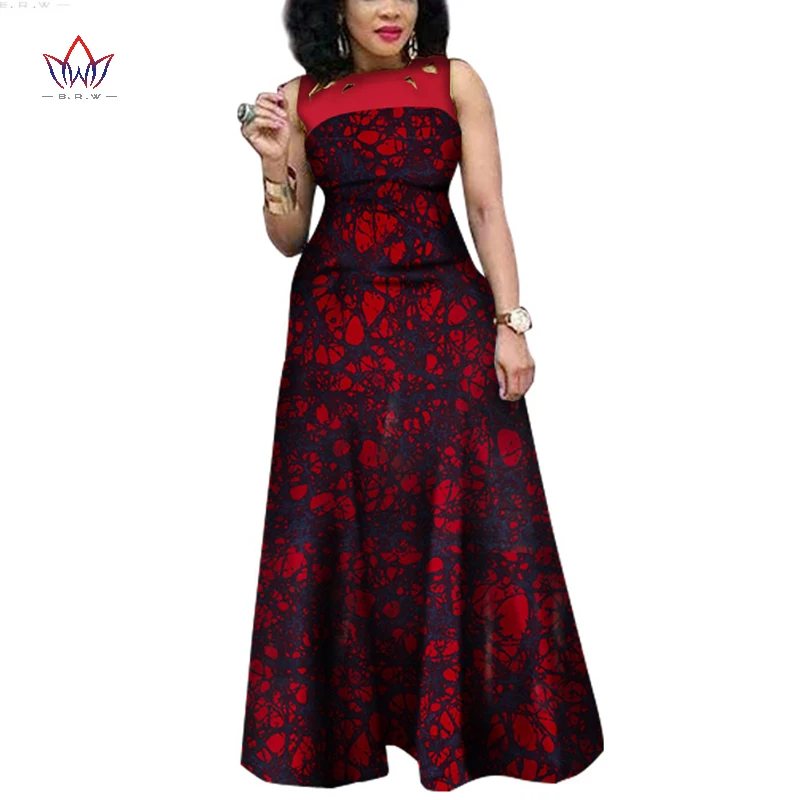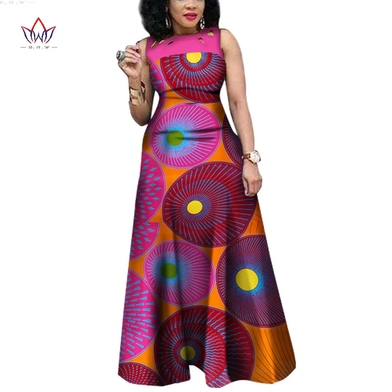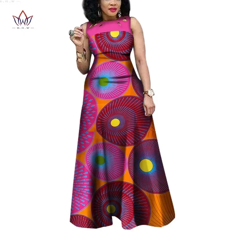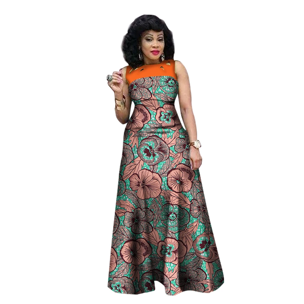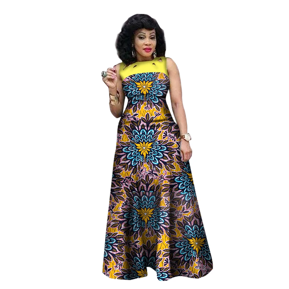 New Style Summer African Dresses for Women 2021 African Print Clothing Sleeveless Sexy Maxi Dress Plus Size BRW WY1341
