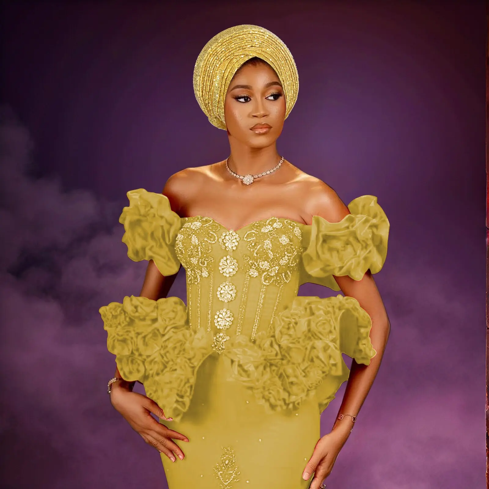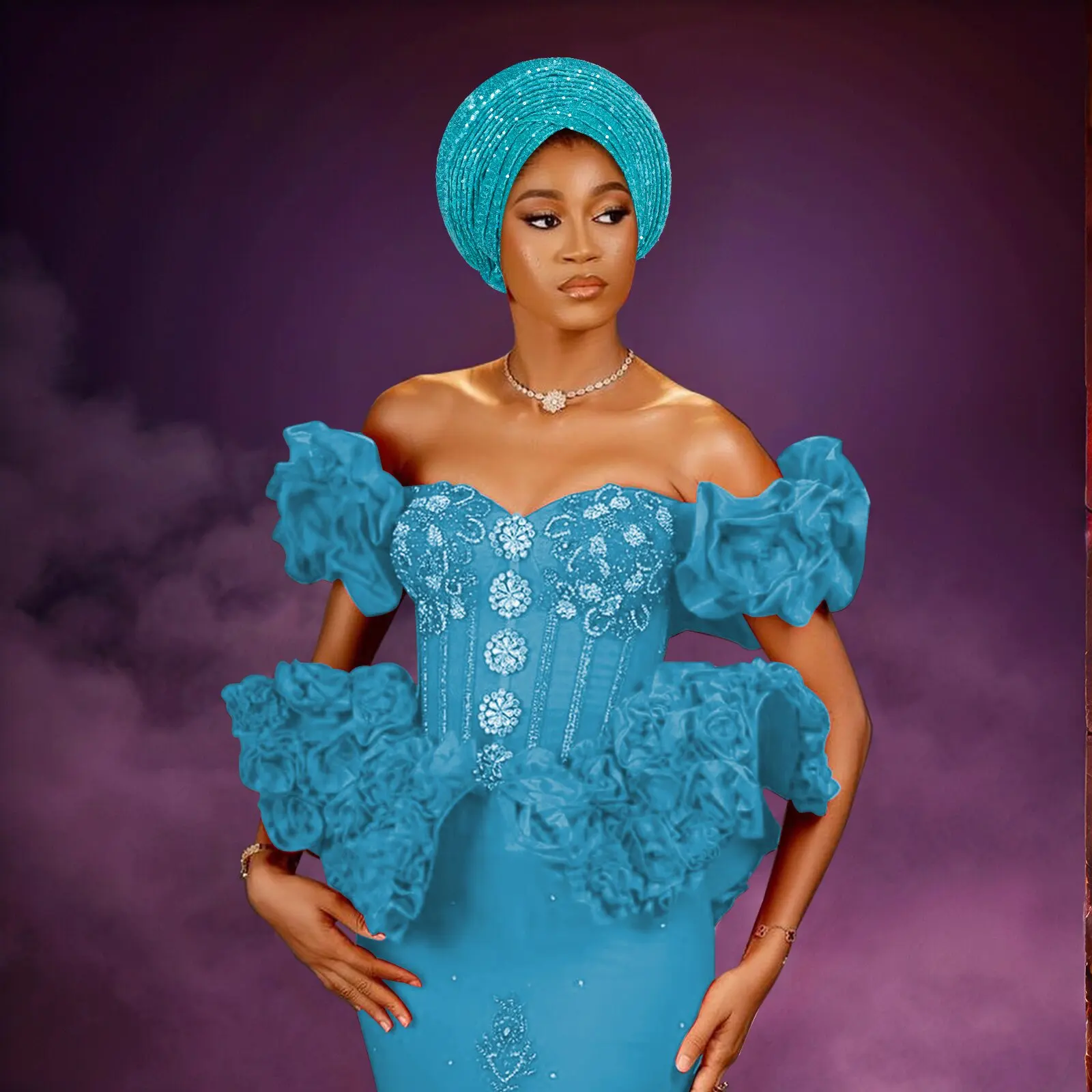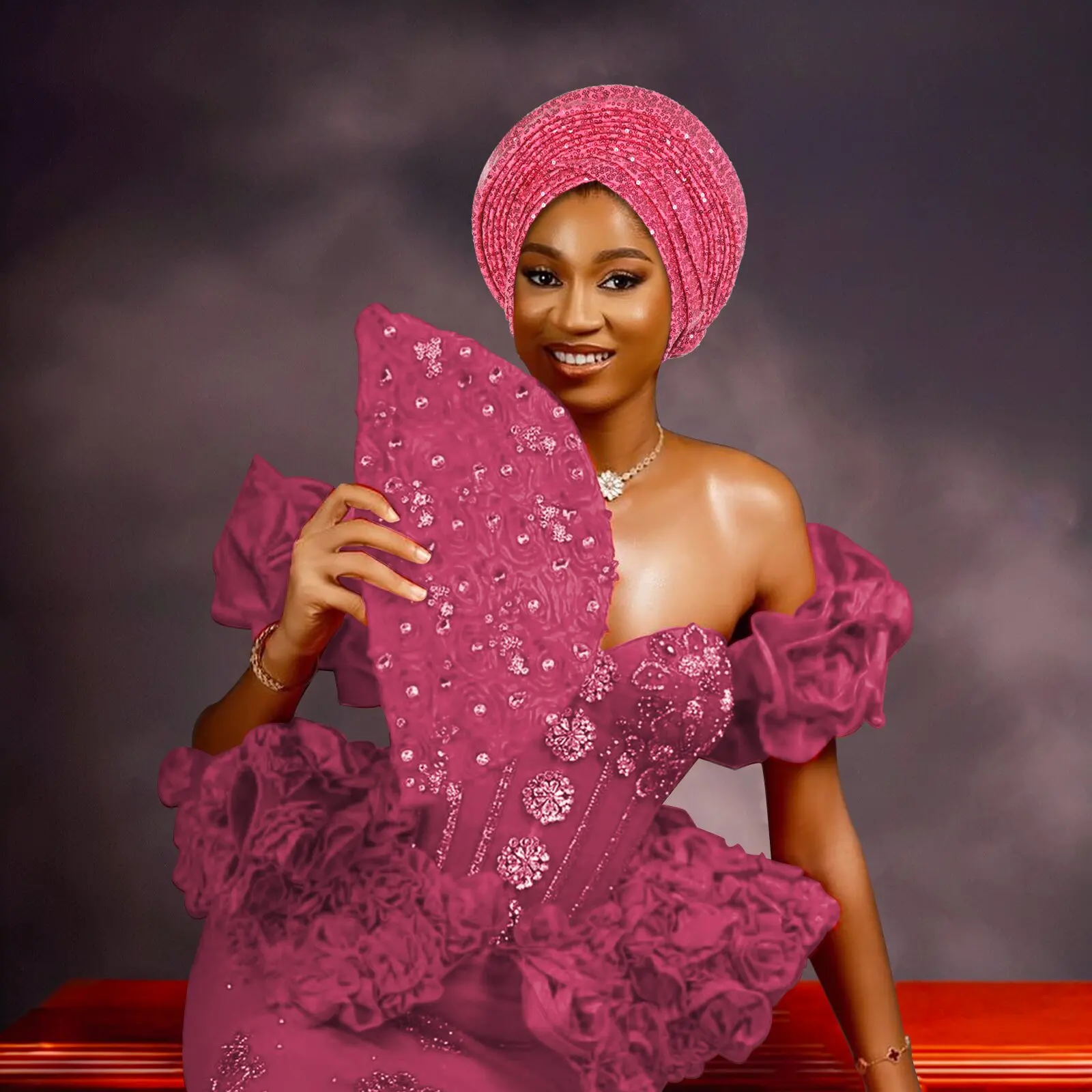 Nigerian Wedding Geles African Headtie Auto Gele Turbans for Women Aso Oke Fabric Muslim Headwear Headpiece Female Head Wraps