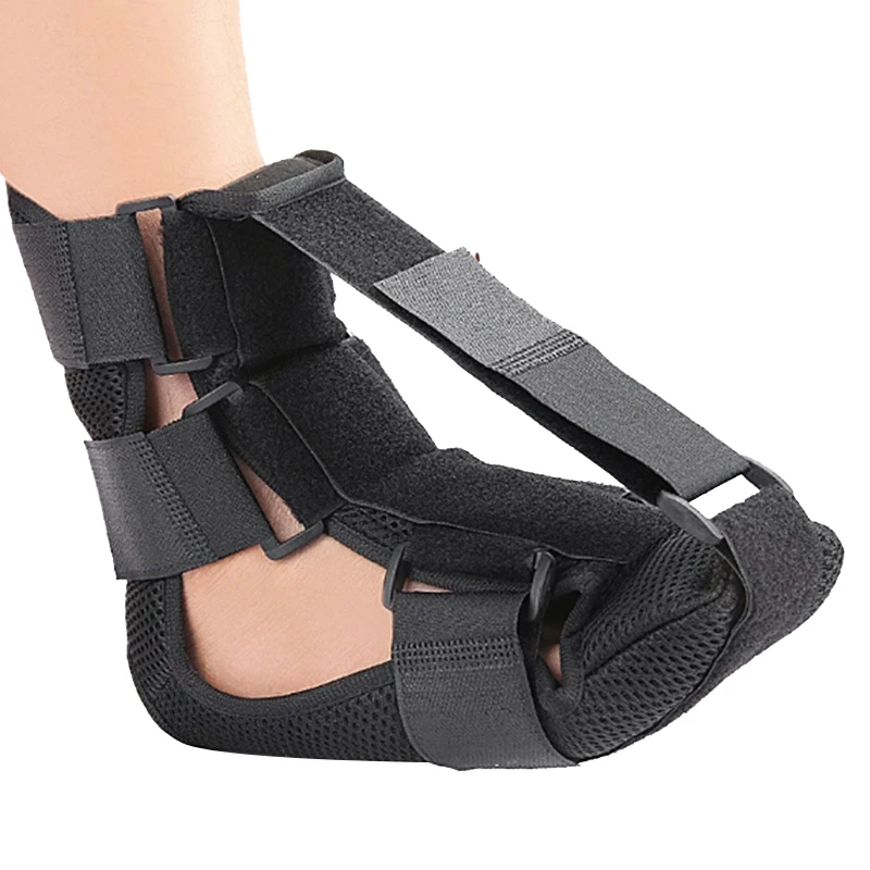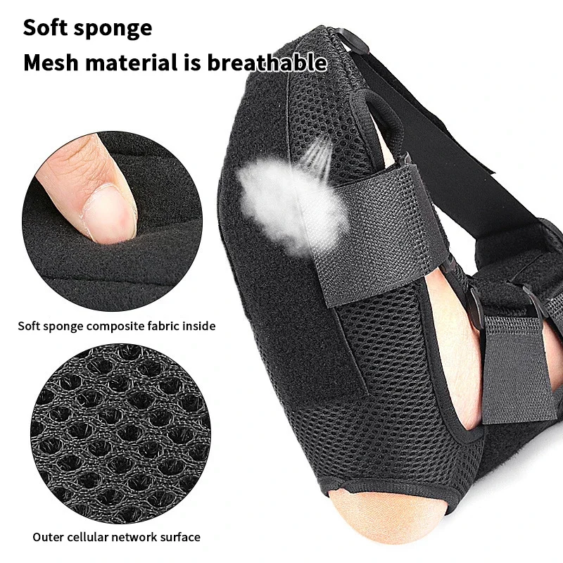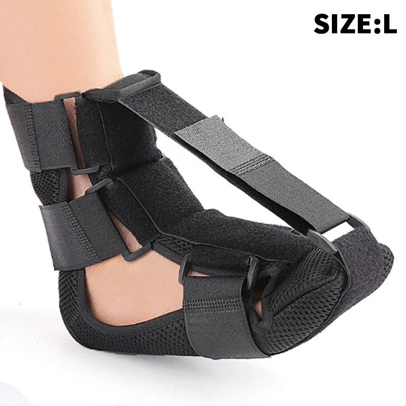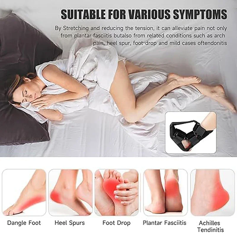 1,Tailored Relief Solution:Tailored for plantar fasciitis relief, this night splint features segmented adjustable support with triple plastic buckles for personalized comfort and stability during sleep.