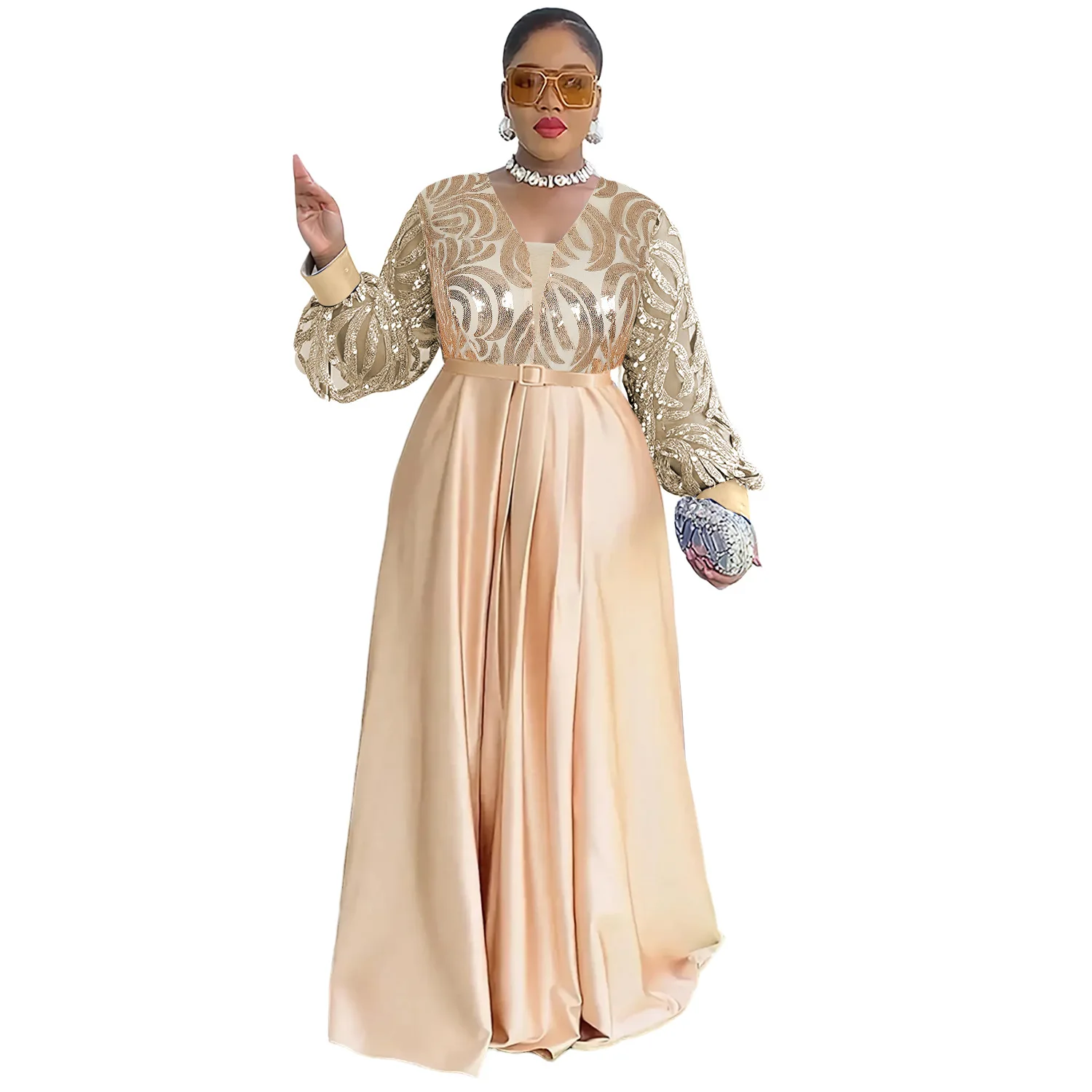 Plus Size African Party Dresses for Women Dashiki Ankara Sequin Wedding Christmas Evening Gown Elegant Muslim Maxi Dress 2025