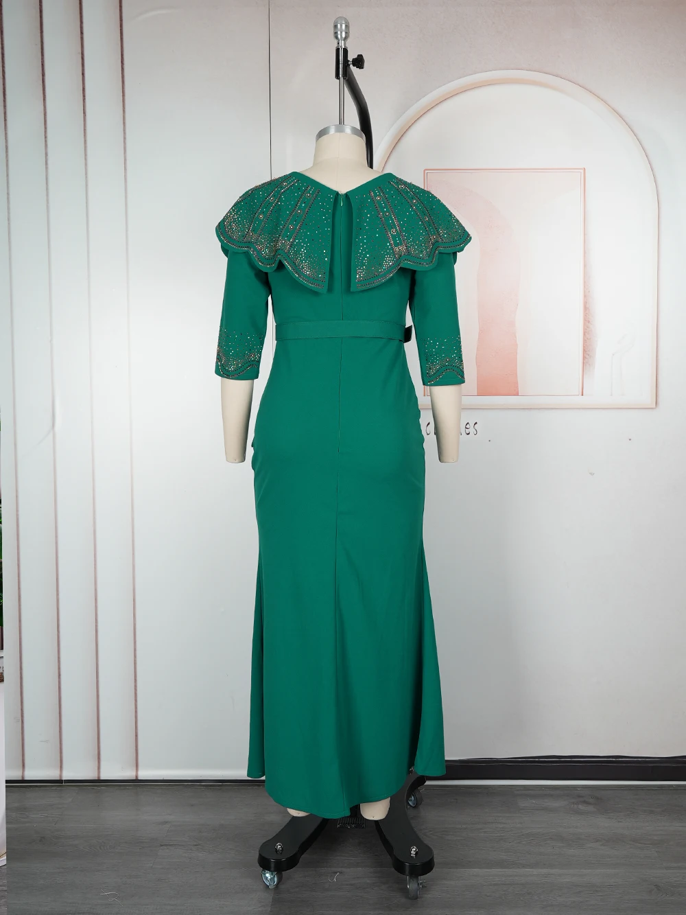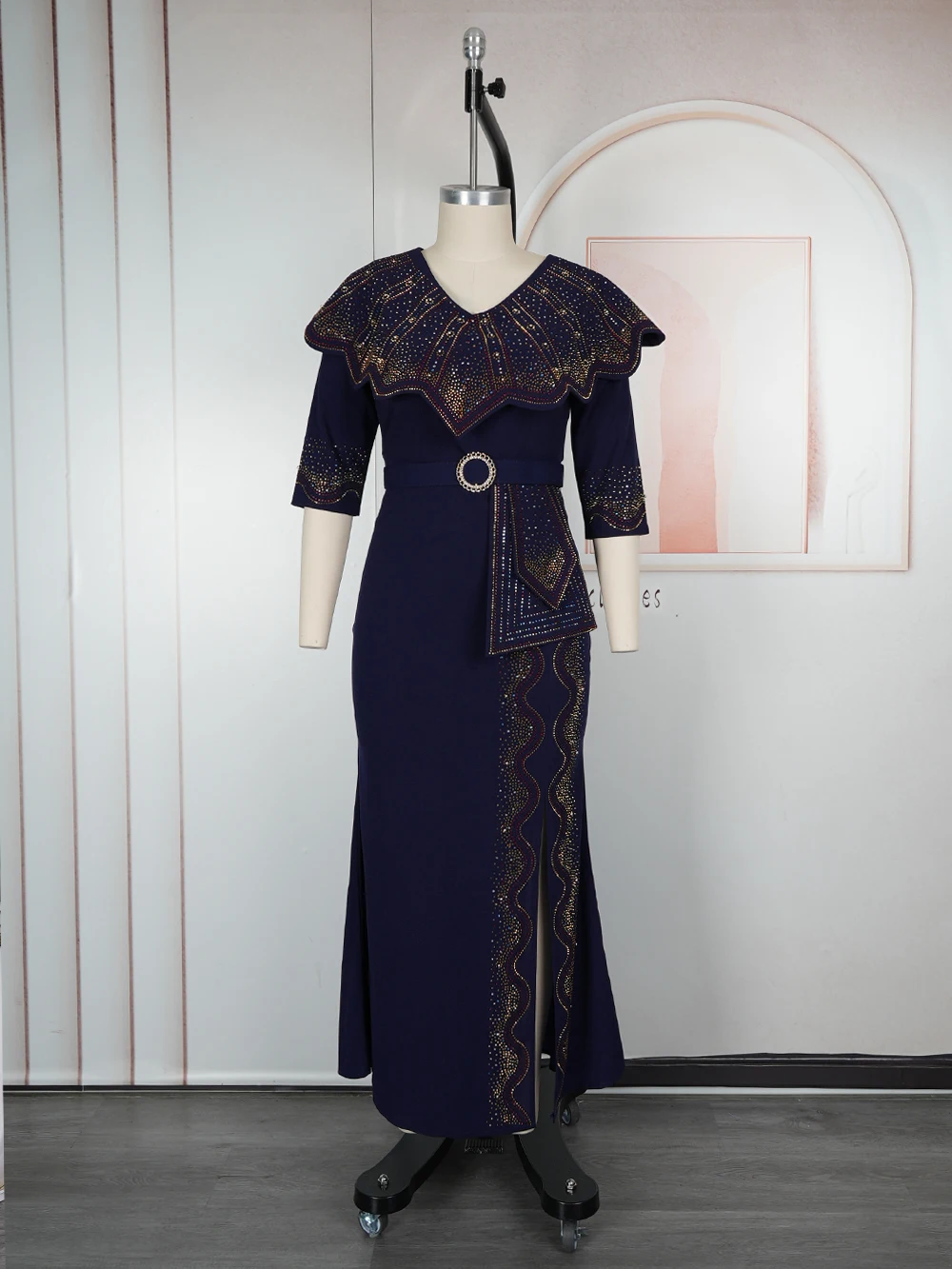 Plus Size African Party Dresses for Women Dashiki Diamond Bodycon Slit Long Dress Elegant Turkey Muslim Wedding Evening Gown