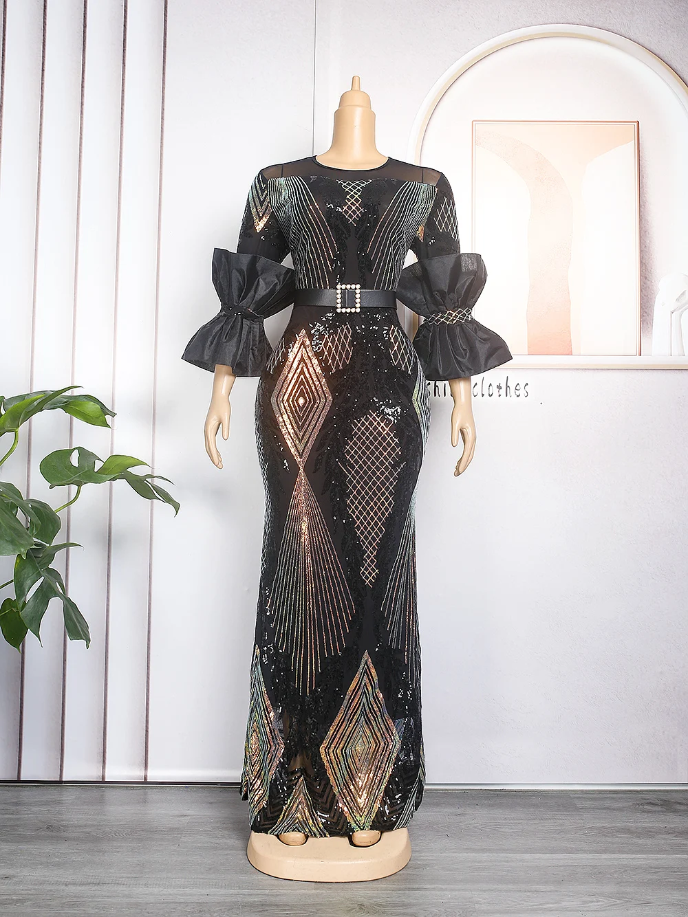 Plus Size Evening Dresses Women 2024 New Dashiki African Sequin Party Long Dress Ankara Robe Elegant Turkey Gown African Clothes