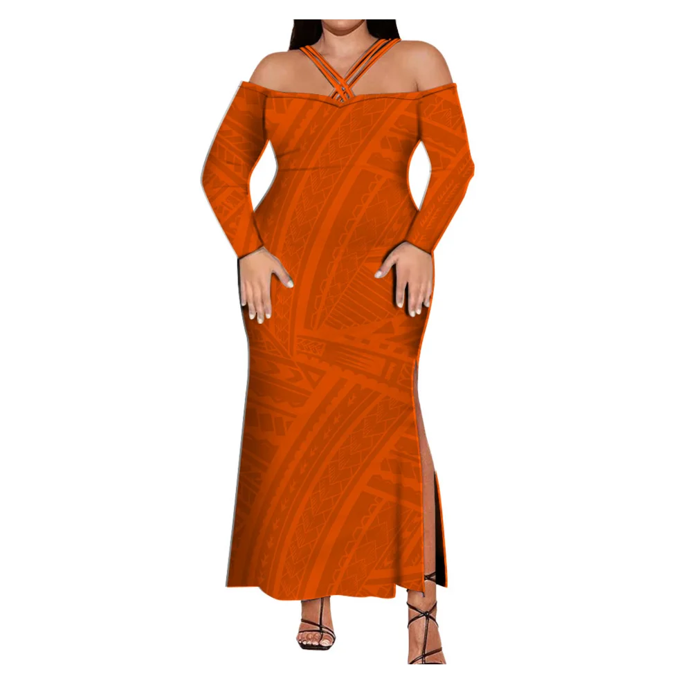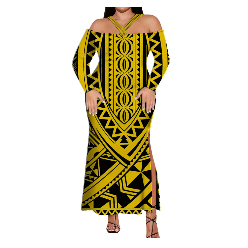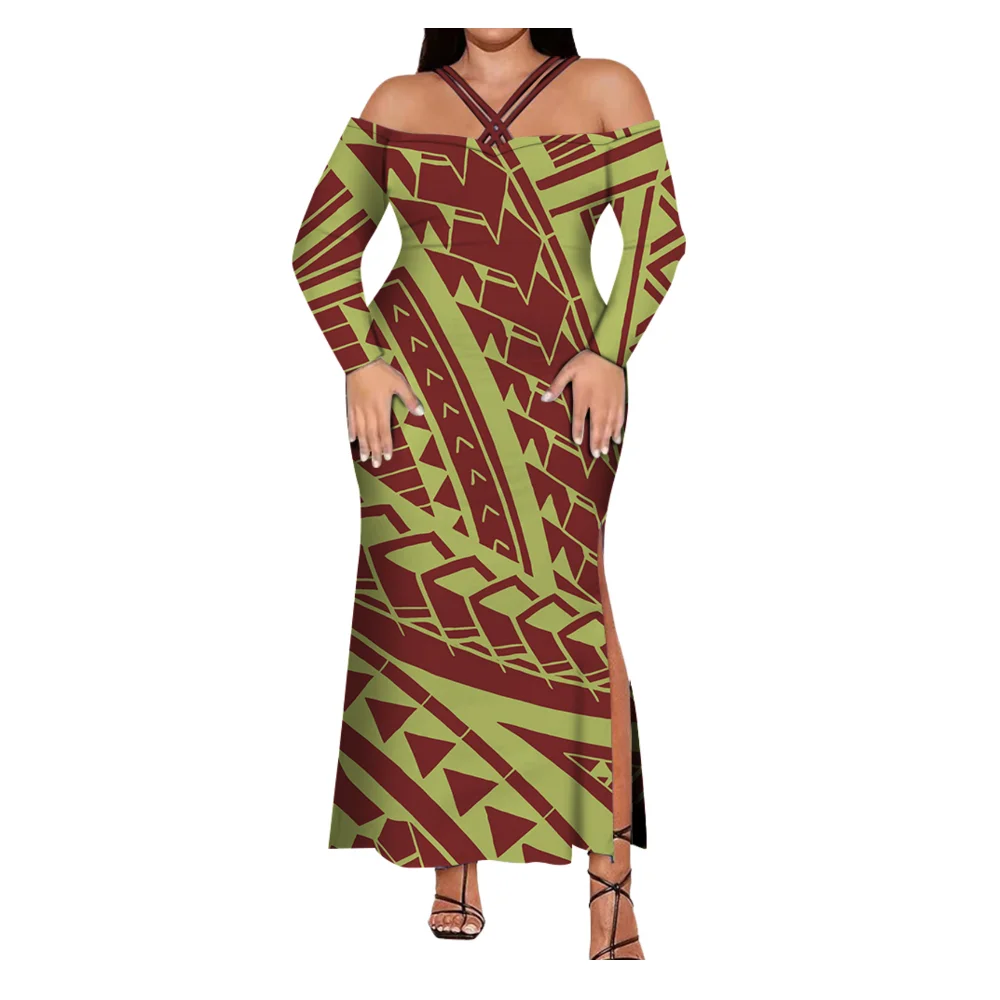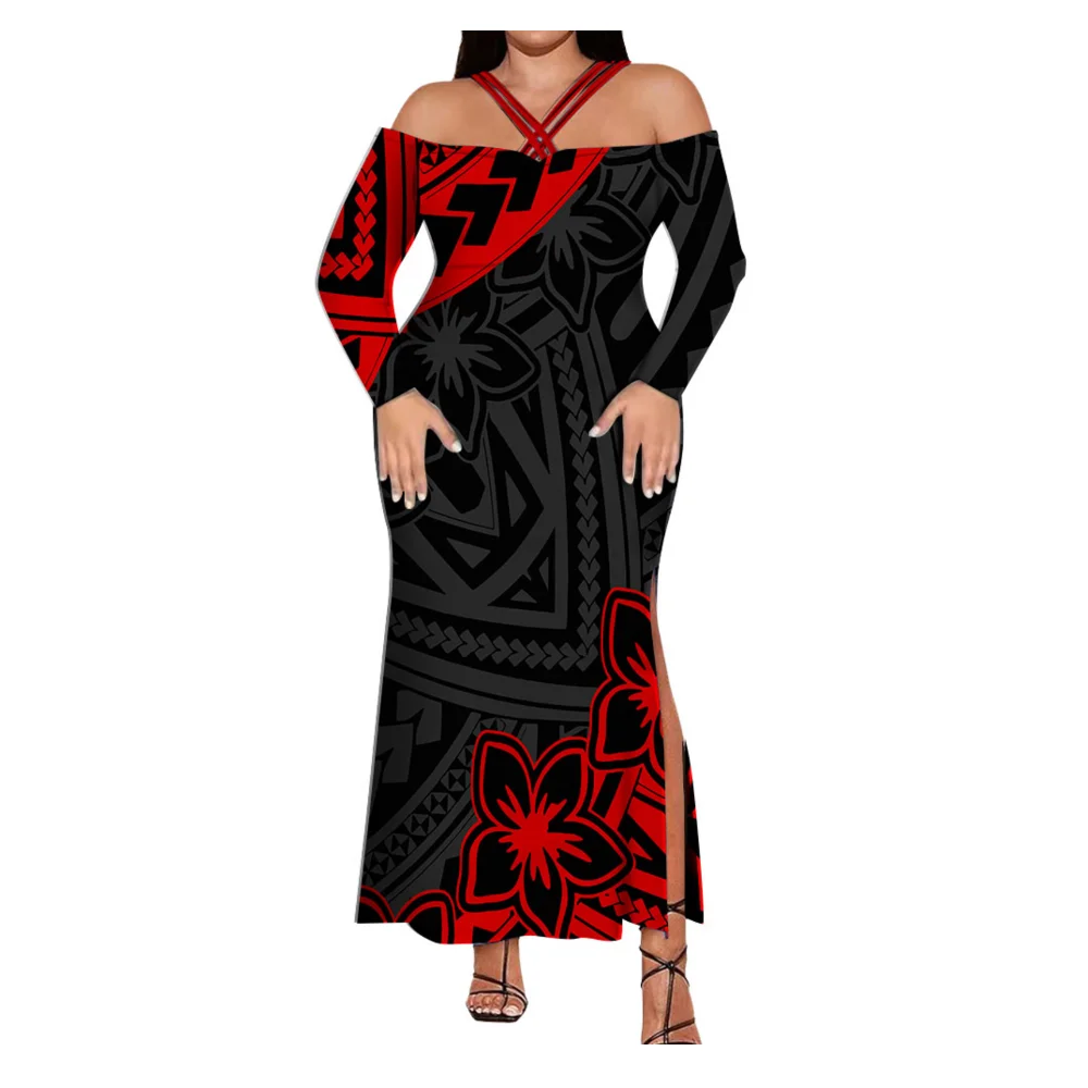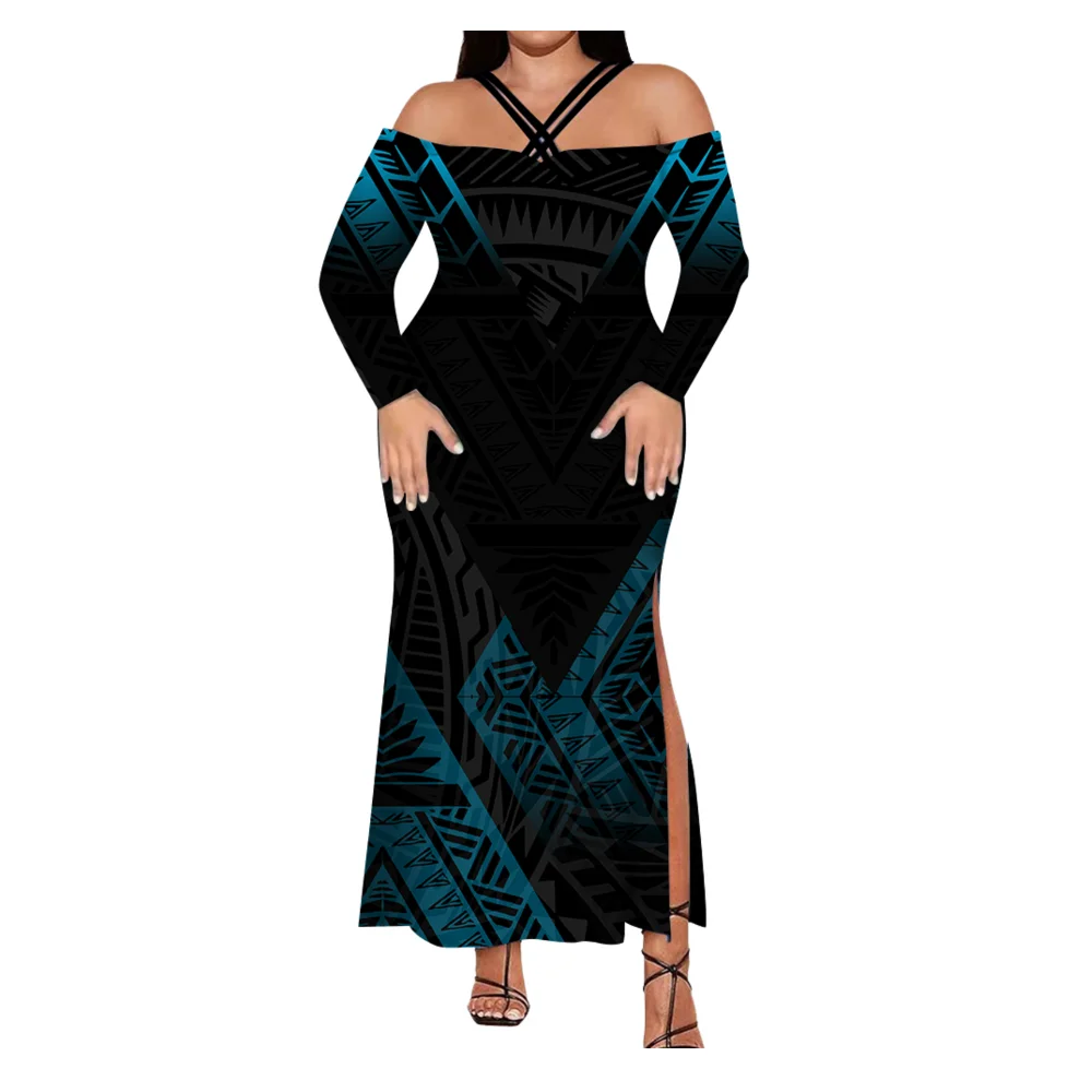 Polynesian Island Samoan-Style Women'S One-Shoulder Halter-Neck Dress Fashionable Tight Long Dress Cocktail Party Evening Dress