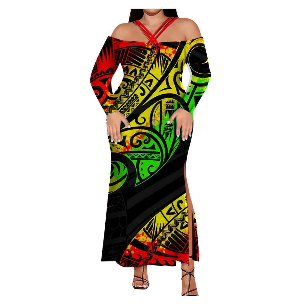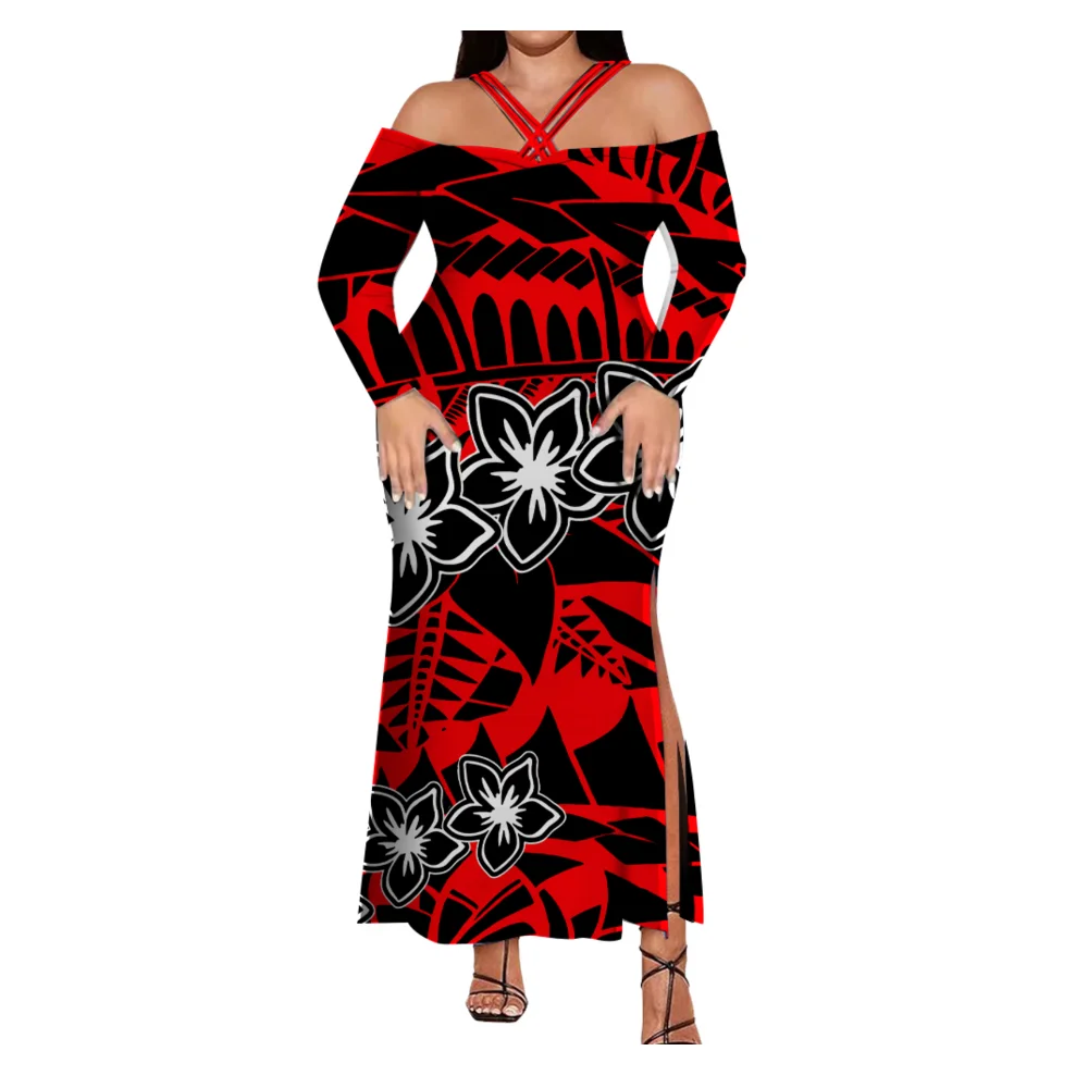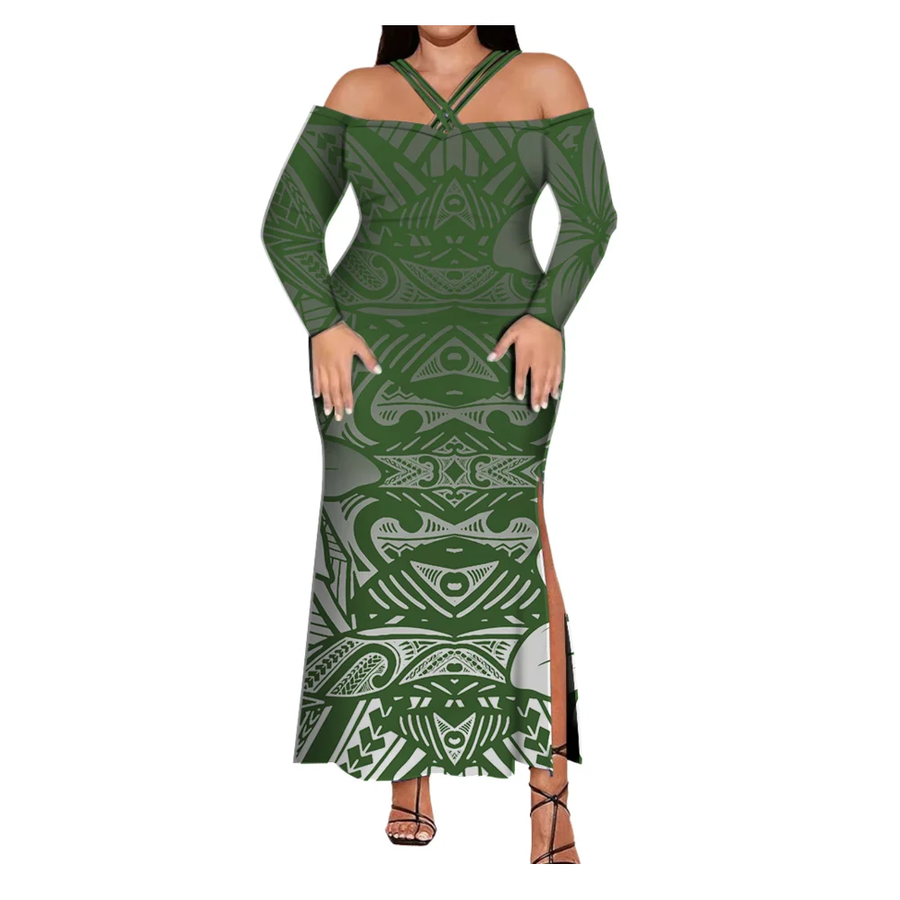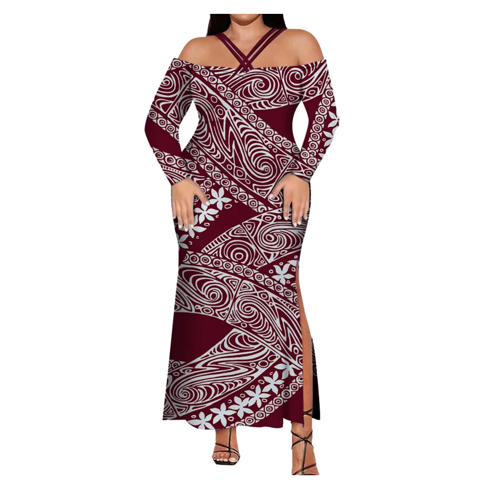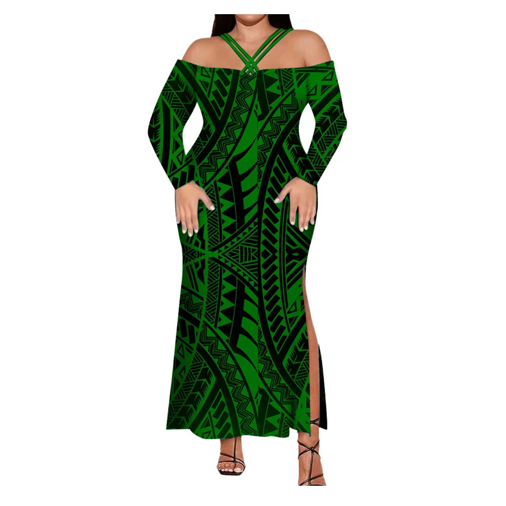 Polynesian Island Samoan-Style Women'S One-Shoulder Halter-Neck Dress Fashionable Tight Long Dress Cocktail Party Evening Dress