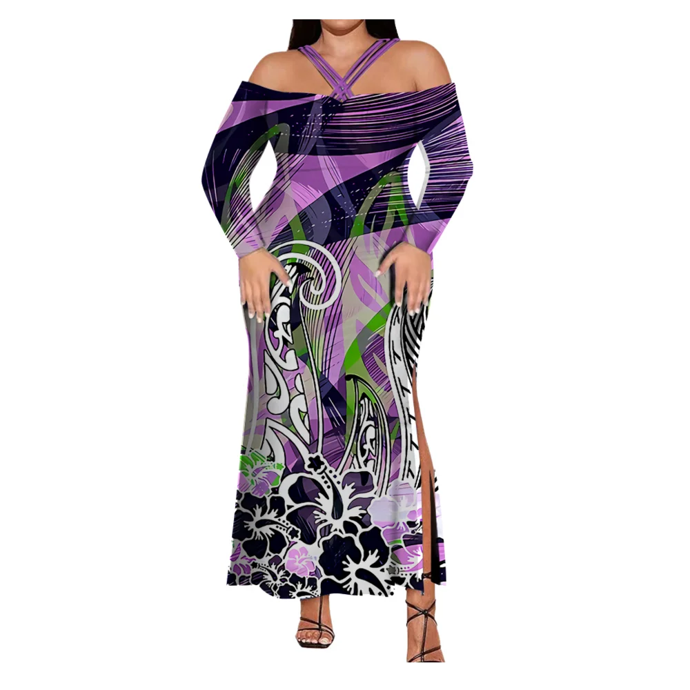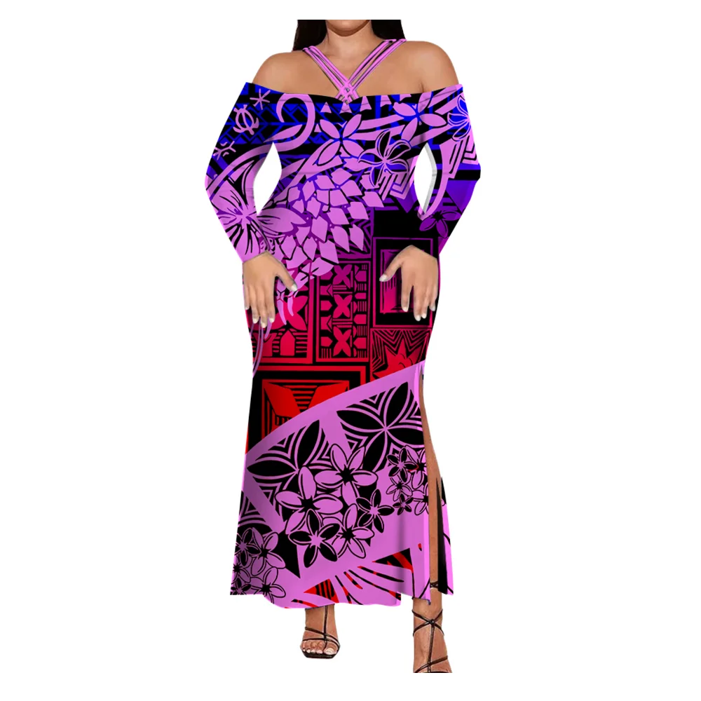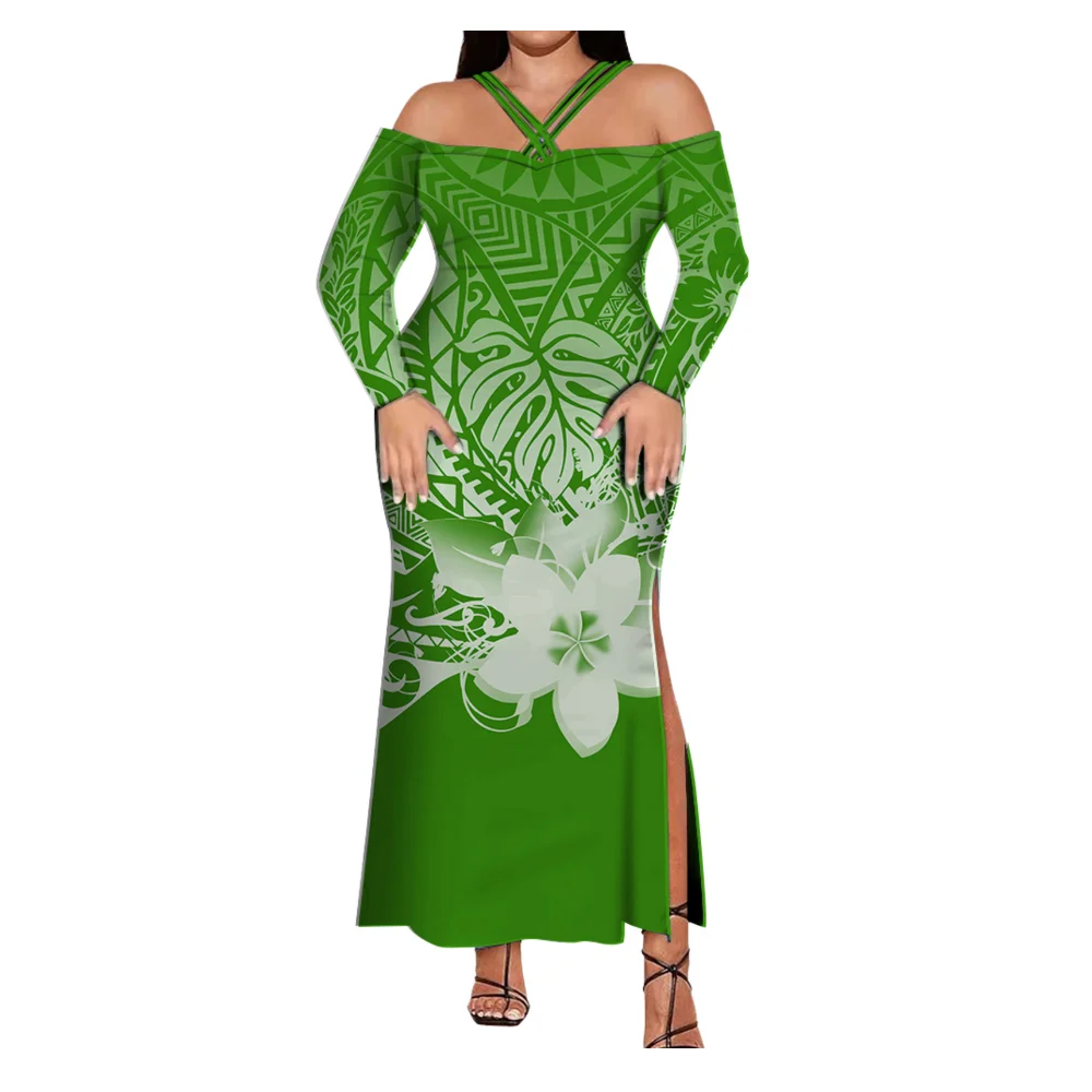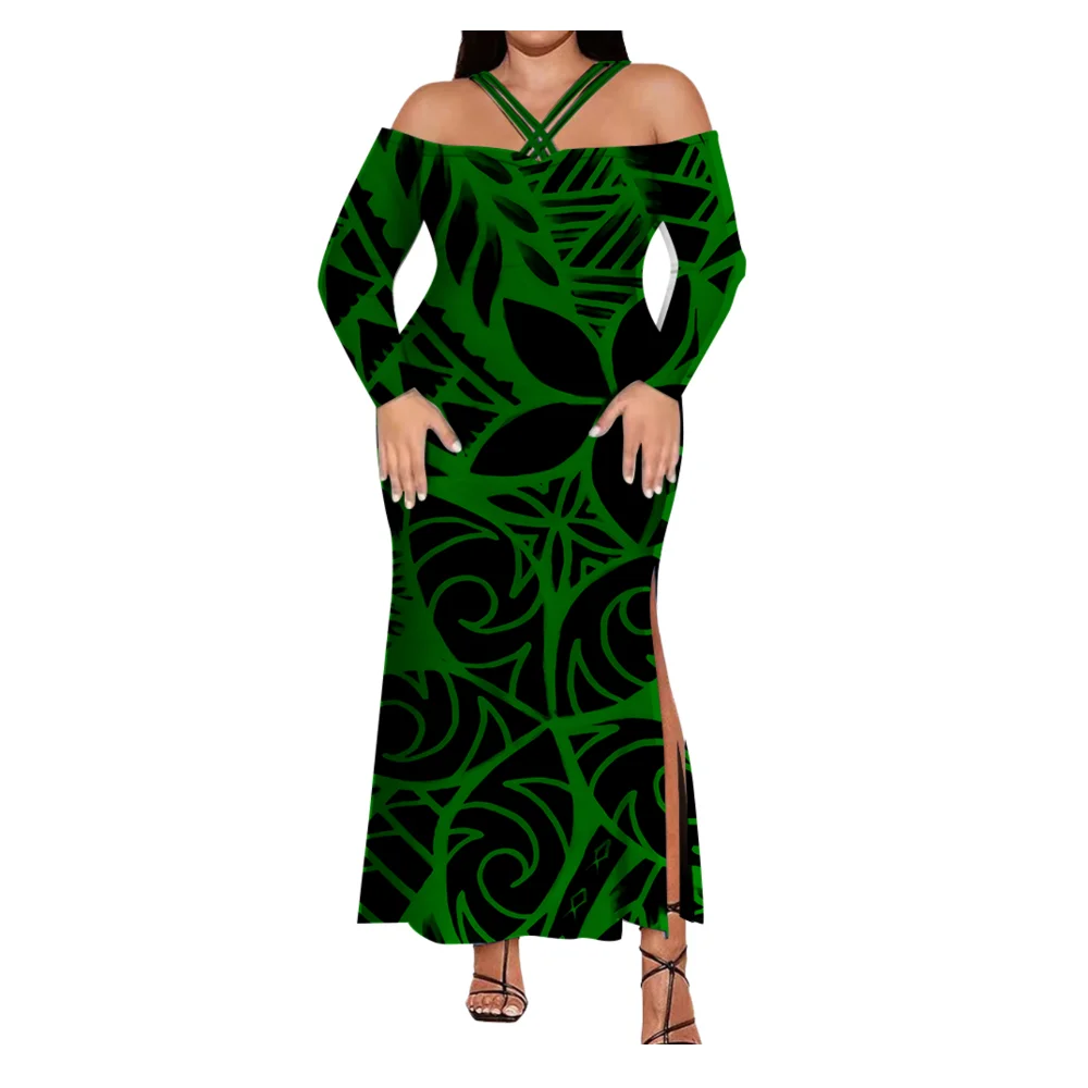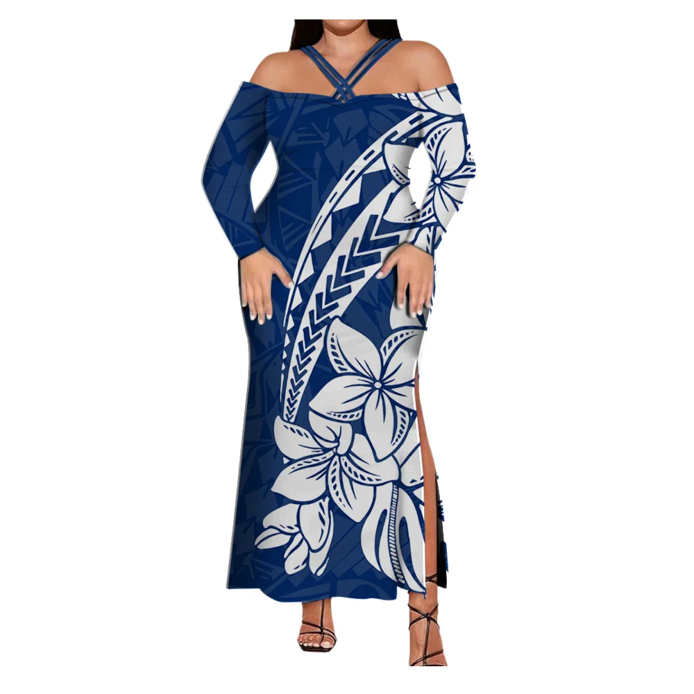 Polynesian Island Samoan-Style Women'S One-Shoulder Halter-Neck Dress Fashionable Tight Long Dress Cocktail Party Evening Dress