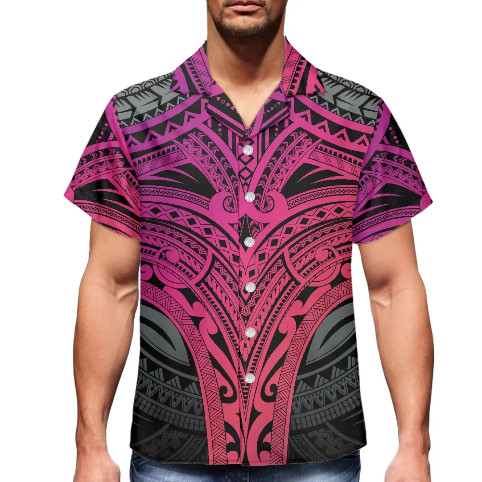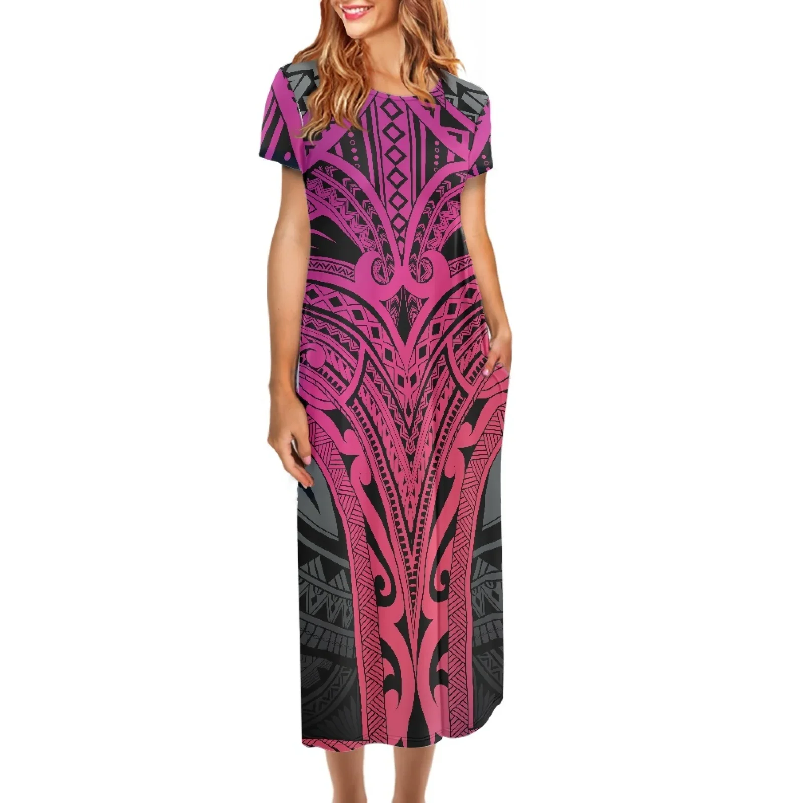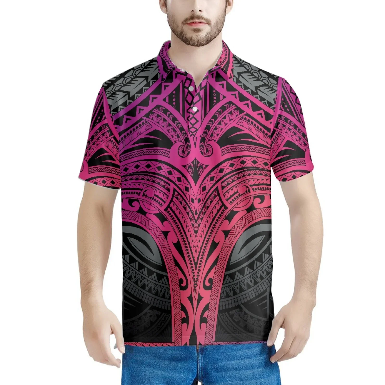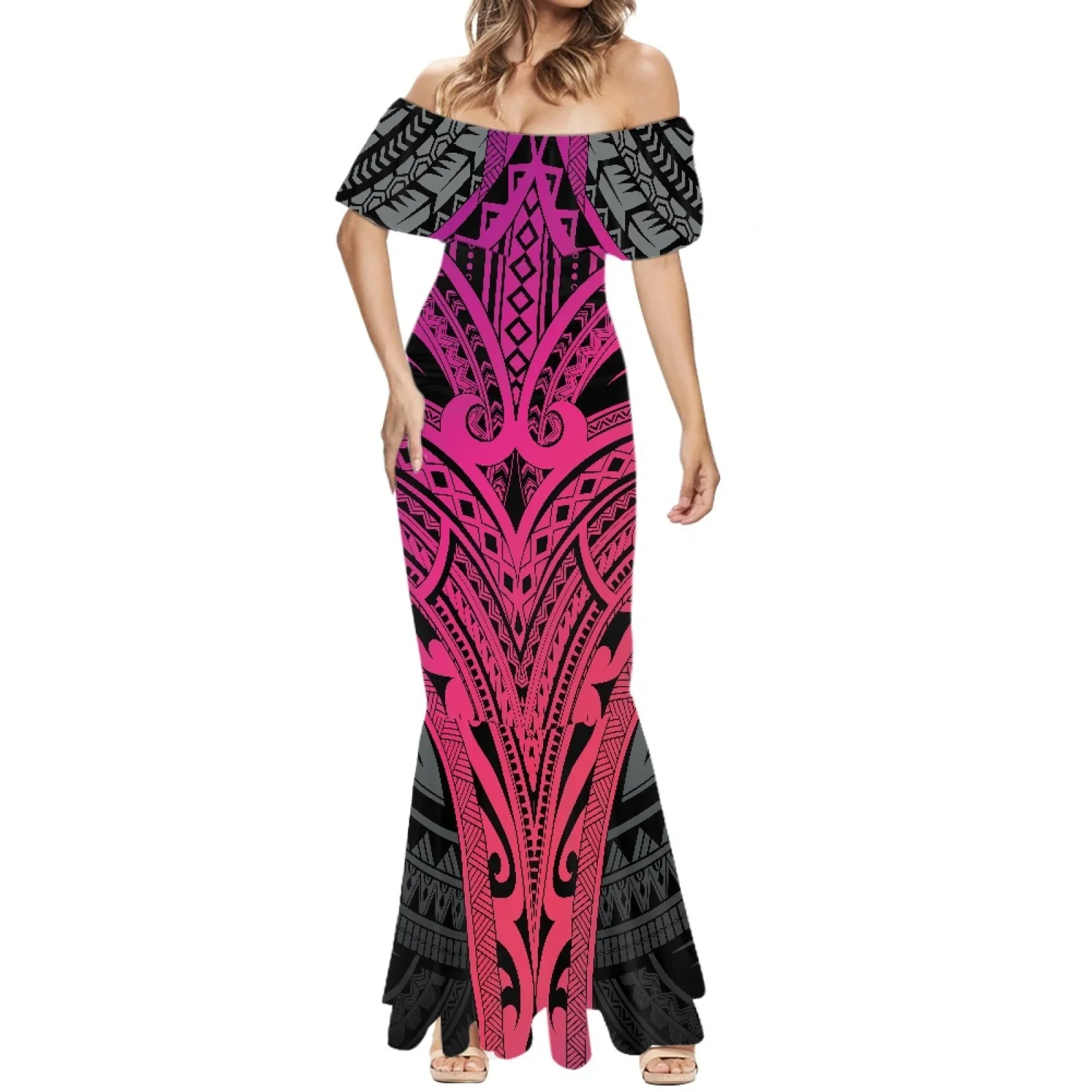 Polynesian Tonga Hawaii Fiji Guam Samoa Pohnpei Tribal Tattoo Prints Clothes Women Dress Matching Men Shirt Pink Lovers Clothes