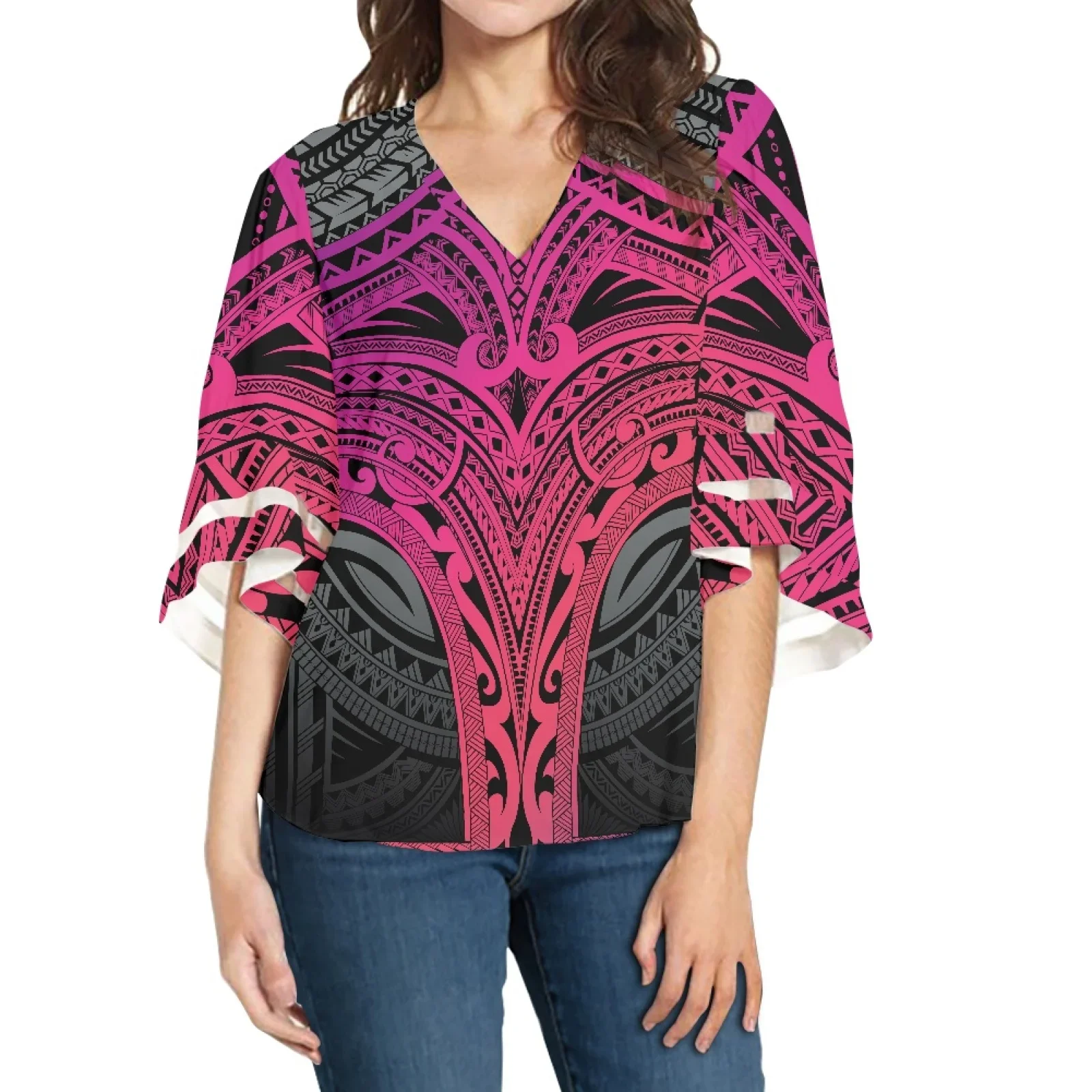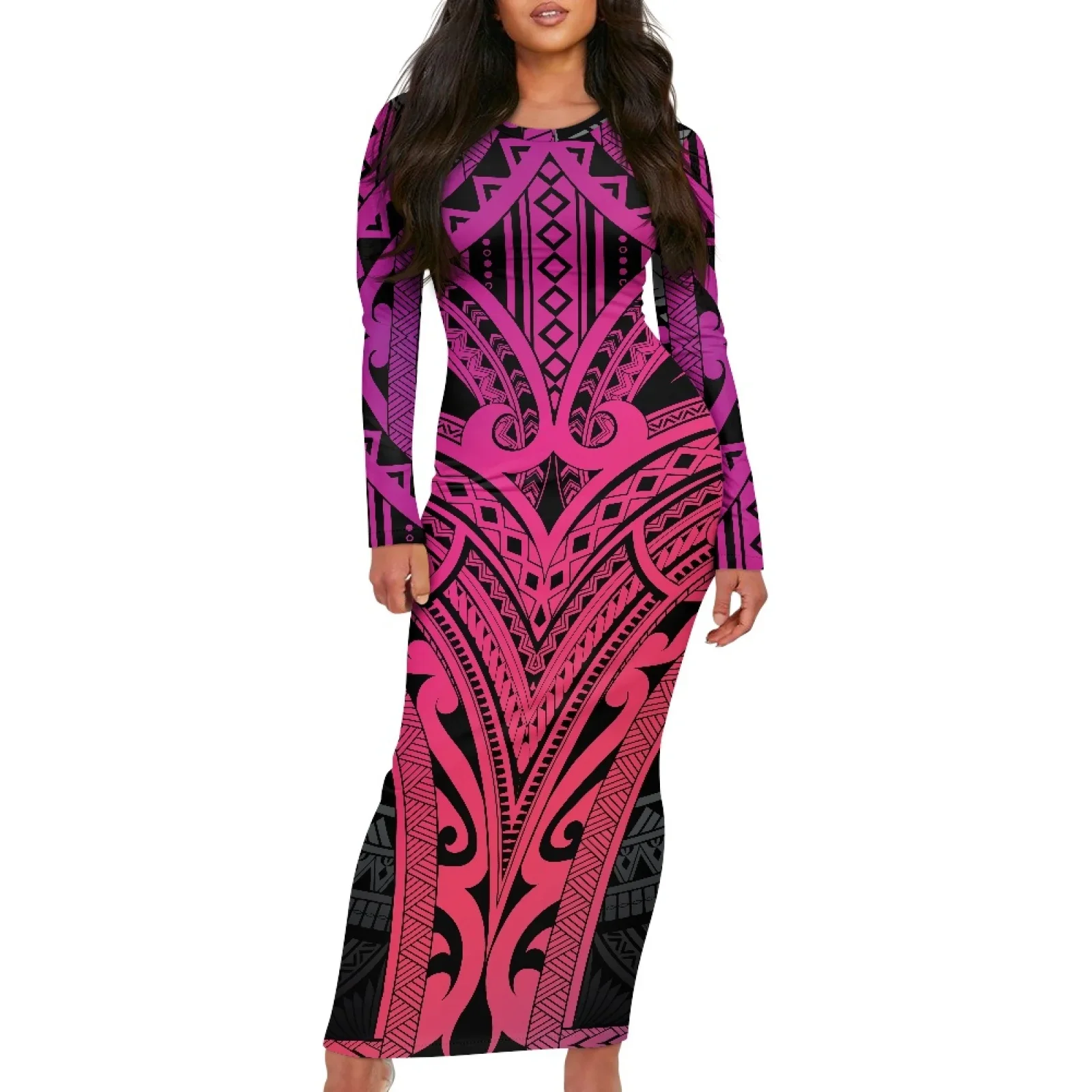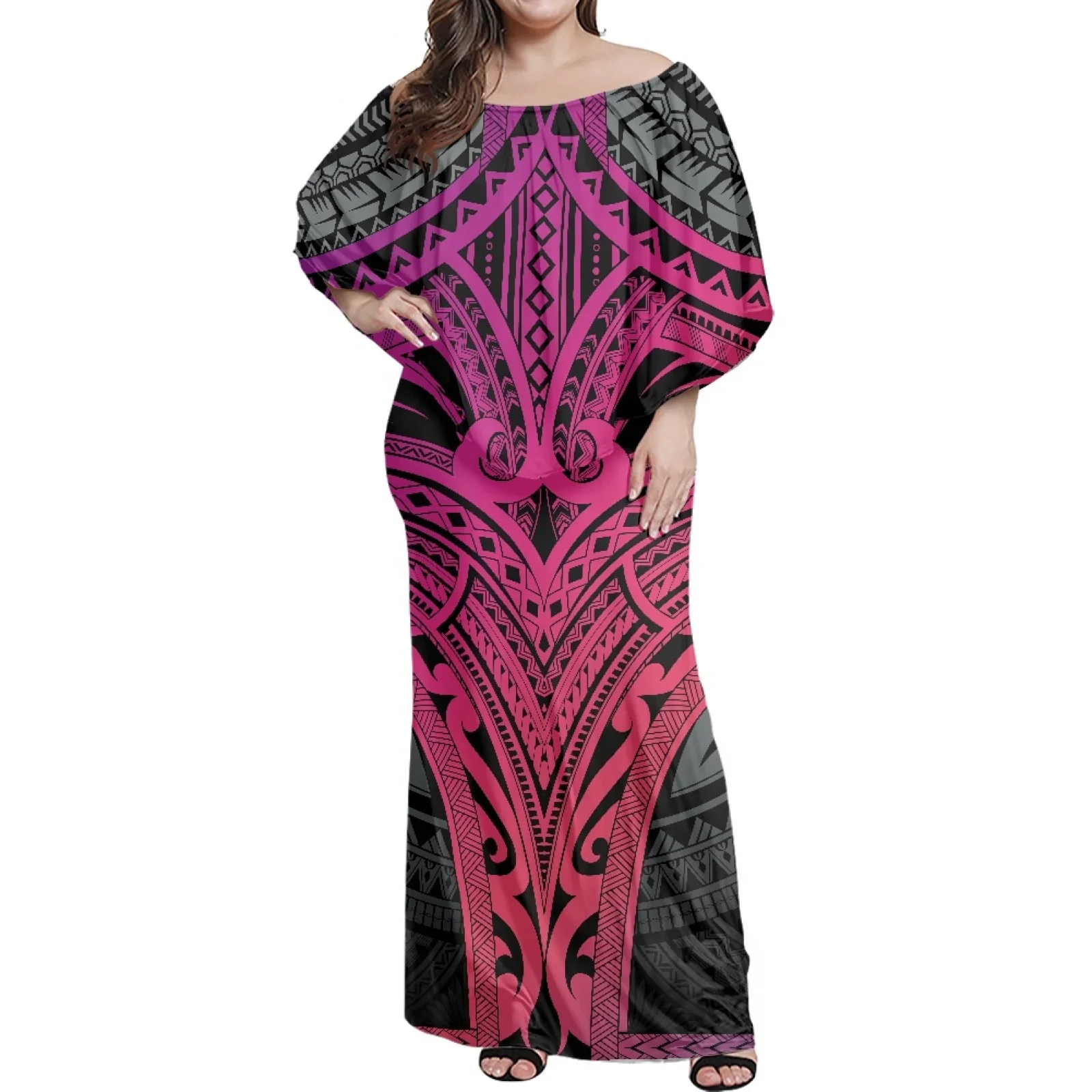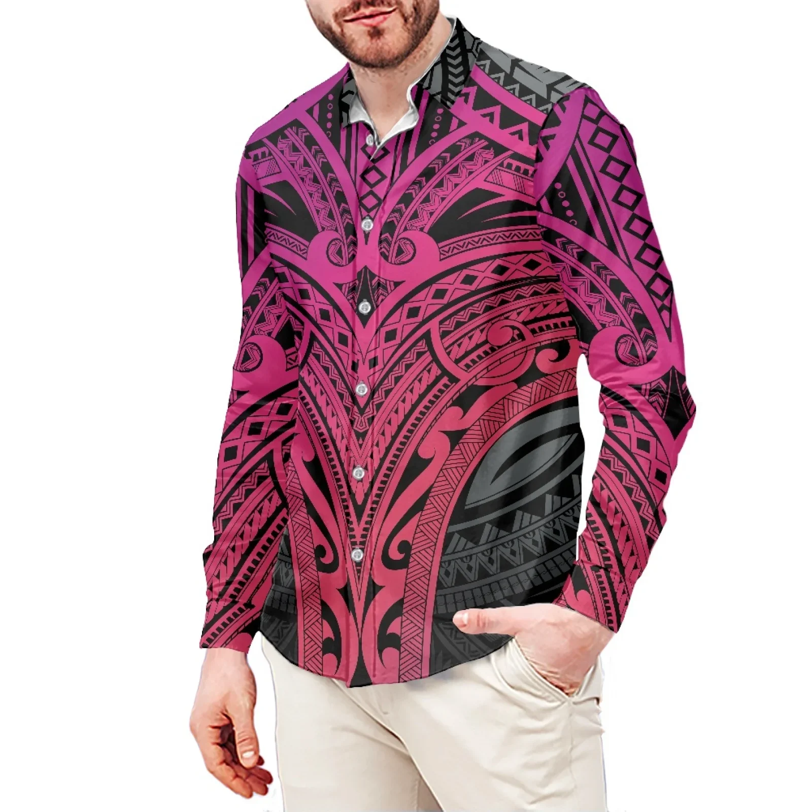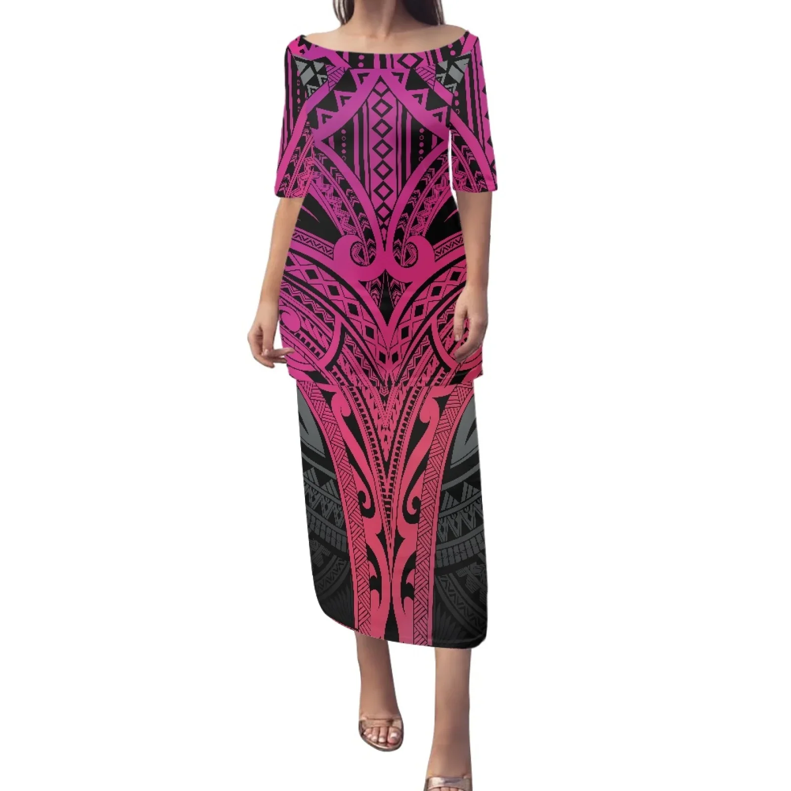 Polynesian Tonga Hawaii Fiji Guam Samoa Pohnpei Tribal Tattoo Prints Clothes Women Dress Matching Men Shirt Pink Lovers Clothes
