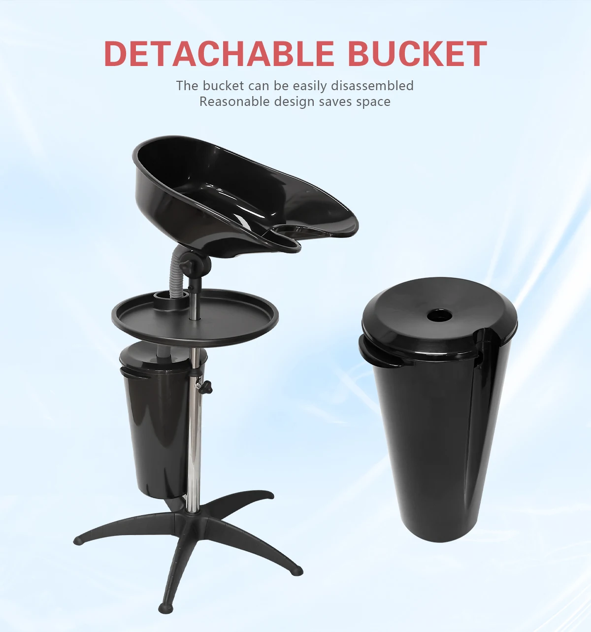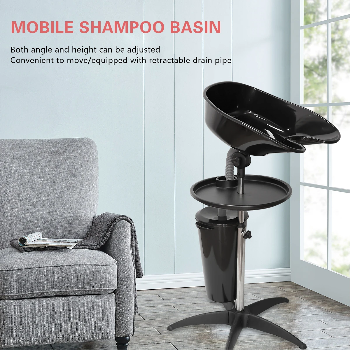 Portable Mobile Shampoo Bowl Bundle Wash Unit Hair Washing Basin Suitable Barber Home Height-Adjustable Hair Washing Station