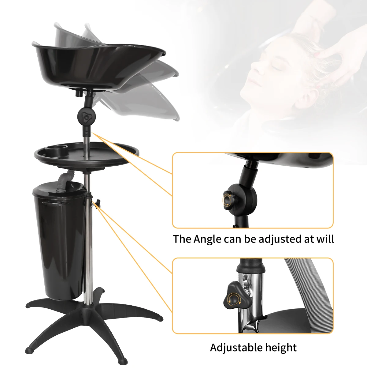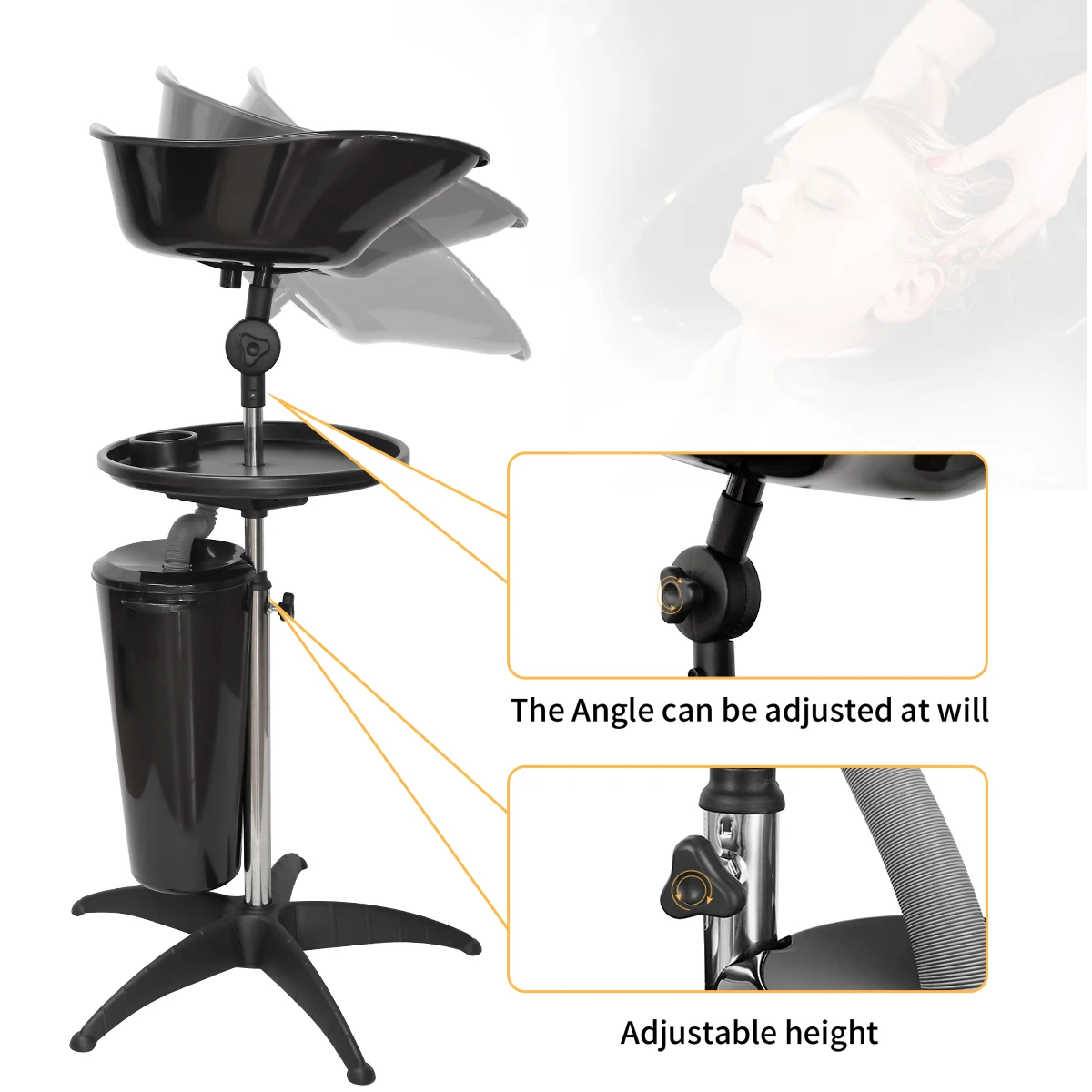 【Adjustable Height & Angle】; this Salon Portable Shampoo Bowl Sink is very good quality and user-friendly. Salon basin height is adjustable and can be adjusted to the right height according to the seat. There is also a front and back angle can also be adjusted, according to different sitting positions and people, can adjust the most comfortable angle.