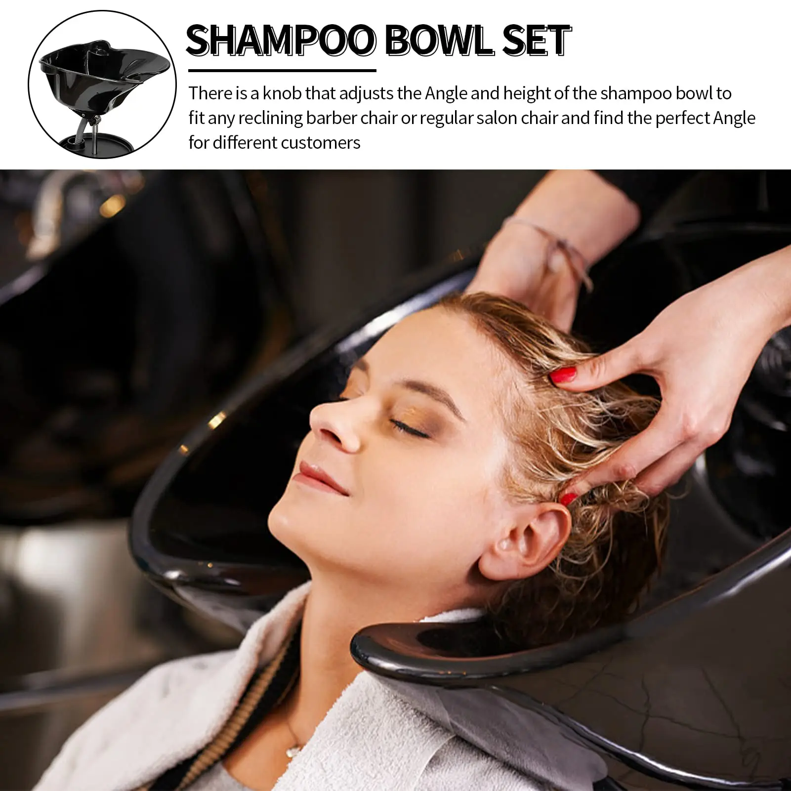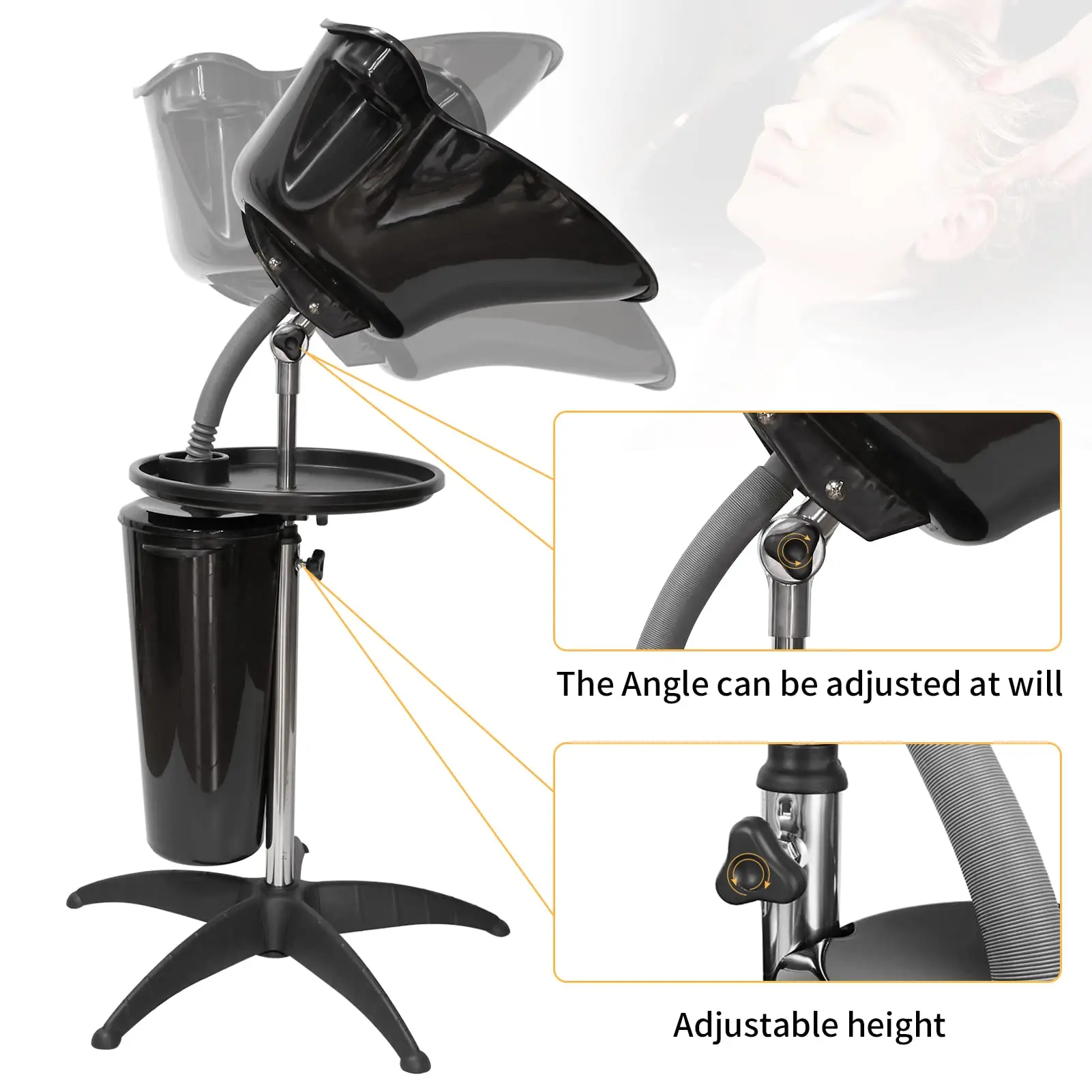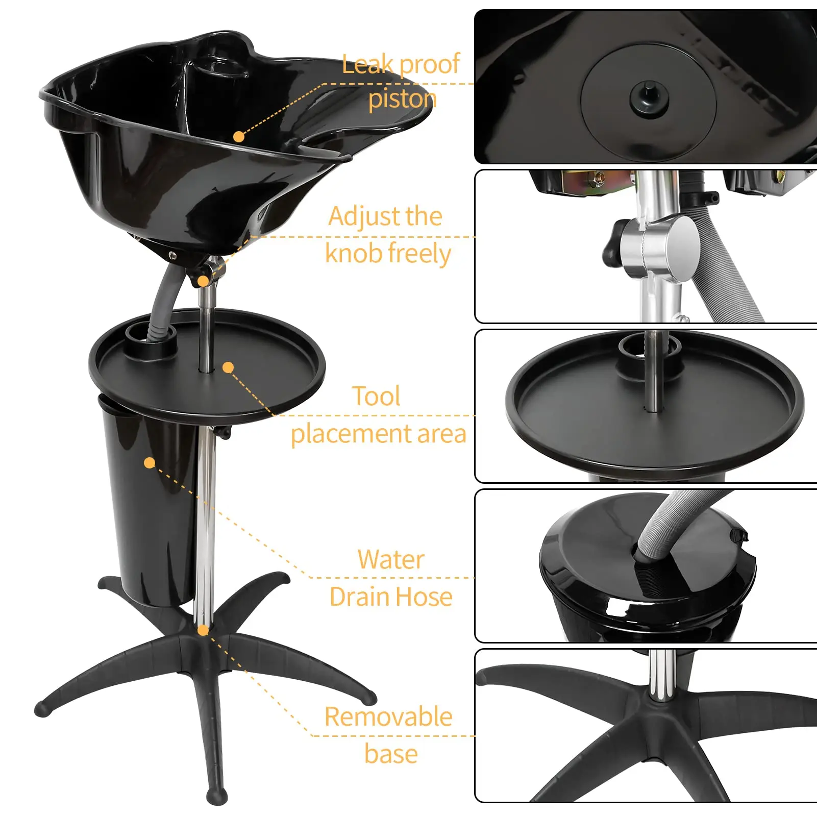 Portable Mobile Shampoo Bowl Salon Basin Shampoo Sink with Drain Stainless Steel Pipe Support Adjustable Height Barbershop Tools