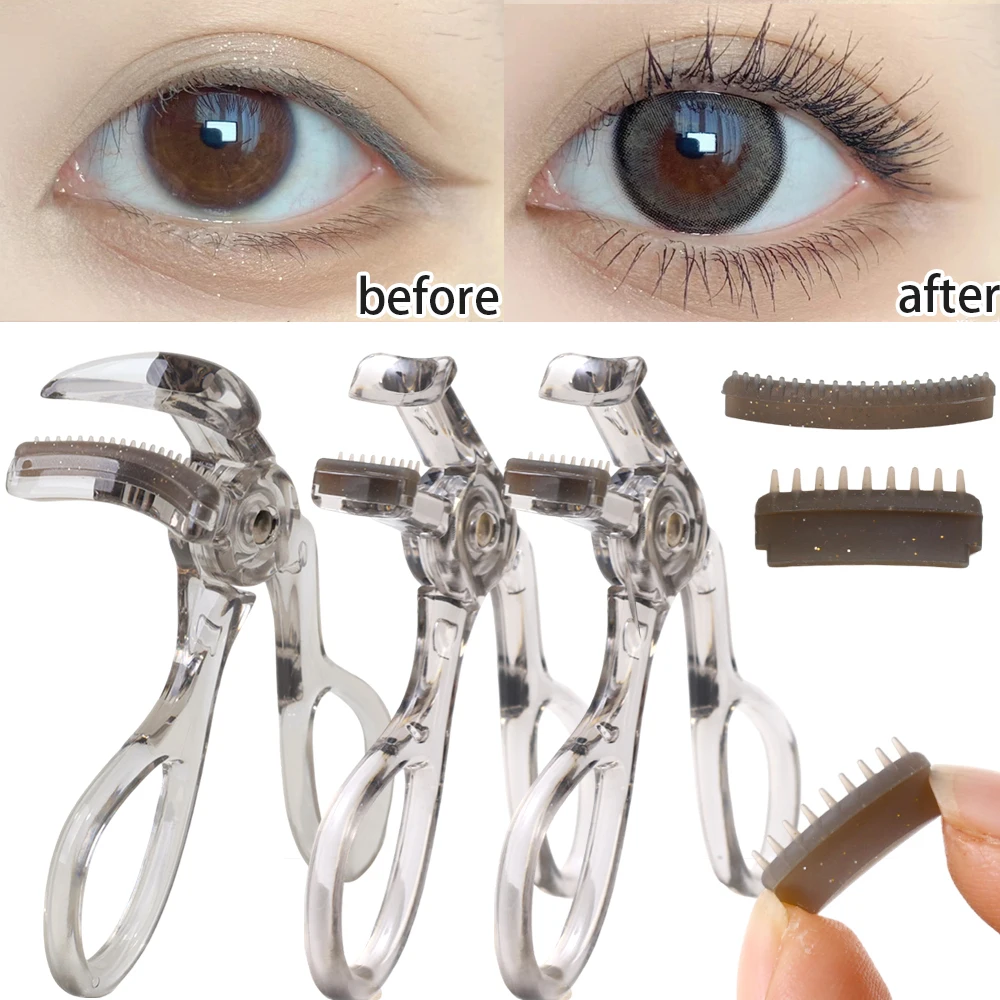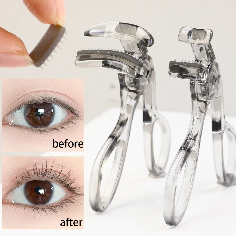 Professional Eyelash Curler Frameless One-clip Curling Comb Tooth Eyelash Curler with Refill Pad Long-lasting Shaping Lash Tools
