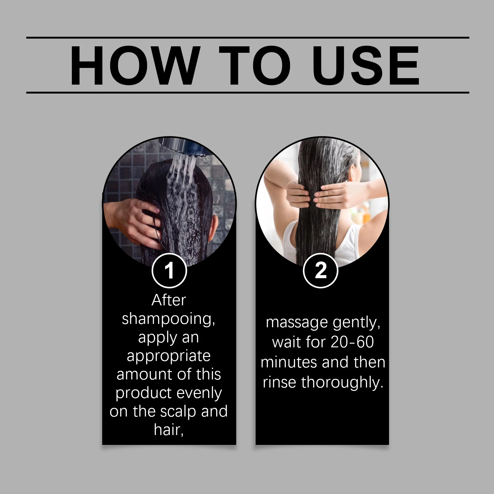 Usage:After shampooing, apply an appropriate amount of this product evenly on the scalp and hair, massage gently, wait for 20-60 minutes and then rinse thoroughly.