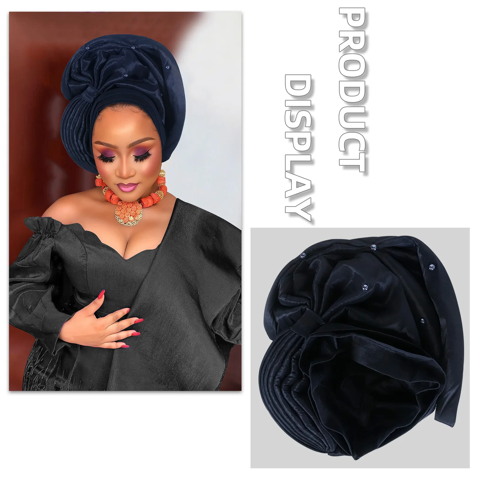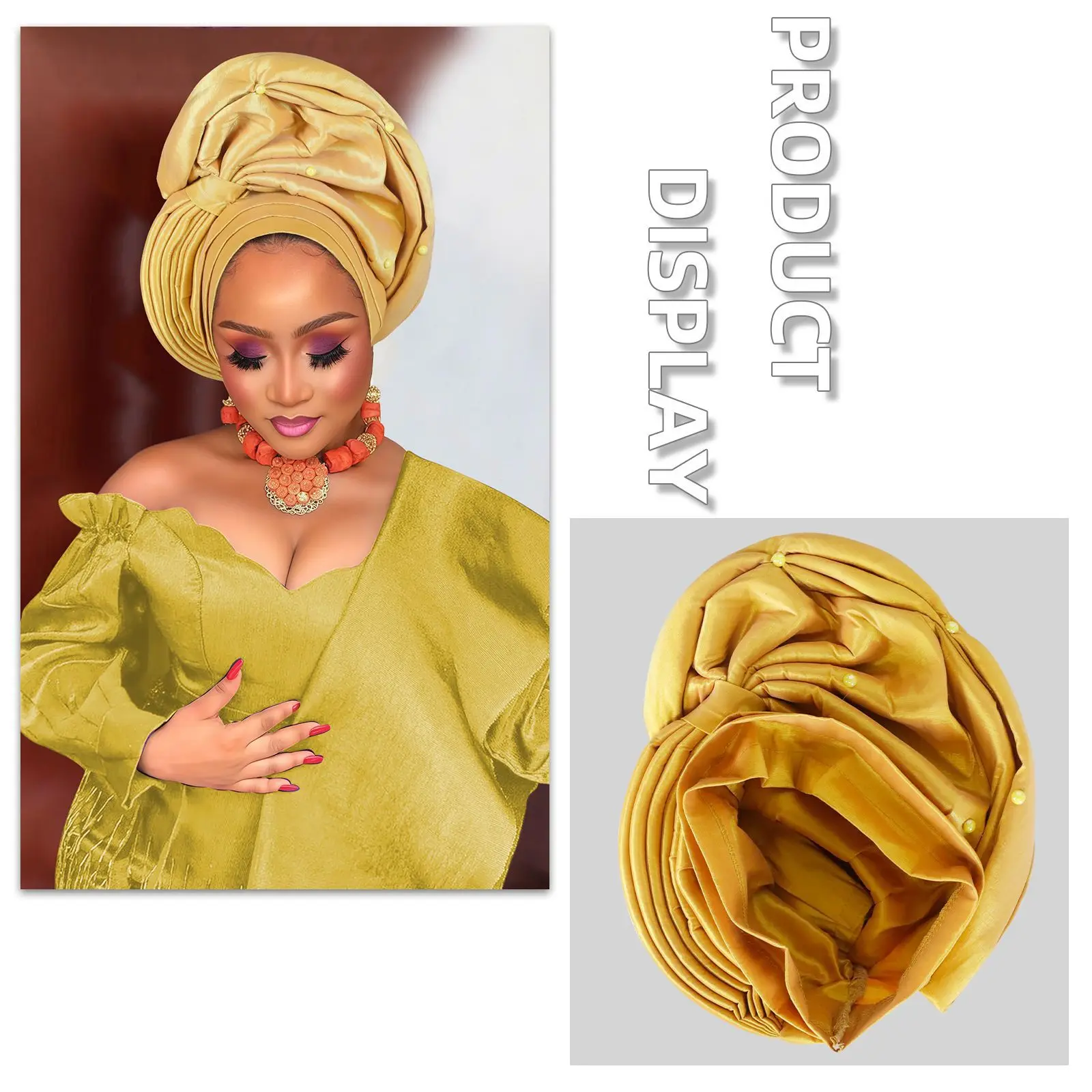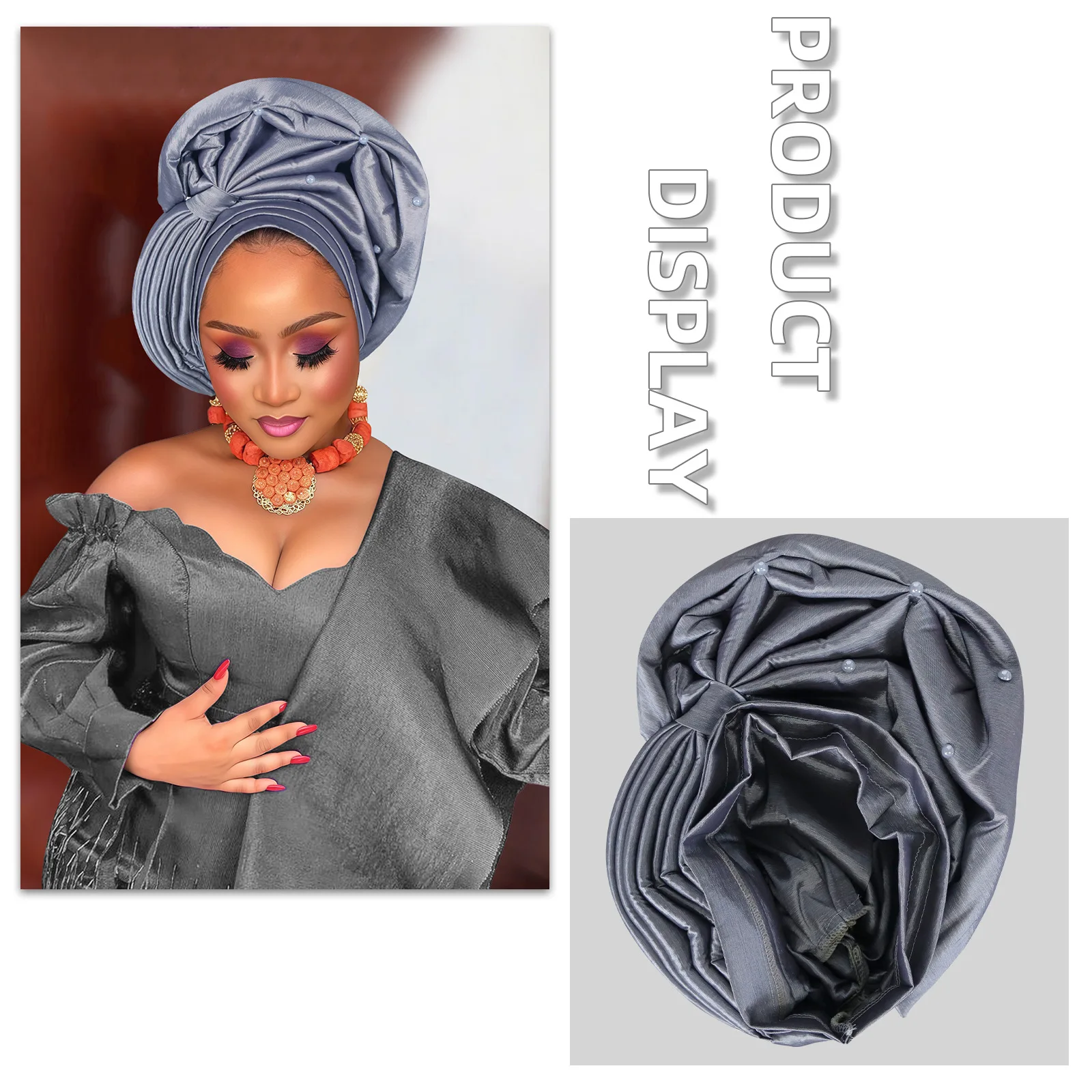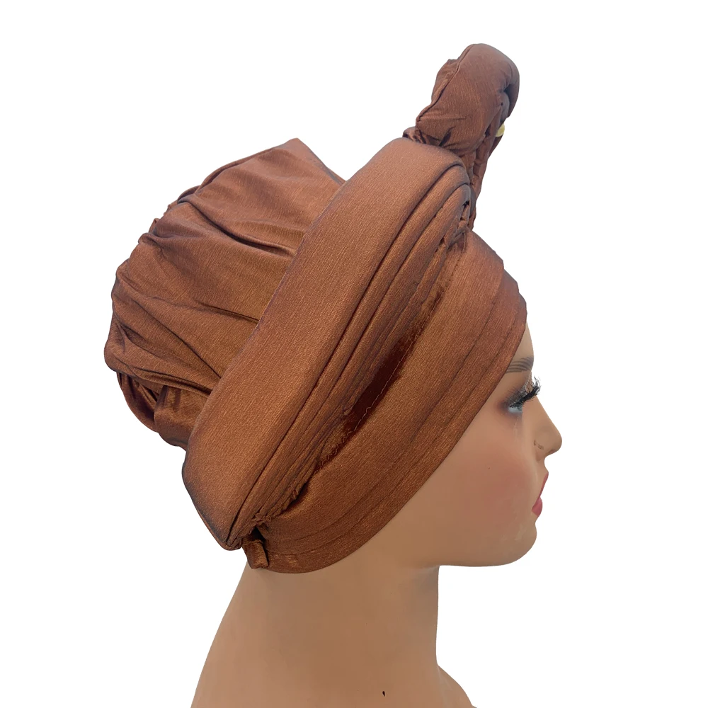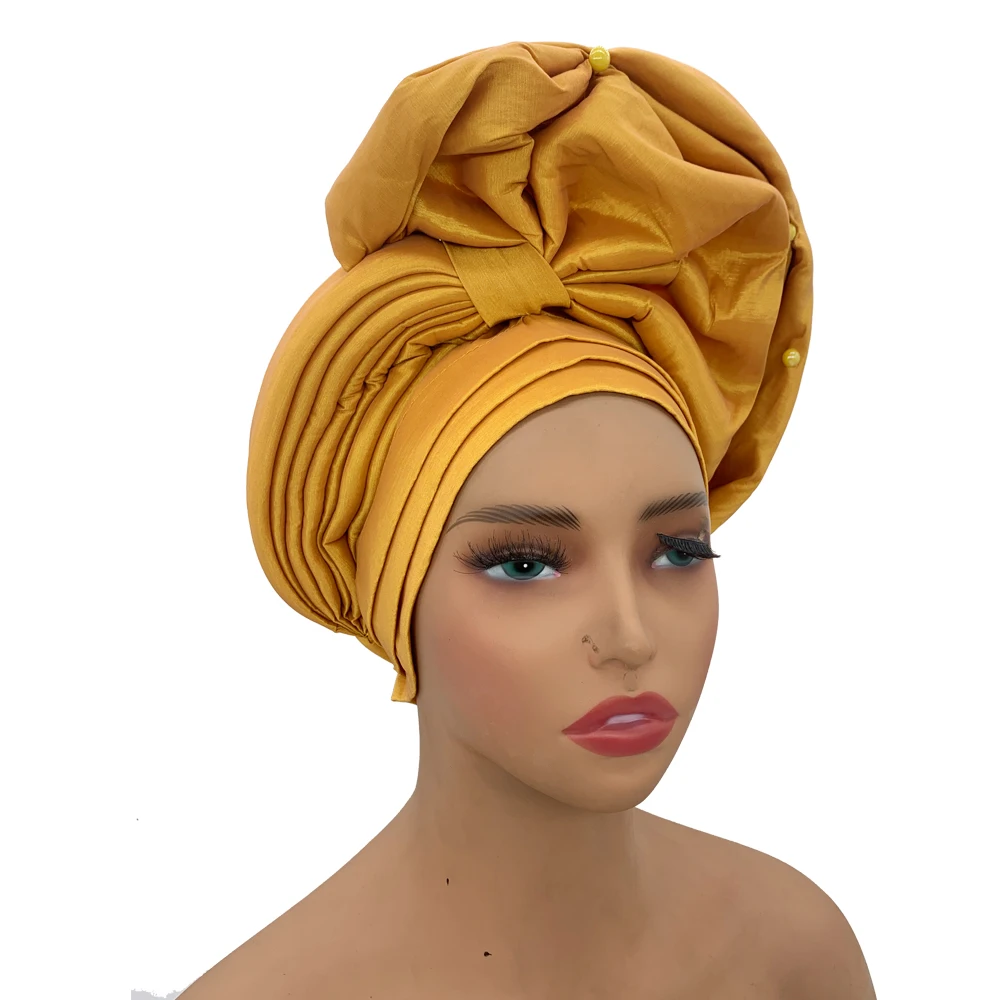 Raw Silk Turban Cap for Women African Female Head Wraps Nigeria Wedding Party Headcover Hat Ready to Wear Head Ties