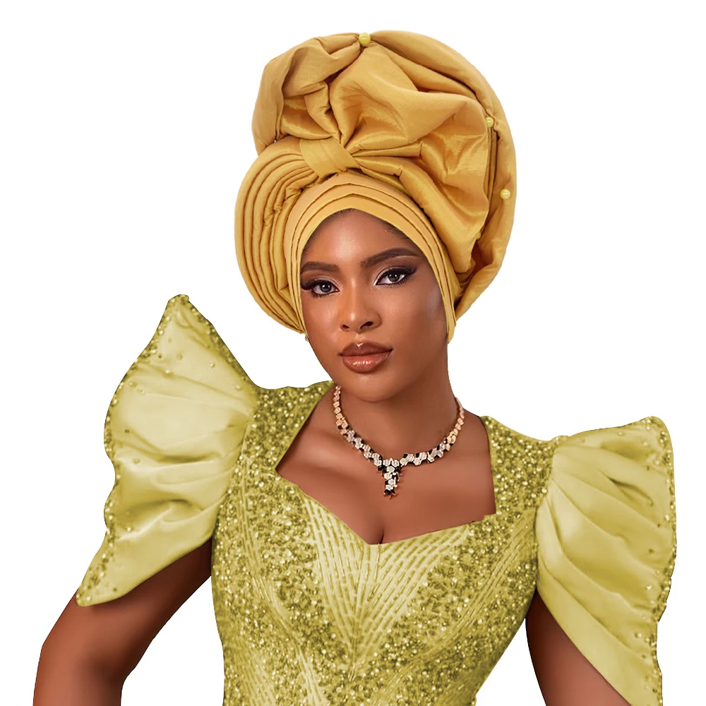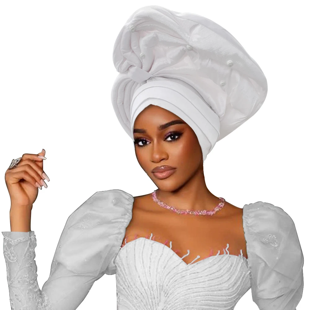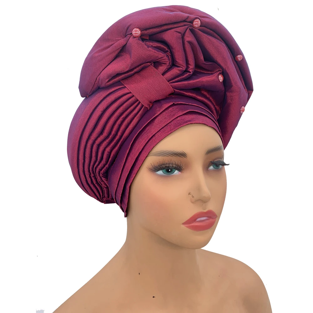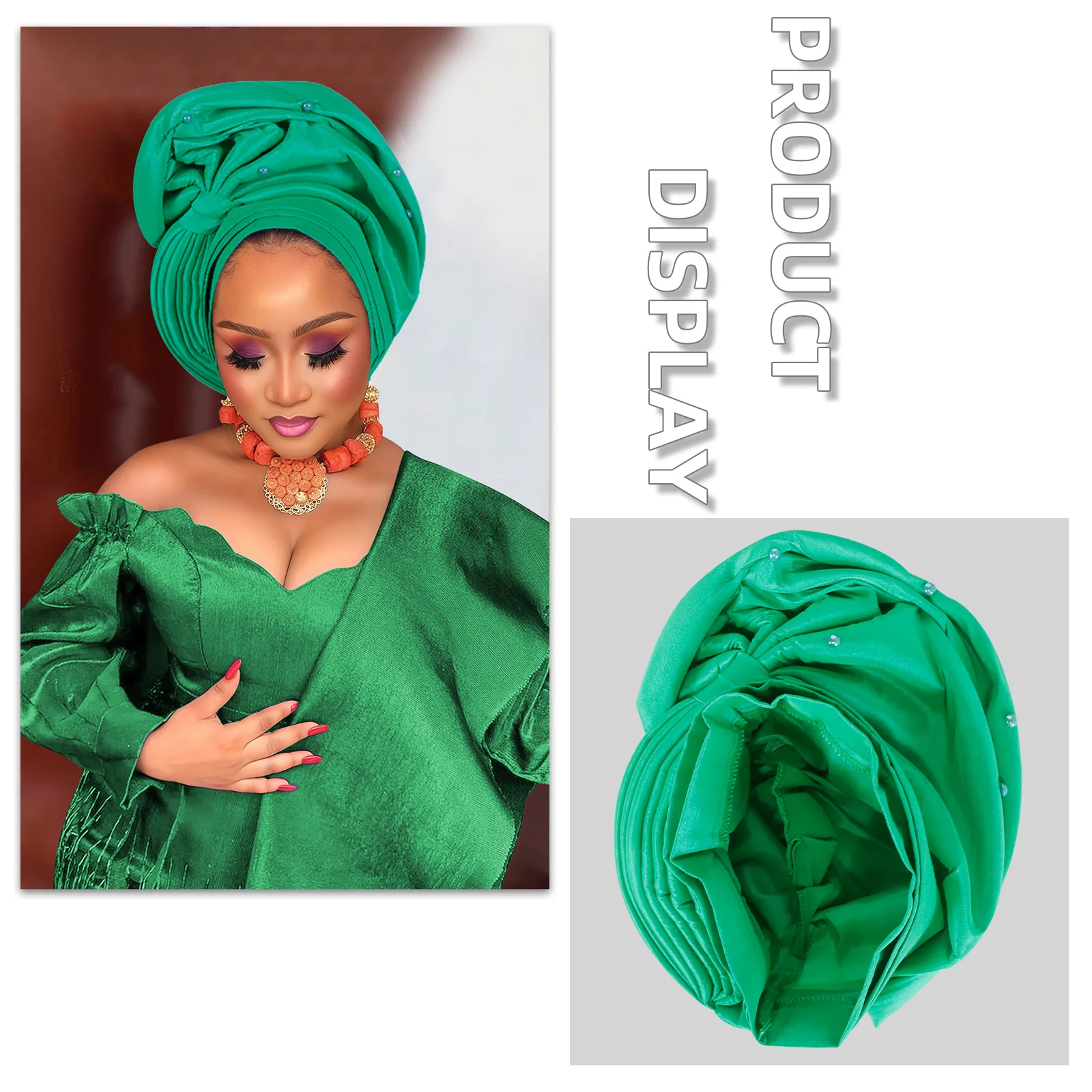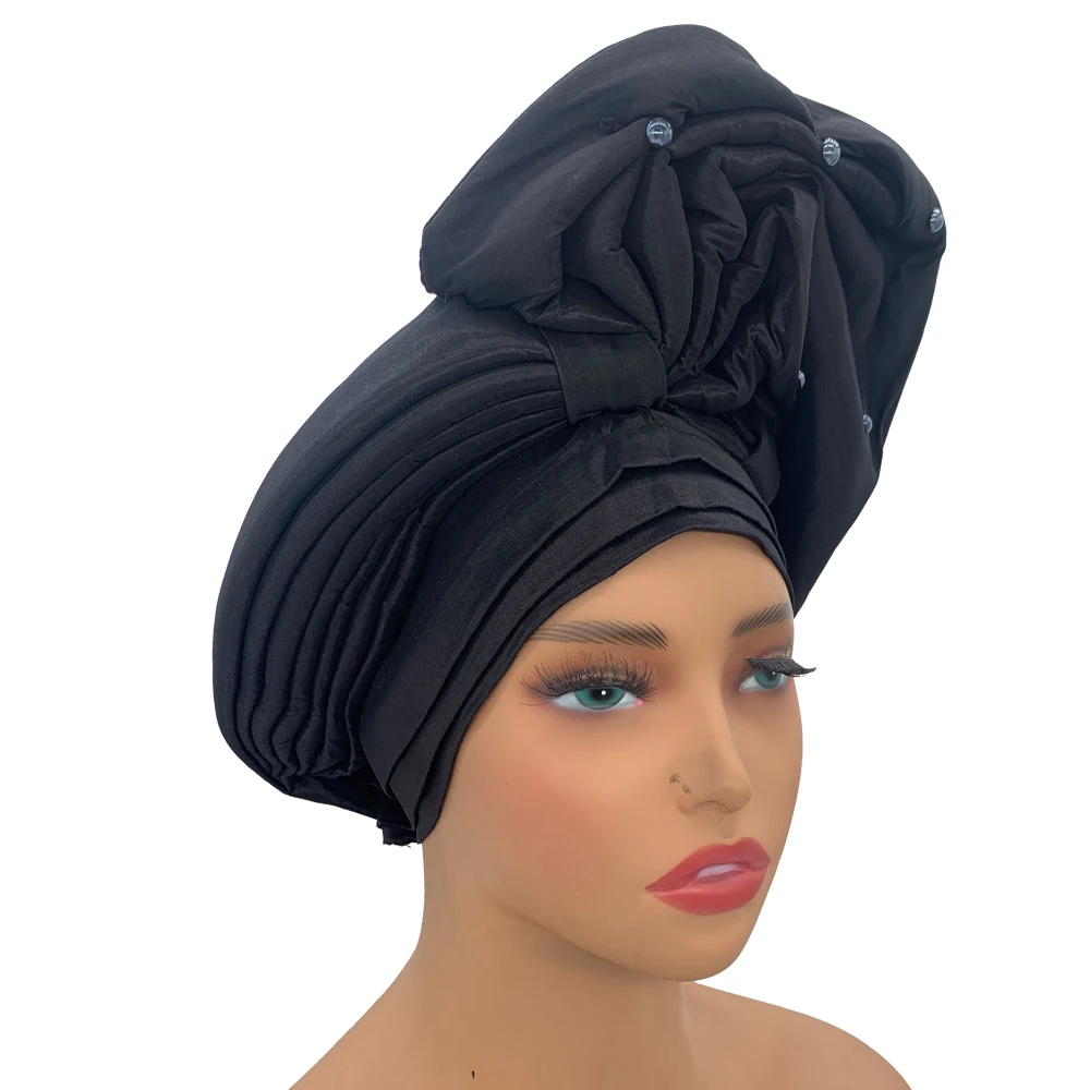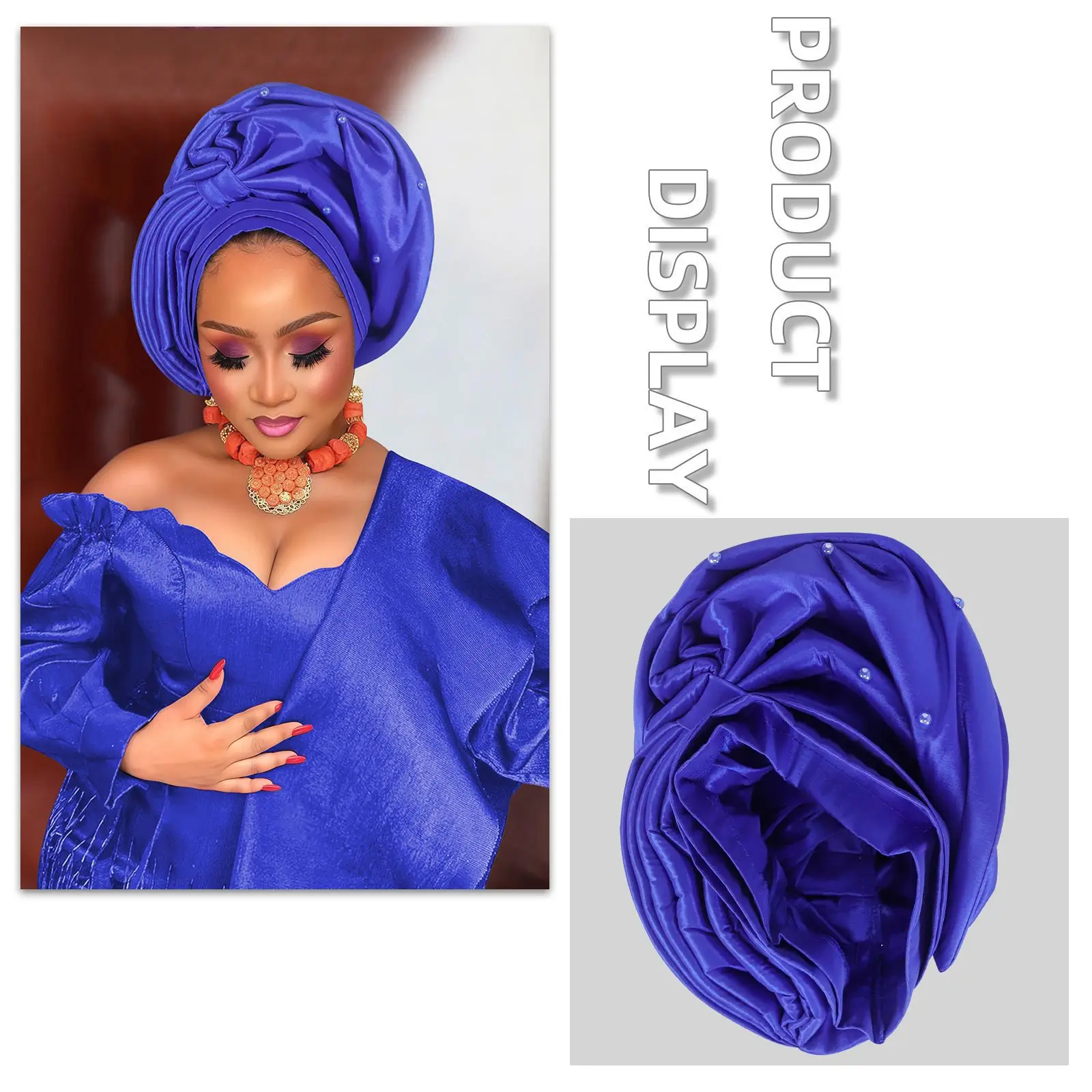 Raw Silk Turban Cap for Women African Female Head Wraps Nigeria Wedding Party Headcover Hat Ready to Wear Head Ties